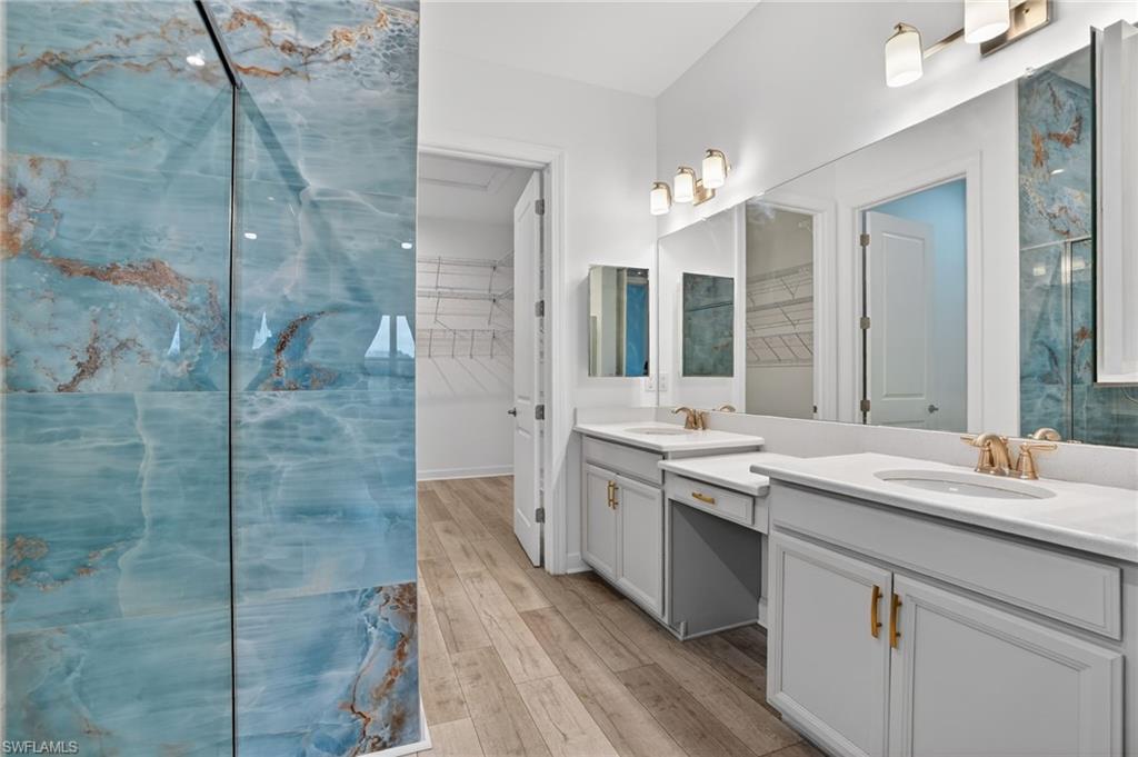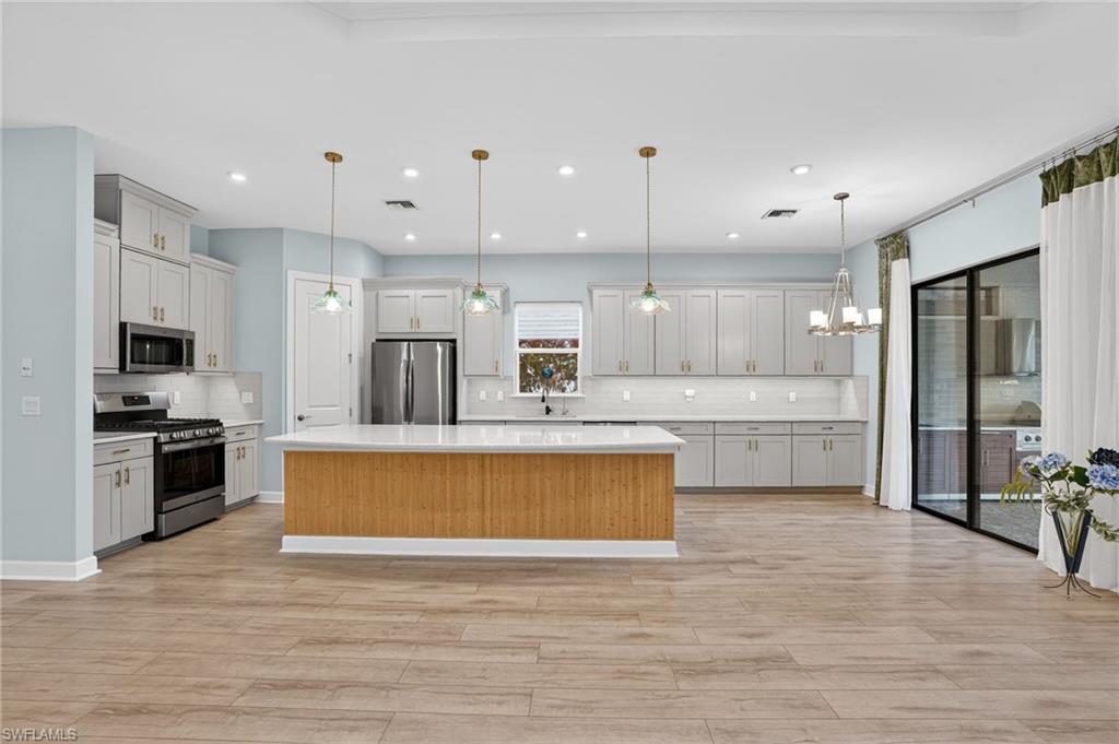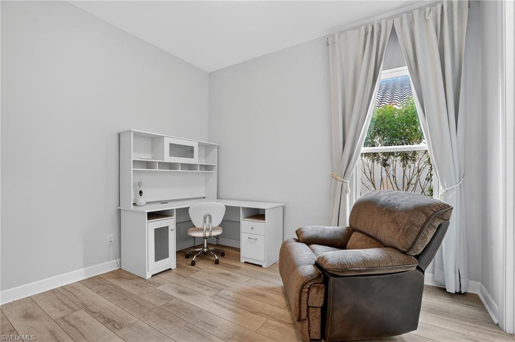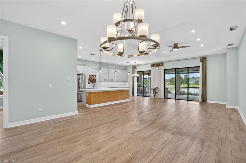 This exquisite lakefront retreat in the prestigious Esplanade at Hacienda Lakes community in Naples, Florida, was completed in December 2021 and showcases over $150,000 in premium updates. Spanning 2,373 sq. ft. of thoughtfully designed living space (with a total under roof of 2,884 sq. ft.), this single-family home follows the highly sought-after Lazio open-floor plan by Taylor Morrison — a popular layout known for its seamless flow and modern elegance. Key Interior Features: • 3 spacious bedrooms plus a versatile den (ideal for a home office, media room, or guest space) • 3 full bathrooms • Rich hardwood flooring throughout • Elegant bay windows in the master and guest bedrooms • Master bathroom featuring exquisite marble-style slab walls and flooring in mesmerizing ocean-inspired tones • Substantial walk-in closet in the owner’s suite • Refined tray ceilings and stylish recessed lighting • A delightful covered lanai with a built-in outdoor kitchen (gas-powered) — perfect for year-round al fresco entertaining • Premium lanai storm/hurricane protection screens for peace of mind Resort-Style Community Amenities: Nestled in a secure, gated, resort-style enclave, residents enjoy an exceptional array of facilities: • Cutting-edge fitness center • Welcoming community room, ping pong and pool tables, dedicated game and yoga rooms • Serene spa, heated pool, resistance lap pool • Charming poolside cabana, lounge chairs, umbrella tables, and abundant seating • Outdoor highlights: Warm fire pit, tennis courts, illuminated pickleball courts, bocce ball courts, dog park, and playground These amenities create a vibrant, active lifestyle right at your doorstep. HOA website: Prime Location: Conveniently positioned near everyday essentials and Naples’ best attractions: • Only 2 miles from Publix grocery • 3 miles from a 24-hour Medical Center • 1 mile from Gallery Hacienda Lakes (a premier full-service senior assisted living and memory care center) • Close to the Naples Zoo and Botanical Gardens, Rookery Bay, and NGALA Wildlife Preserve • Easy access to shopping, dining, entertainment, and pristine Gulf beaches on Naples and Marco Island This turnkey-ready gem blends sophisticated upgrades, open-concept luxury, and an unbeatable resort lifestyle in one of Naples’ most desirable communities. If you’re seeking a modern, low-maintenance Florida retreat with spectacular lake views and endless amenities, this property is a true standout.