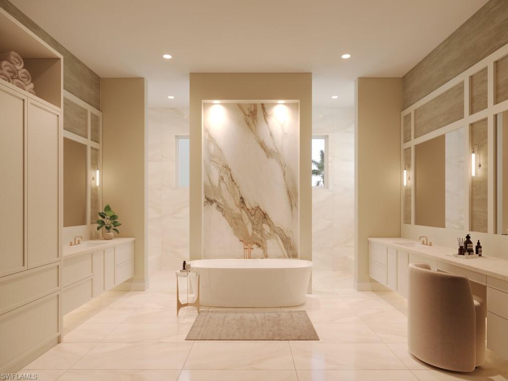 This sprawling 2.77 acre estate home is offered by McGarvey Custom Homes, an award-winning Naples builder known for their unwavering commitment to detail and white glove approach to service. 6580 Bottlebrush Lane is located in the desirable and centrally located community of Livingston Woods. The expansive residence, with separate guest house, includes 7,718 SF of Living Area. The main house offers an open concept floor plan that seamlessly incorporates natural light while offering true indoor/outdoor living while boasting 4 ensuite bedrooms, a private study, full-service butler’s pantry, and a modern gourmet kitchen featuring bespoke custom cabinetry and Wolf/Subzero appliance package. The private guest house includes two oversized executive ensuites complete with complete kitchen and an open great room plan. The impressive outdoor living area encompasses over 2,200 SF of covered lanai and includes an outdoor kitchen, dining area, fireplace, custom pool and spa, as well as a private guest house lanai with access to the main pool area. With 5-car garage spaces serving the main house, plus an additional private garage for the guest home, there is plenty of room for toys and cars. This model comes fully furnished with designer furnishings by Vogue Interiors. The property is currenly under construction and the estimated completion date is early Summer of 2026.