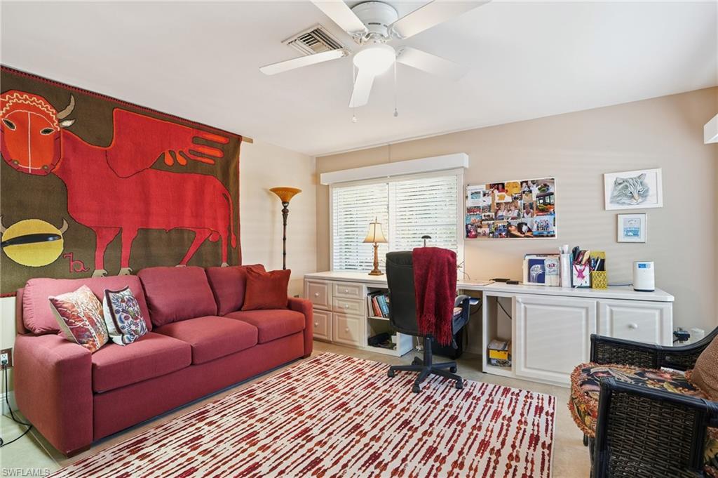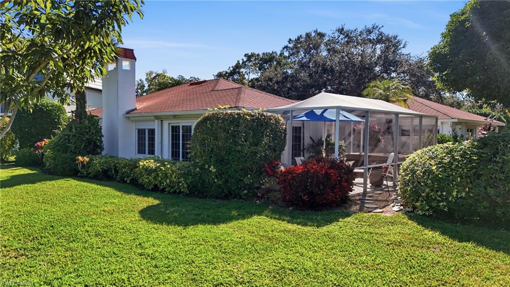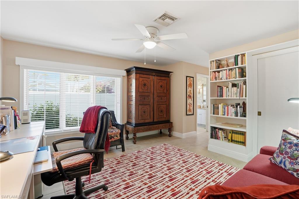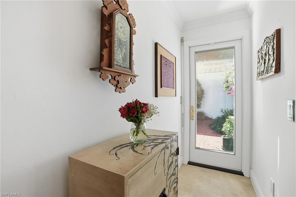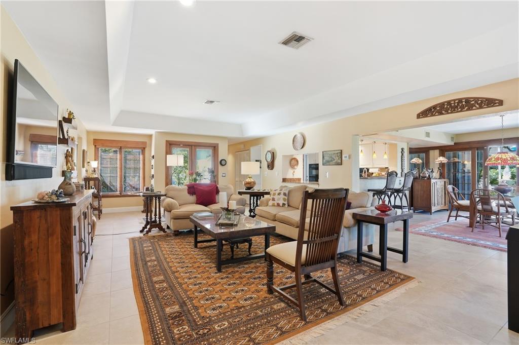 Set within the iconic Naples Bath & Tennis community, this distinctive one-story residence offers a rare blend of character, flexibility, and indoor-outdoor living. Designed around a screened lanai and multiple open courtyards, nearly every room opens to its own private outdoor space, creating a lifestyle that feels both intimate and expansive. The home features three ensuite bedrooms, including two generously sized primary suites, making it ideal for multi-generational living, hosting guests, or those seeking versatile space. Tile flooring runs throughout, while an updated kitchen with granite countertops, breakfast area, and adjacent laundry provides both function and charm. Thoughtful updates include refreshed bathrooms with granite counters, plumbing improvements, replaced hurricane shutters and storm garage door, and a 10-year-old roof and gutter system. Outdoors, a newer saltwater hot tub enhances the private courtyard setting, while the garage offers a mini-split air-conditioning system and custom cabinetry for exceptional storage. This is a home for buyers who appreciate individuality, privacy, and a true connection to outdoor living, all within a centrally located highly sought after Naples community known for its mature landscaping and established charm.