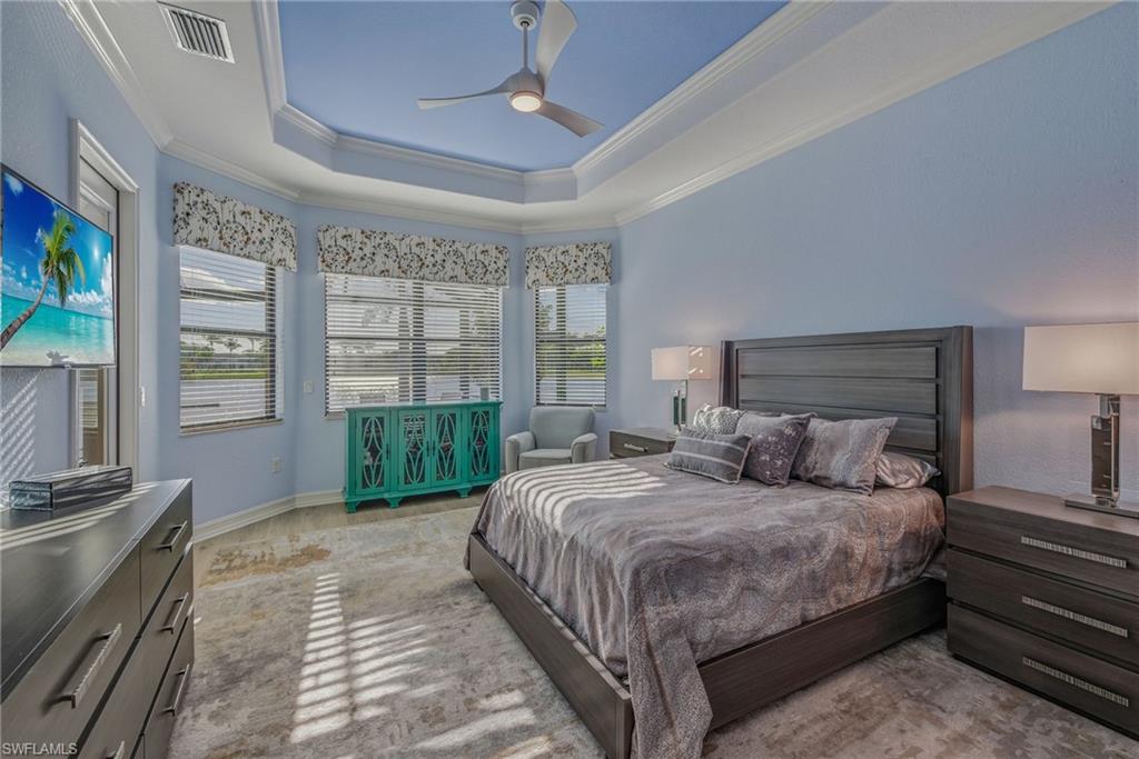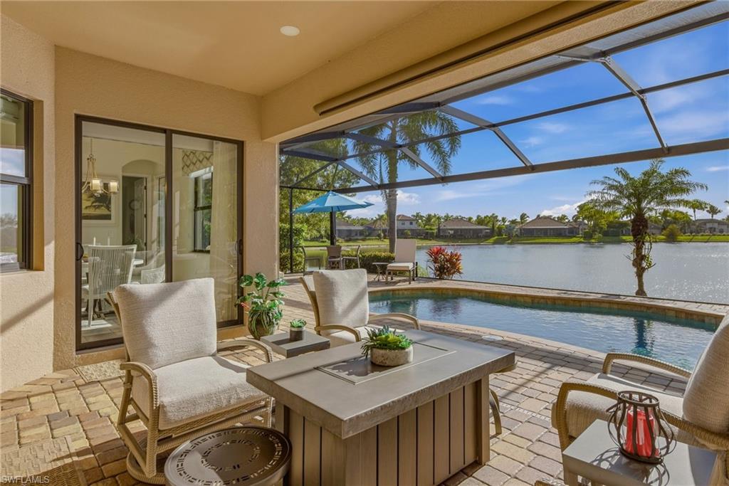 AMAZING WATER VIEWS, TPC GOLF MEMBERSHIP, SOLD TURNKEY AND UPGRADES! Just bring your suitcase and move right in! This stunning "Napoli" model home offers an unparalleled blend of luxury and comfort in the highly sought-after Treviso Bay Golf community with FULL TPC golf membership! From the moment you step into the foyer, you feel an immediate sense of sophistication with your eye drawn to the amazing water views! The open-concept design seamlessly connects the kitchen and living areas, making it ideal for both everyday living and elegant entertaining.This home has been very well maintained and thoughtfully upgraded! This home offers a split floor plan, newly painted interior and exterior and new vinyl flooring throughout! Both the primary closet and den have California Closet system installed. The chef’s kitchen is a true showpiece, featuring quartz countertops and backsplash, a natural gas stove, premium stainless steel appliances. The home has been professionally decorated with new lighting, Hunter Douglass shades, power drapery, designer furniture and accessories. The showcase lanai offers amazing water views through the newly added panoramic screened cage, Storm Smart hurricane shutters, outdoor kitchen with beverage cooler and a propane fire pit to relax after a long day! Complete replacement of Pool equipment including pump, heater, filter, pool/hot tub lights and addition of smart home pool control (wifi). The home is equipped with a Kohler generator providing whole house electrical backup, hurricane rated doors, windows and garage doors for peace of mind as well as a 220V electrical outlet in garage (for electric vehicle charging). For ease of living the HVAC is only 5 years old, addition of Lutron Smart home hub that allows for verbal control of lanai lights and internal art lights, additional recessed lighting and dimmers. There are so many upgrades you must see this lovely Home! This executive home comes with a TRANSFERABLE TPC GOLF MEMBERSHIP to enjoy! This entitles you to play the many TPC designated golf courses around the United States! Treviso Bay's Five Star amenities are second to none boasting the Villa Rilassare amenity center La Brezza resort style pool and full bar, professionally staffed fitness center, tennis courts, bocce, pickle ball, basketball and full spa services. The spectacular Treviso Bay TPC Golf clubhouse has two dining rooms, library, TPC pro shop, luxurious locker rooms and a breathtaking terrace over looking hole 9 and 18 to enjoy cocktails or fine dining. Just 5 miles away from Naples beautiful sandy beaches and fabulous 5th Ave shopping and restaurants! Just unpack your suitcase and enjoy!