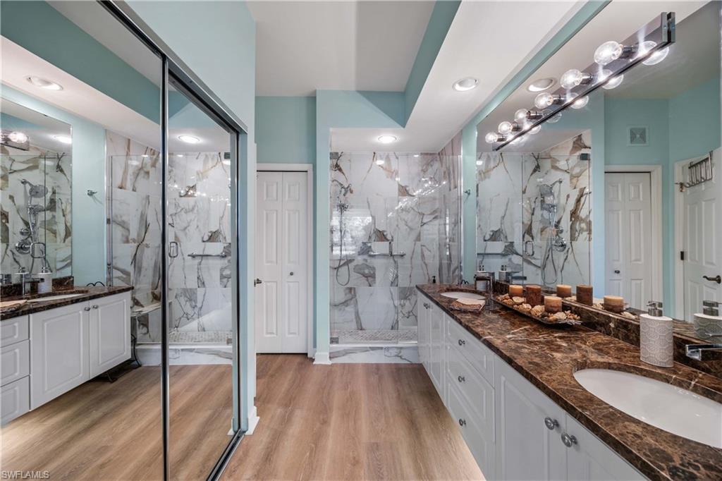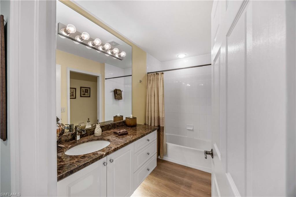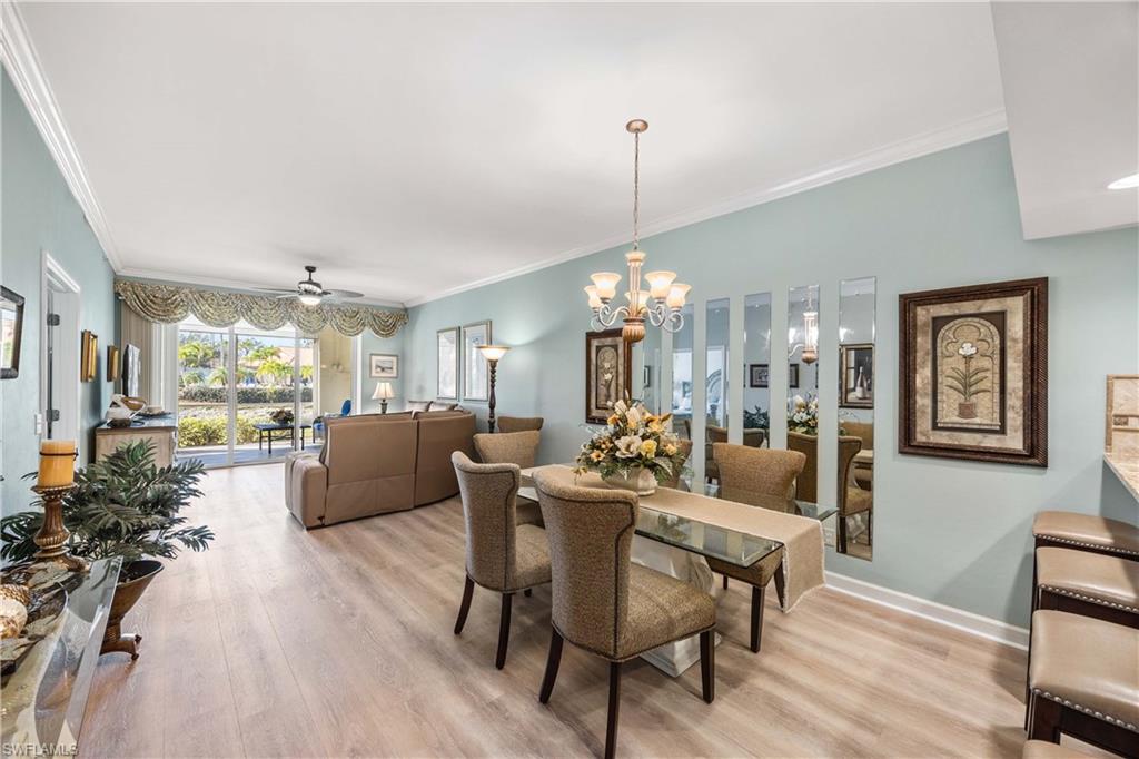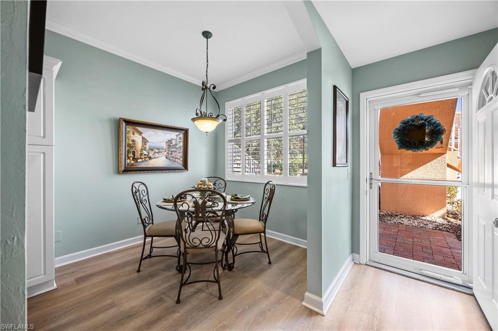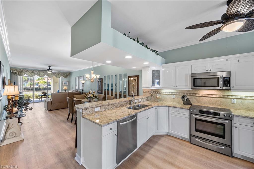 Welcome to effortless Florida living in this beautifully updated FIRST FLOOR corner condominium located in the highly sought-after Falling Waters Beach Resort. This 2-bedroom, 2-bath unit offers abundant natural light from the western exposure and a desirable open layout, enhanced by brand-new carpeting (2026) in the bedrooms, fresh neutral interior paint, elegant crown molding, and new luxury vinyl plank flooring (2024) throughout the main living areas. The eat in kitchen features granite countertops, plenty of cabinetry for storage, and stainless-steel appliances. The master bathroom shower has been completely renovated (2025) creating a clean, timeless aesthetic. Plantation shutters add charm and privacy, while the large, screened lanai is equipped with electric storm and sunscreens (2025), allowing for year-round enjoyment. This condo is being sold TURNKEY furnished, making it immediately ready for your enjoyment in Florida. Falling Waters Beach Resort is well known for its exceptional amenities, including a resort-style lazy river pool with waterfall, pickleball , tennis and bocce courts, lap pool, shuffle board, library and an active clubhouse with a calendar full of social events to make new friends. Monthly fees provide an excellent value and include basic cable and internet, water, trash, pest control, and lawn care. This location is ideally located just minutes from Naples and Marco Islands world-class beaches, shopping, boating, golfing, restaurants and entertainment, this property is perfect as a full-time residence, vacation retreat, or investment opportunity.