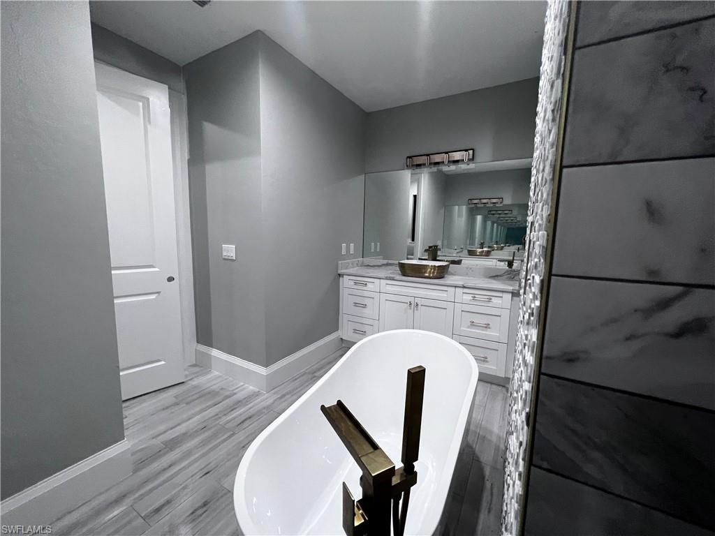 Stunning custom design-built new construction home completed in 2022, nestled in the privacy and natural beauty of Golden Gate Estates. This exceptional two-story residence features a durable waterproof exterior and a sleek paved driveway leading to a thoughtfully crafted modern design. Offering three spacious bedrooms, three full bathrooms, and one elegant half bath, this home provides both comfort and sophistication. The interior showcases contemporary designer lighting, a seamless blend of wood and tile flooring, and a gourmet kitchen equipped with stainless steel appliances and a premium reverse osmosis water system. Each bedroom boasts its own private ensuite bath, ensuring ultimate convenience and privacy for residents and guests alike. A truly refined retreat that combines luxury living with the serenity of Estate living.