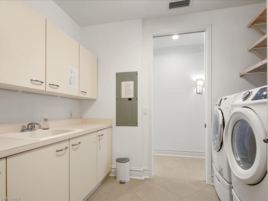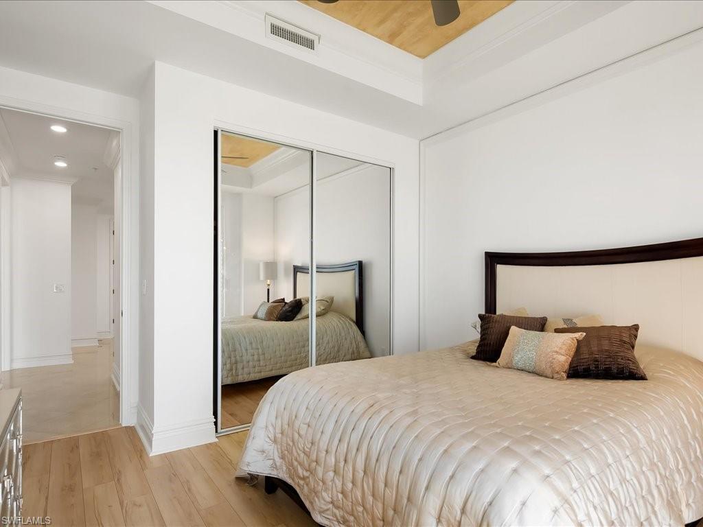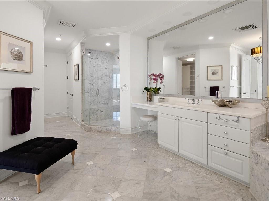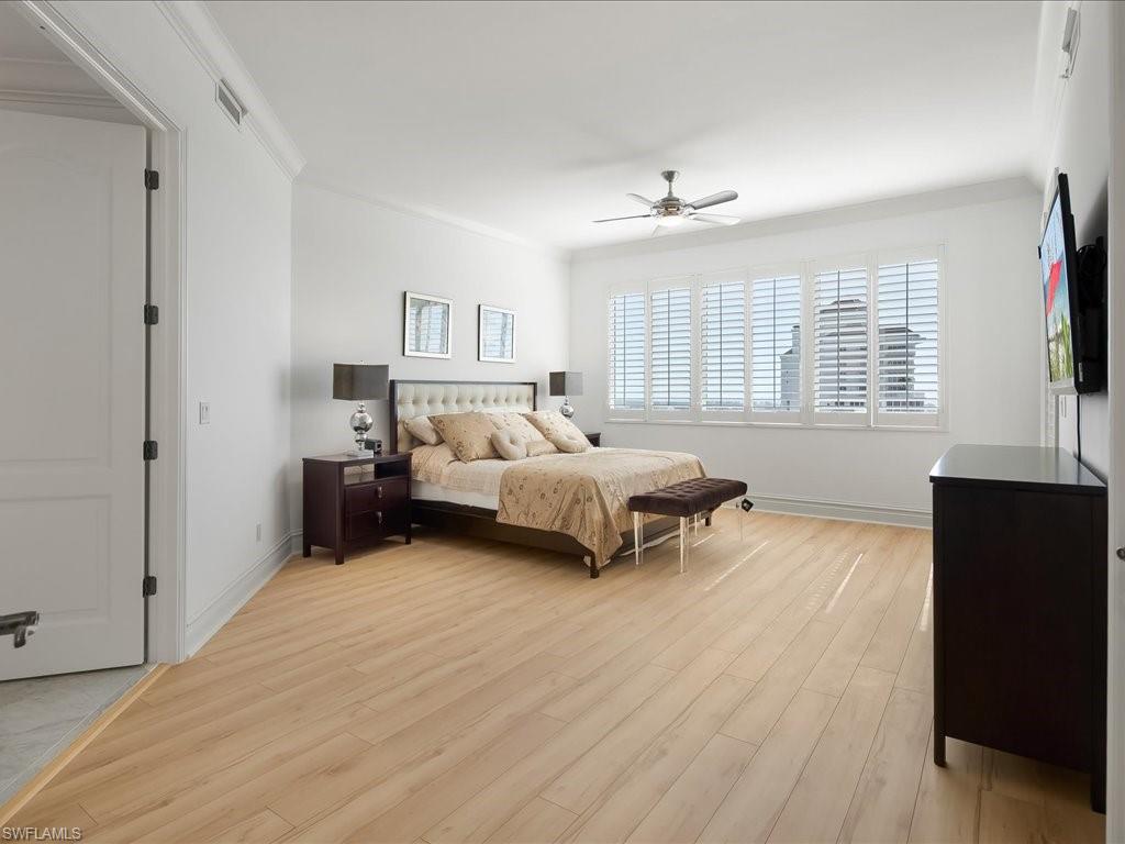 Enjoy the breathtaking Gulf views and marvelous sunsets from the 24th floor of this desirable luxury penthouse at the Vistas in Bonita Bay. Exceptional lifestyle awaits you with a private and newly renovated 2 story Beach Club on Hickory Blvd with offered shuttle service. The Vistas offer on-site management, two guest suites, social room, relaxing pool and spa, fitness center and recently refreshed common areas. All this within the award-winning Bonita Bay. Residents enjoy 12+ miles of trails, 3 parks, kayak launch. Membership to the award-winning Bonita Bay Club is optional, providing access to five world-class golf courses, tennis, pickleball, croquet, luxury spa and fitness, and multiple dining venues and Marina. This exclusive residence features custom tile floors through-out the living area and bedrooms offer hardwood flooring. All balconies offer panoramic views. Chef's kitchen with stainless steel appliances. The entire residence has been professional painted in light custom colors to reflect Floridas’ white sandy beaches and ready for your interior decorator. The main grand bedroom suite comes with en-suite bath and offers an oversize walk-in closet, soaking tub and large walk-in glass shower. The residence features a 2nd grand suite with en-suite bath. Two large additional guest rooms with private balconies and bathroom. With over 3820 square feet of living space and 4 bedrooms there is plenty of flexible space to make this your own. What truly sets this residence apart are the SW facing lanais allowing you the best seat in the building overlooking the Gulf of Mexico with your morning coffee and to end your busy day with the most amazing sunsets Florida has to offer. The 2 assigned under building garage parking spots are conveniently located right next to the elevator lobby entrance.