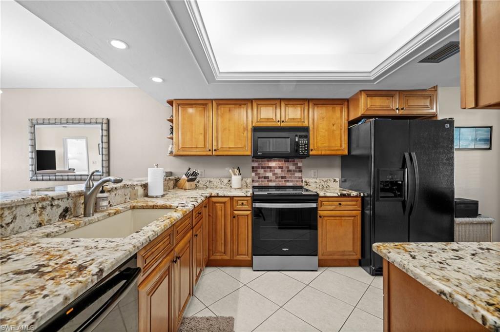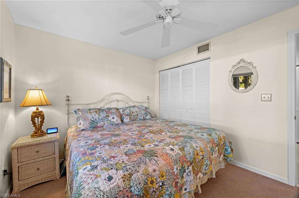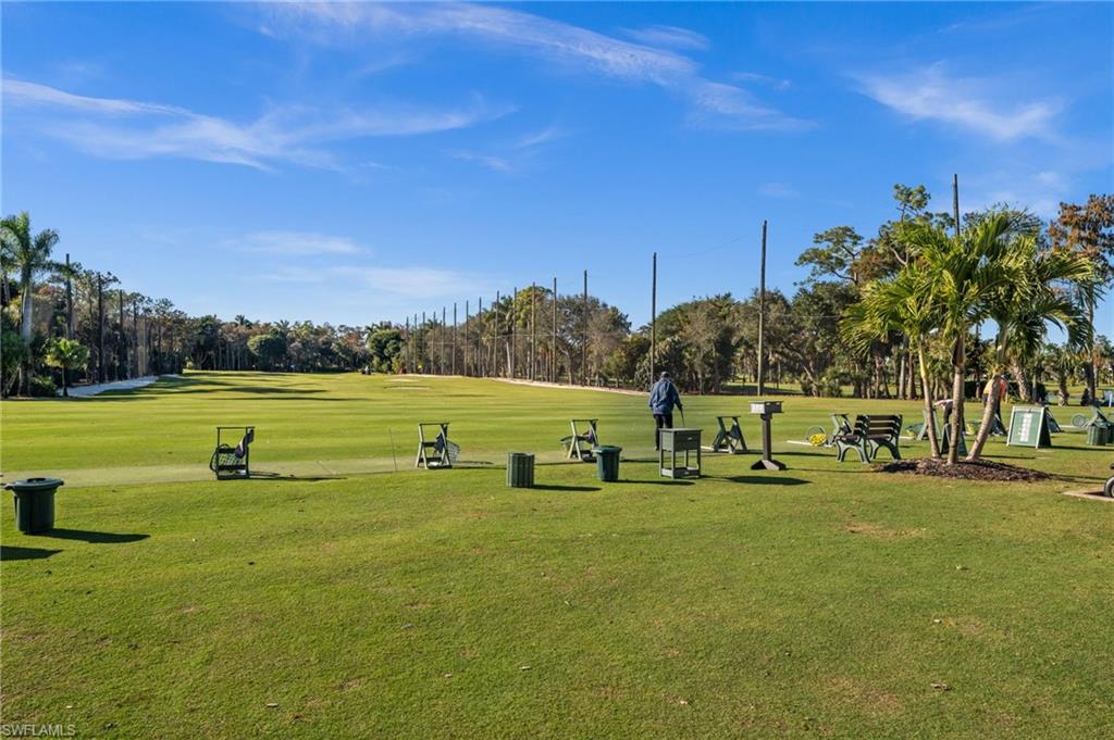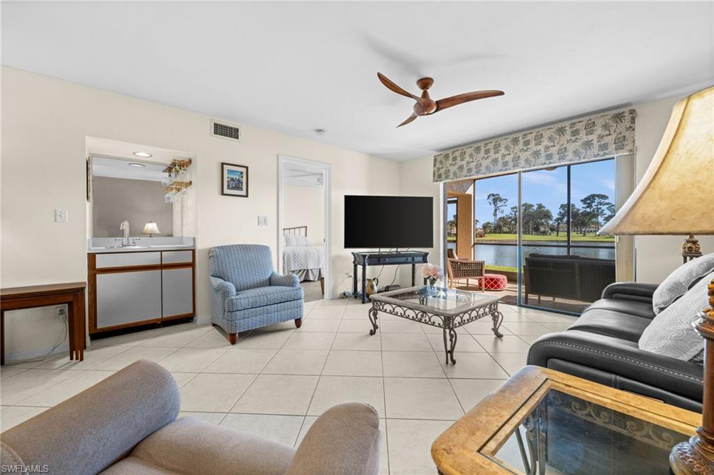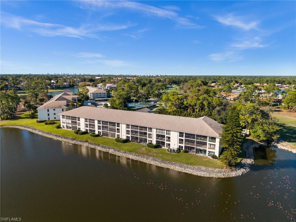 IMMEDIATE GOLF. This turnkey, first-floor condominium offers an exceptional opportunity for the discerning golfer to experience the quintessential Naples lifestyle. Overlooking the 6th green and a tranquil lake, the residence is bathed in abundant natural light and provides panoramic golf course views. The updated eat-in kitchen is appointed with diagonal ceramic tile flooring. The bright primary suite features sliding doors to lanai, a spacious walk-in closet, and a private bath with walk-in shower. The guest bedroom is equally inviting, offering cozy carpet, ceiling fan, and closet. Residents enjoy the benefits of a bundled golf community, featuring 27 Arthur Hills–designed championship holes, ensuring a premier golf experience without additional membership fees. The impressive 20,000 sq. ft. clubhouse offers a 7,000 sq. ft. health and wellness center, large swimming pool, main dining room, grill room, pro shop, driving range, practice greens, and sand traps. Additional amenities include 3 Har-Tru tennis courts and bocce ball courts. Ideally located just minutes from downtown 5th Avenue, residents have convenient access to world-class shopping, dining, art galleries, theater, and Naples’ renowned white-sand Gulf beaches.