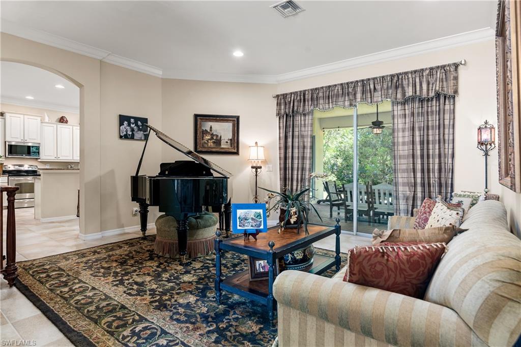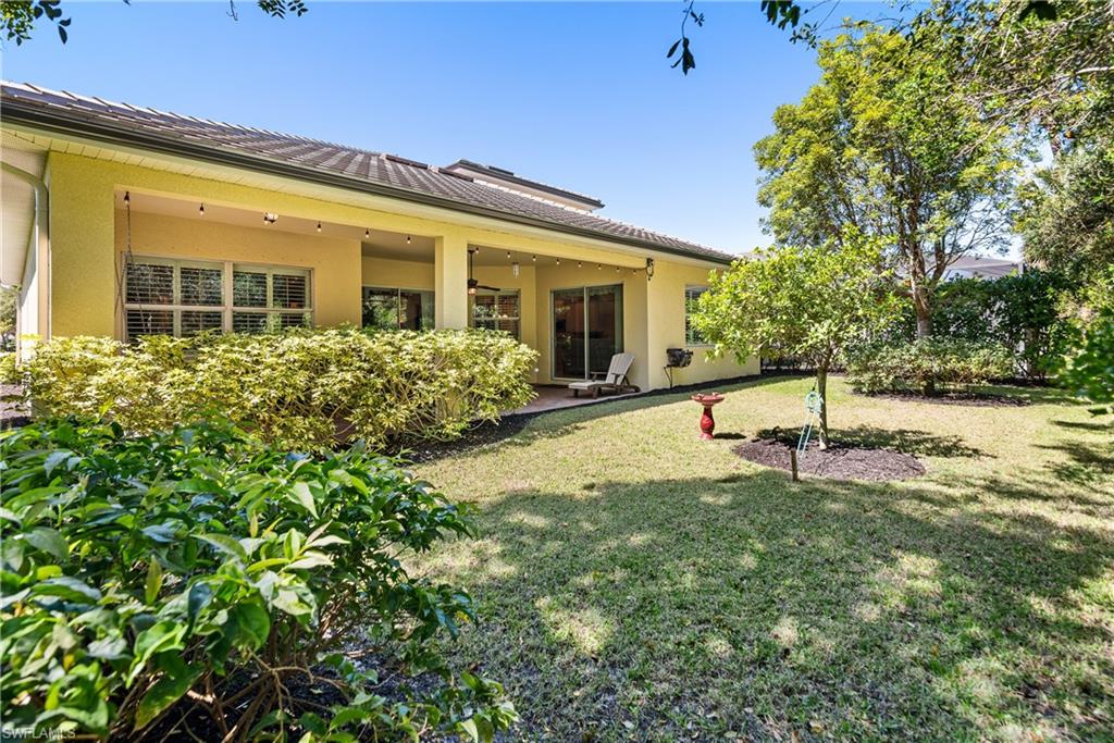 RARELY AVAILABLE IL REGALO HOME located in a gated enclave of 34 custom homes with brick pavered streets. Preferred North Naples location off of the beautiful Orange Blossom Corridor. LOW HOA FEES. Surrounded by multi million dollar homes, this home is centrally located near top award winning schools, beautiful beaches, phenomenal shopping, restaurants and more. Take an evening stroll at sunset around the lakes. Custom stain glass hurricane rated front doors greet you.This impeccably maintained home was the BUILDERS MODEL with many upgrades including crown molding, large covered pavered back patio, plantation shutters, upgraded cabinets, stainless steel appliances and high trey ceilings throughout. This four bedroom three full bath home has a large upstairs bonus room with closet perfect for a media or exercise room, playroom or a potential large fifth bedroom! Primary and guest bedroom (or home office) and two full baths are located on the main floor. Large private backyard with the ability to add a pool if desired. New roof installed in 2024.