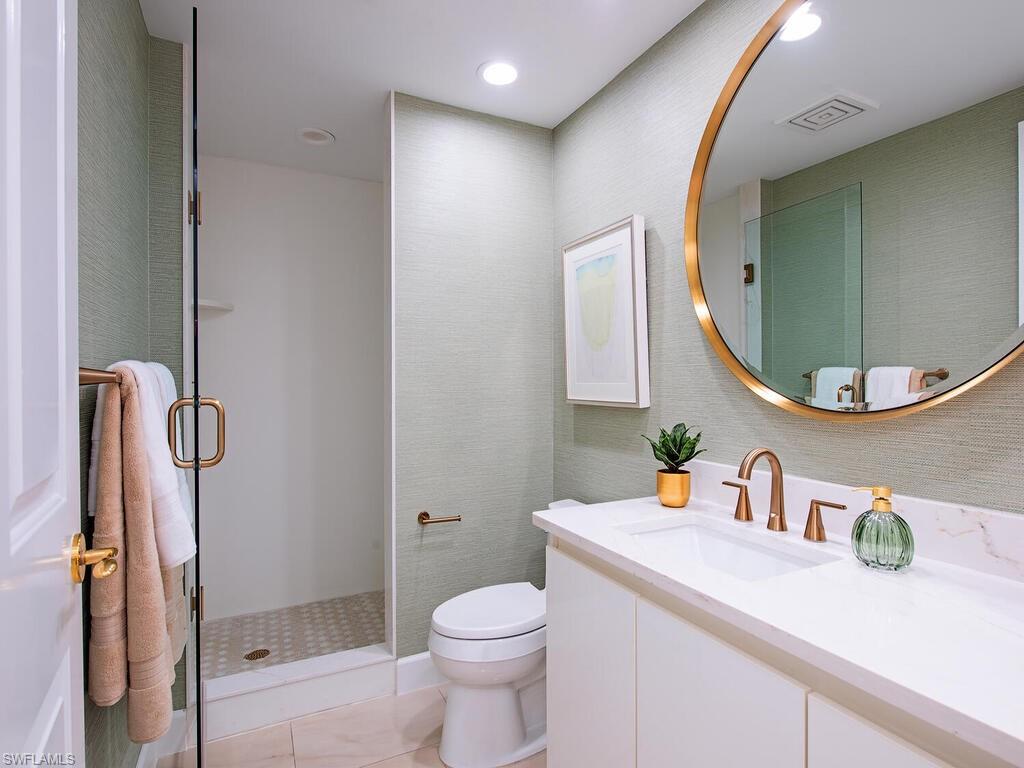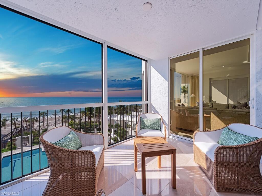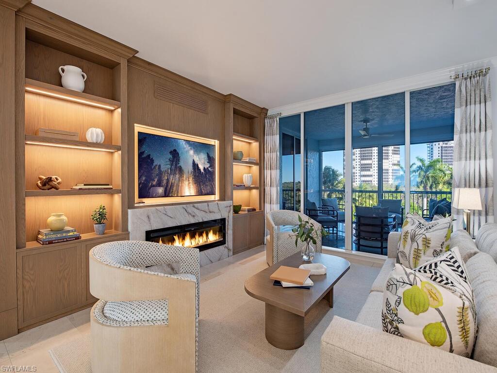 Experience elevated beachfront living in this elegant three-bedroom plus den, 3.5-bath residence at The Biltmore at Bay Colony, Naples’ premier gated, private Gulf-front community. Offering panoramic Gulf views from three lanais, this spacious, reimagined residence showcases timeless marble flooring, a fully remodeled gourmet kitchen with high-end appliances, exquisite master bedroom/bathroom, and elegant finishes and furnishings throughout directed by the skilled Godfrey Design Consultants. The versatile den features a custom built-in, TV and fireplace accent wall, while all bedrooms enjoy en-suite baths for comfort and privacy. Additional highlights include two under-building garage spaces, a climate-controlled storage unit with electric, and resort-style amenities: pool and spa, fitness center, sauna, social lounges, guest suites, and a newly renovated lobby with 24-hour front desk. Residents enjoy exclusive access to the Bay Colony Beach Club with fine dining and full-service beach concierge, plus Pelican Bay’s beach clubs, tennis, pickleball, wellness centers, and tram service. Minutes from Mercato, Waterside Shops, Venetian Village, and 5th Avenue South, this residence delivers exceptional luxury, lifestyle, and value on the Gulf of America. Ready for immediate enjoyment.