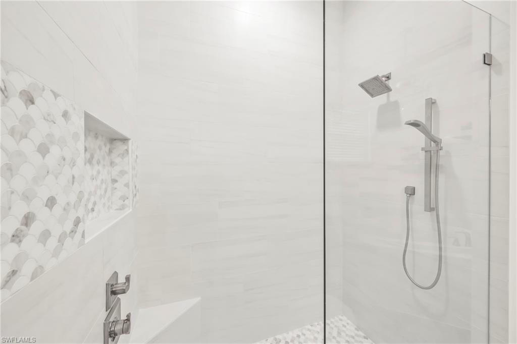 Welcome to this exceptional 4-bedroom, 4-bath residence offering over 3,600 total square feet, perfectly set on a generous oversize lot in desirable Naples Florida. From the moment you arrive, the custom double solid wood entry doors create a striking first impression, just 5 miles from the pristine beaches of Naples. This stunning Mediterranean-style home is located within the prestigious gated Wilshire Lakes community. Each room has a sliding doors that offers natural light and extraordinary views to the pool or the natural beauty of the garden Recently updated, the residence features fully renovated bathrooms, hurricane-impact, high-energy-efficiency windows and sliding doors, and lush, professionally landscaped grounds accented by ambient lighting. Designed for exceptional indoor-outdoor living, the private courtyard oasis includes a sparkling pool and hot tub, new 2022 pool heater, built-in grill with outdoor kitchenette, and a separate cabana complete with a full bath and kitchenette—perfect for guests or entertaining. Inside, enjoy soaring ceilings, elegant crown molding, tile flooring throughout, granite countertops, and stainless-steel appliances. Additional highlights include remote-controlled screens at the entry and garage, along with a newer A/C system and water heater (2020). A beautiful 43-foot portico overlooks the peaceful backyard, providing an ideal space for relaxing or morning coffee. Located in an A+ rated school district, Wilshire Lakes offers low HOA fees and resort-style amenities including a clubhouse, fitness center, community pool, and more. This is luxury Florida living at its finest, combining privacy, sophistication, and proximity to world-class beaches, dining, and shopping.
