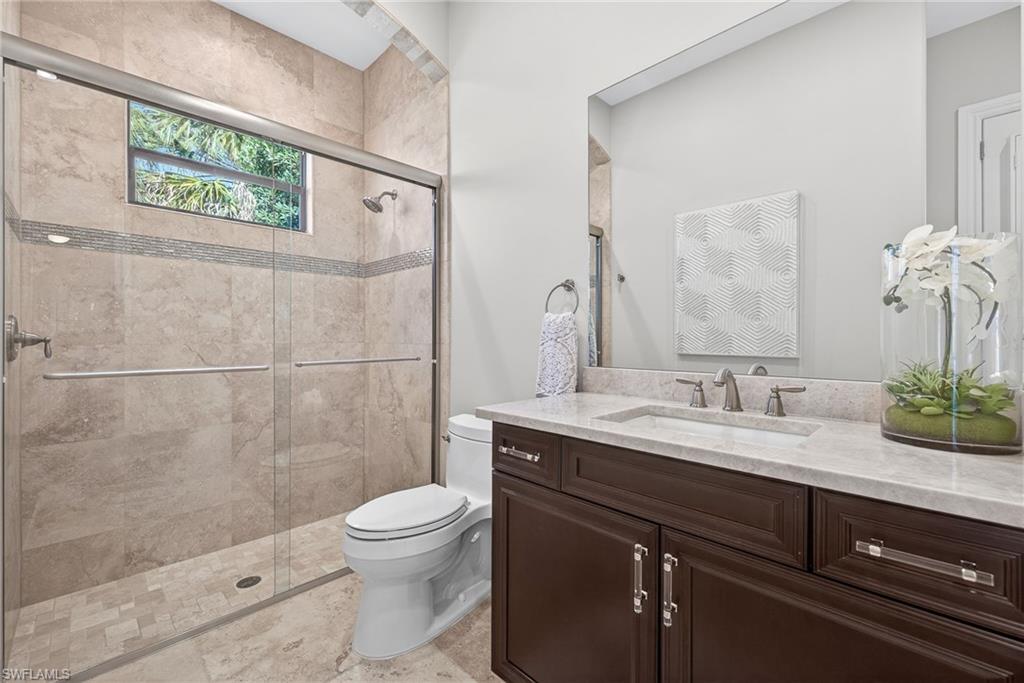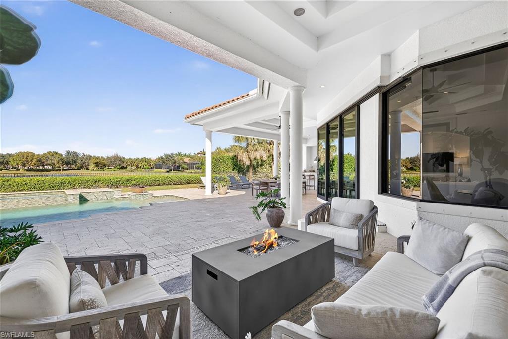 Set on one of the largest lakefront homesites in the community, this timeless 4 Bedroom residence plus a private office and 4 and a half baths offers the perfect blend of modern elegance and relaxed Florida living. Soaring ceilings and a beautiful mix of new wide plank light oak hardwood and tile flooring creating an airy, refined feel from the moment you enter, with spaces designed to transition seamlessly from formal gatherings to everyday comfort. Entertaining is effortless with a separate dining room and a custom wet bar complete with a wine cooler—ideal for hosting guests. The kitchen is a standout, featuring rich wood cabinetry, a center island, a walk-in pantry, 2 more wine coolers, and premium Viking appliances, including a natural gas cooktop. Casual dining is easy with bar seating and a sunny breakfast nook framed by a bay window overlooking the expansive outdoor living space. The heart of the home is the family room, where high-impact pocketing sliders open wide to a spectacular resort-style lanai. Outside, enjoy true indoor-outdoor living with a full bar, outdoor kitchen, sparkling pool and spa, and dramatic fire bowls that set the scene for unforgettable evenings. The primary suite is a peaceful retreat with a luxurious bath offering a separate soaking tub, walk-in shower, dual vanities, and designer lighting. Throughout the home, you’ll find thoughtful architectural touches including niche's and extensive closet upgrades. Three additional bedrooms are configured as private en-suites, each offering comfort and privacy for family or guests. Additional highlights include reconfigured pavers, new landscaping and landscape lights, new high-hats and dimmers throughout, a spacious laundry room with abundant cabinetry, sink, and built-in ironing board. The oversized three-car garage offers excellent storage, an air-conditioned closet, and even an additional washer and dryer—perfect for busy households and seasonal living. Located within Mediterra, one of Naples’ most prestigious luxury communities, residents enjoy world-class amenities including two Tom Fazio championship golf courses, tennis, pickleball and bocce, a state-of-the-art fitness center, and miles of scenic biking and jogging paths. Dining is elevated at the private country club, while the exclusive Mediterra Beach Club delivers a true Gulf-front experience with a two-story, 10,000-square-foot facility featuring indoor and outdoor dining, a heated pool, sundeck, and full cabana service with chairs, umbrellas, and refreshments. This is a rare opportunity on an oversized lakefront lot in Mediterra—where elegant living meets resort-style amenities. Don’t miss your chance to call this one home.