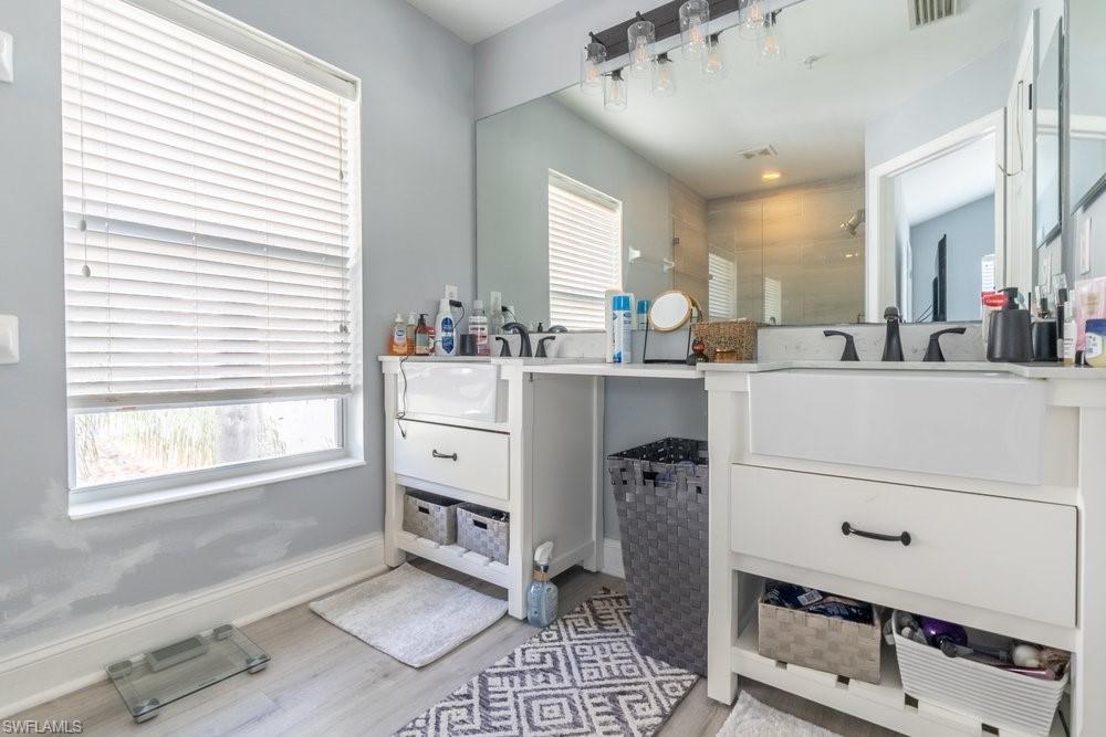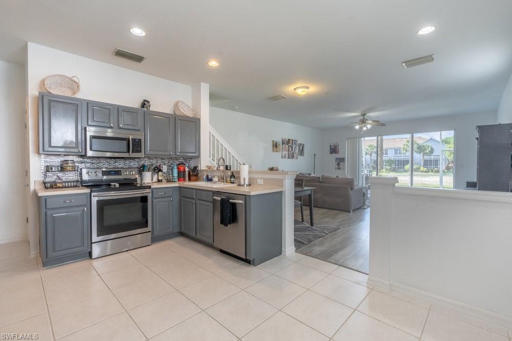 Enjoy peaceful lake views from this beautifully upgraded 3-bedroom, 2.5-bath corner-unit townhome in a prime Naples location. Classified as a single-family residence, welcoming FHA buyers, this home offers flexibility while delivering the ease of low-maintenance townhome living. The interior features vinyl plank flooring throughout (kitchen excluded), stainless steel appliances, and a brand-new central air conditioning system, offering comfort, efficiency, and peace of mind. The spacious primary suite showcases dual farmhouse-style sinks and a marble walk-in shower, creating a spa-inspired retreat. As a larger corner unit, the home includes a 2-car garage, extra yard space, and serene lake views—ideal for relaxing or entertaining. The community enhances the Florida lifestyle with a community pool and hot tub, BBQ area, basketball and tennis courts, sidewalks, and a pet-friendly atmosphere. Conveniently located near Seed to Table, Publix, Walmart, and I-75, with Naples’ renowned beaches just a short drive away. Zoned for top-rated public schools, this home blends comfort, convenience, and location in one exceptional offering.