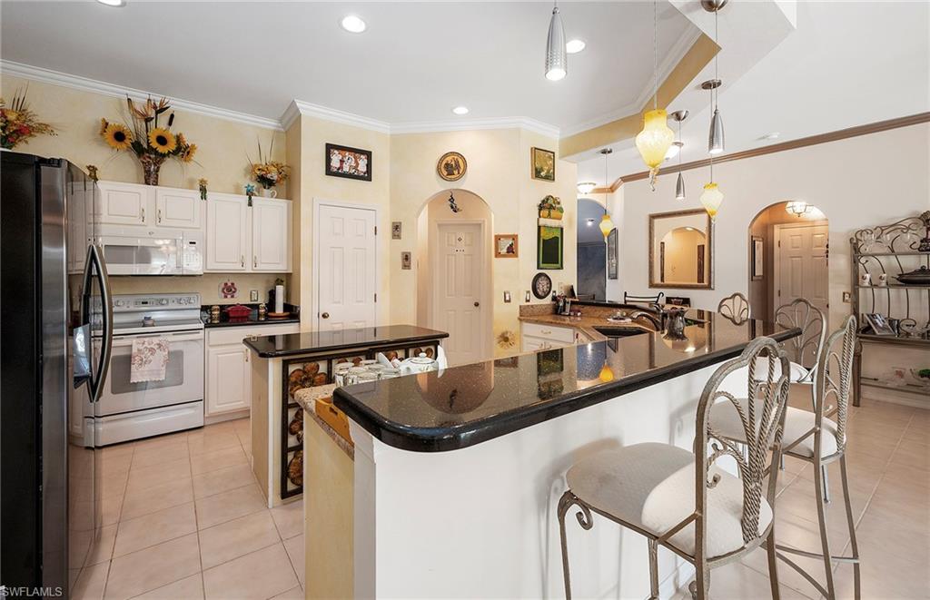 Lakefront Pool/Spa Home – Turnkey and Move-In Ready This beautifully upgraded lakefront home, located in a highly sought-after community with low HOA fees, is the perfect place to call home. Situated just across from Coconut Point, the Hyatt Regency, and the new Ritz-Carlton towers, this property offers both convenience and luxury. Built in 2001, this home features a paver driveway, 2019 roof, and an 2024 A/C in the garage, ensuring comfort and durability. Heated pool has a 2023 pool heater. Electric shutters along back of home and accordian shutters on all windows. Located in flood zone X, this property offers peace of mind and security. Inside, the open-concept kitchen boasts sleek granite countertops and stainless steel appliances, making it perfect for both everyday living and entertaining. The spacious master bedroom overlooks the heated pool and spa, as well as serene lake views. Additional highlights include a large 2012 bonus room that can be used as an extra bedroom, den, or hobby room—offering flexible space for your needs. Upscale furnishings are included, making this home truly turnkey and ready for immediate enjoyment. Located on a desirable lot with easy access for showings, this home is move-in ready and waiting for you!