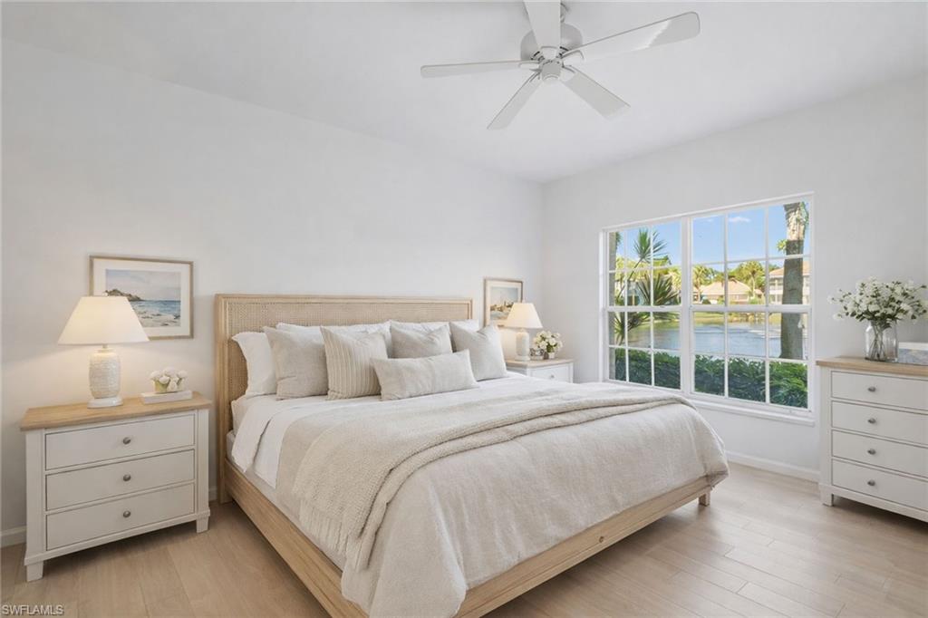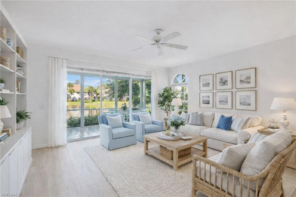 Experience effortless living in this light-filled first-floor residence in the desirable Crescent neighborhood of Pelican Bay. Thoughtfully designed and wonderfully positioned, this three-bedroom, two-bath home with a one-car garage offers a seamless blend of comfort and tranquility. An open and airy floor plan welcomes you with spacious living and dining areas, ideally suited for intimate gatherings and relaxed everyday living. The kitchen features generous counter and cabinetry space and is complemented by new stainless-steel refrigerator. Go onto the screened lanai to enjoy lush lake views and a peaceful natural backdrop, an ideal setting for morning coffee or evening relaxation. The primary suite is a private retreat, showcasing serene lake views, direct lanai access, a walk-in closet and a spacious en-suite bath. The two guest bedrooms offer privacy and convenient access to a nearby full bath. Additional features include a spacious laundry room, newer air-conditioning system and water heater, and electric storm shutters throughout, providing comfort and peace of mind. This residence presents a wonderful opportunity to personalize and create a charming coastal retreat. Pelican Bay offers an unmatched resort-style lifestyle with exclusive private beach access, two beachfront restaurants, state-of-the-art fitness and wellness facilities, racquet sports, scenic recreational and biking paths, and more, all set along Naples desirable coastline.