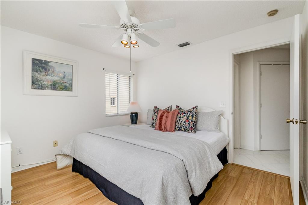 This spacious 3-bedroom, 2-bath condo is move-in ready and rarely available as an upstairs end unit, offering abundant natural light throughout. Enjoy privacy and indoor-outdoor living on the screened lanai/balcony, complete with glass sliders and floor-to-ceiling window coverings. The home features tile and laminate flooring throughout—no carpet, making maintenance effortless. Neutral finishes and bright white paint create a clean, modern canvas ready for your personal touch. Additional highlights include a new water heater, a transferable home warranty, and the condo is being offered turnkey. Villages of Emerald Lakes has recently completed significant community upgrades, including new security gates and a full renovation of both swimming pools, enhancing both lifestyle and property values. Amenities abound with two pools, tennis, pickleball, bocce, billiards, a fishing pier, and a clubhouse—all set amid lakes and beautifully maintained surroundings. Ideally located in the heart of North Naples with easy access to I-75, this community places you just 5–10 minutes from award-winning dining, premier shopping, and Naples’ stunning beaches.