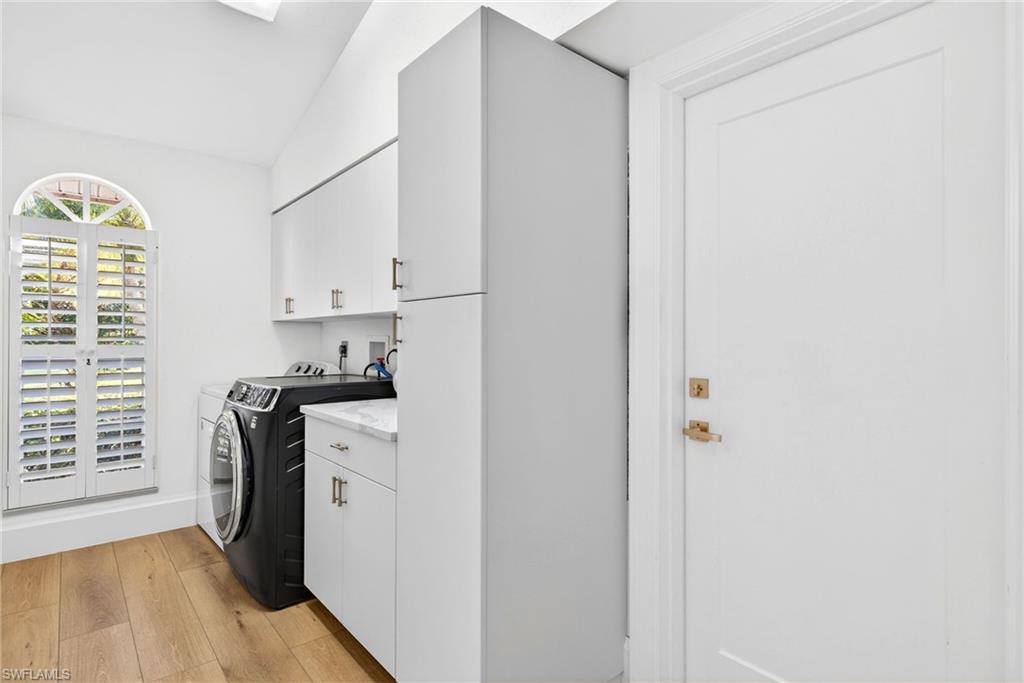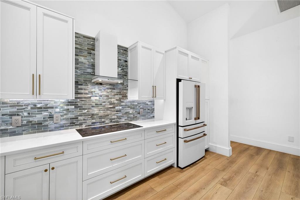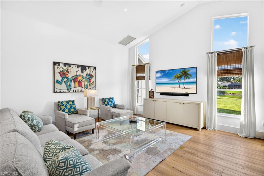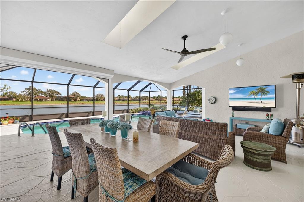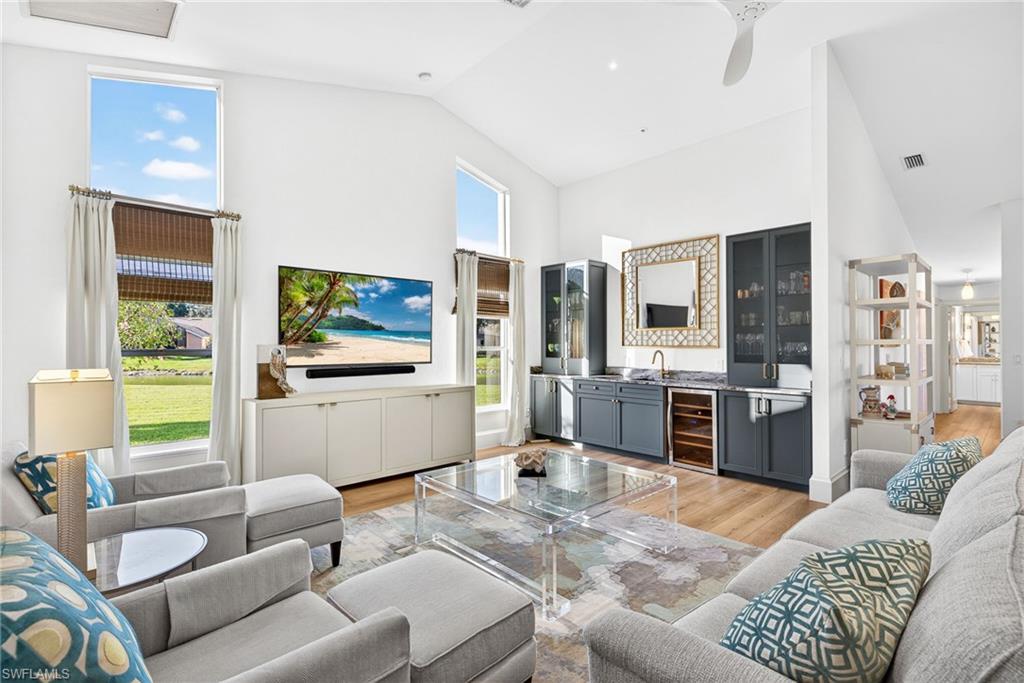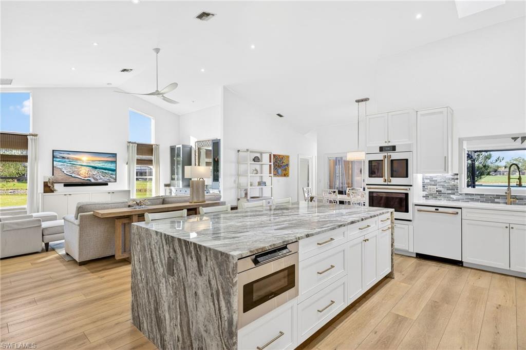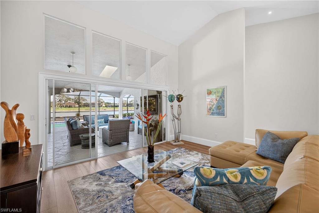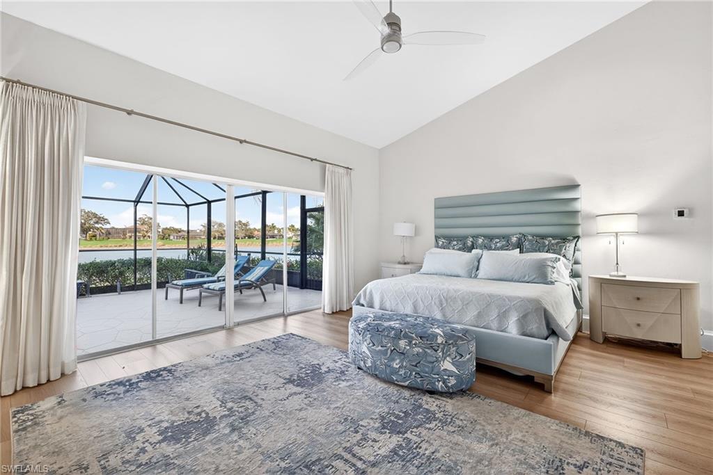 Exquisite lakefront estate on an oversized cul-de-sac lot in the prestigious Valley Oak enclave of The Vineyards. This impeccably renovated home boasts soaring ceilings, sweeping lake views from nearly every window, an oversized 2-car garage, and a brand-new 2026 pool and spa renovation, offering an unparalleled combination of elegance, privacy, and Florida lifestyle.The 2020 renovation features CoreTec luxury vinyl flooring, designer tile and lighting, and a chef-inspired kitchen with quartz and granite countertops, GE Café appliances including a 6-burner induction cooktop and French-door double oven, a Fisher & Paykel dishwasher drawer, oversized 32” sink, and custom storage throughout. Spa-inspired baths, plantation and Storm Smart electric shutters (2021), a new GE washer, and an epoxy-finished garage complete the home’s thoughtful upgrades. Set against a serene lake backdrop, this residence offers effortless indoor-outdoor living with access to lush landscaping, walking paths, and optional world-class golf, tennis, wellness, and dining—just minutes from Naples’ beaches, shopping, and fine dining.
