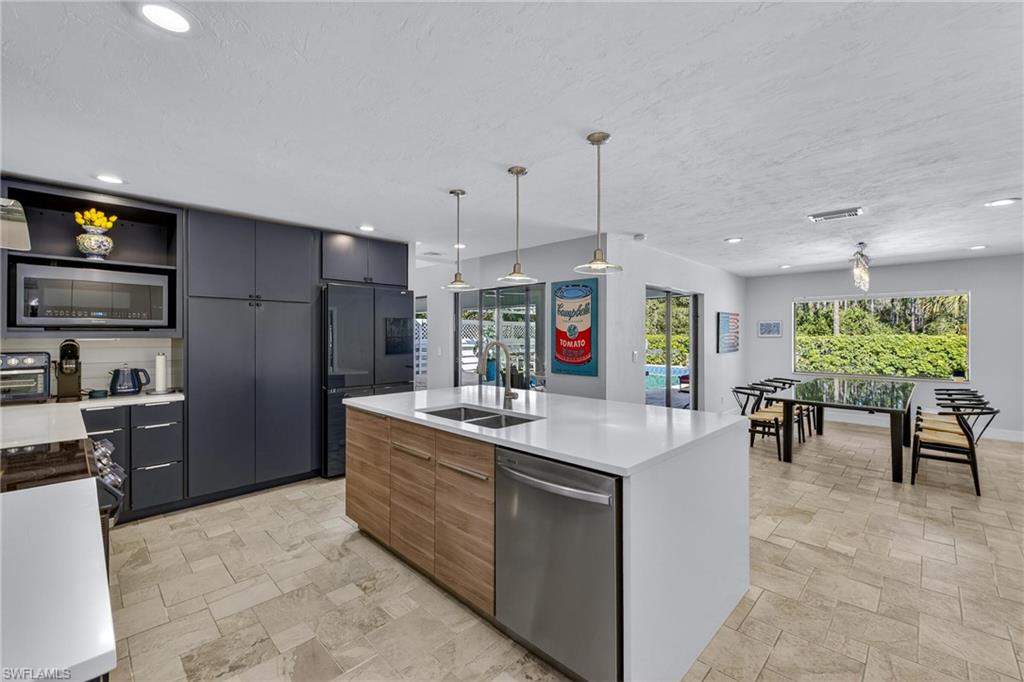 North Naples 2.5 acres with room to build additional house or guest house, barn, workshop or sports courts. This 3 bedroom plus large den lives bright and spacious. 2 beautiful updated bathrooms. Inviting living room and large dining room. 2 car garage. Open kitchen with lots of storage. Storm protection is impact glass and electric roll down shutters. Property is furnished with interior and exterior furniture. Tiled throughout. Great for entertaining with the 16' x 30' salt- water heated pool, In-ground 7' x 7' spa. Approx. 1,800' paver deck with pergola. Fenced with electric gate. Lush landscaping provides great privacy. Irrigation system. Completely remodeled from 2013 onwards. Metal roof. Many, many recent upgrades. Quiet on a cul-de-sac street. One traffic light to shopping, restaurants and services and an easy drive to Naples sandy beaches.