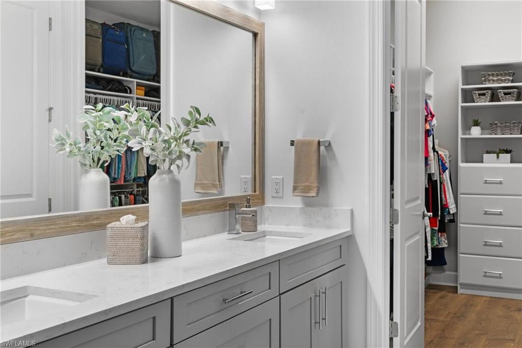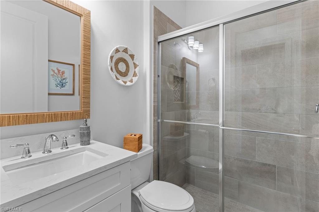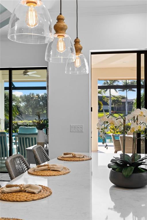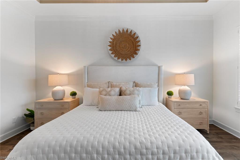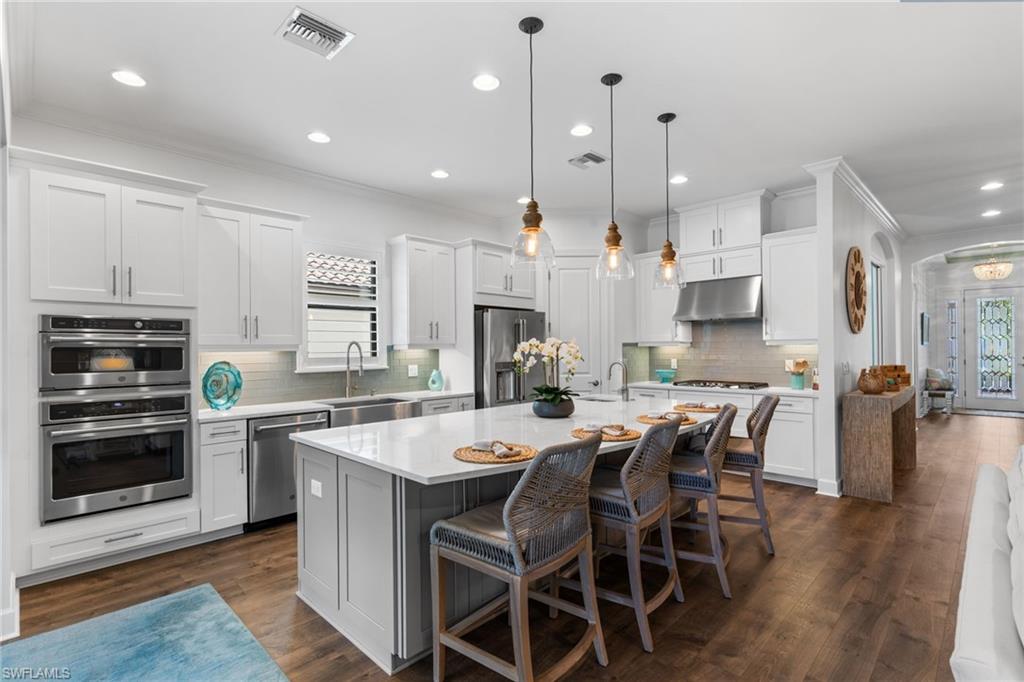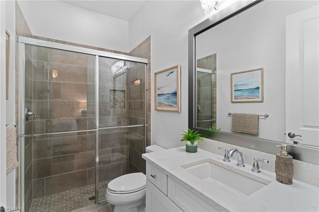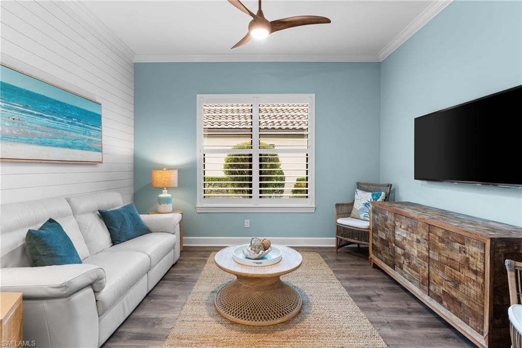 Welcome to 9334 Terresina Drive, your chance to own in the exclusive Esplanade Golf & Country Club of North Naples with a full-golf membership, deeded to your home. Every inch of this Lazio model has been meticulously maintained and upgraded, an exceptional opportunity to live a lifestyle that you have always dreamed of. A perfectly furnished ready-to-live, 3-bedroom, 3-bath residence with just under 2,300 square feet of open-concept living space - complemented by southern exposure, long lake views, and the pristine golf course. Stepping in, you are fully protected from all elements as natural light flows through the hurricane windows and wide open lanai. Unique to only this home the custom designs, accents, and furnishings are all included. The entire home showcases luxury: vinyl plank flooring throughout, crown molding, custom wall details, and elegant tray ceilings that add architectural interest to the main living areas and master suite. The heart of this home is the thoughtfully expansive kitchen, featuring premium shaker-style cabinetry, stunning Cambria quartz countertops, a gas cooktop with double wall oven, and all high-end stainless steel appliances. Each guest rooms includes it’s own, beautiful ensuite and the split layout allows for maximum privacy for you and your visitors. The outdoor living space is nothing short of spectacular - updated with beautiful travertine stone, a custom outdoor kitchen, and cozy seating around a built-in fireplace. Embrace the indoor-outdoor lifestyle by lowering the StormSmart electric screens and expanding your living area by opening the sliding doors. All this overlooking your pristine saltwater pool and spa - with all new pool equipment installed over the last three years. Professional landscaping with integrated lighting transforms the backyard into a private oasis, while the extra-wide driveway and epoxy-finished garage floor add both functionality and style. Outfitted with a Generac 24KW whole-house, natural gas generator for peace of mind. Kinetico whole-house water filtration and softening systems, impact windows throughout, plantation shutters grace all windows, a tankless gas hot-water heater, freshly painted inside (2024) and out (2023), ensuring a move-in ready experience that is seamless and worry-free. Best of all, your quarterly fee of just $3,743 covers full golf membership, landscaping maintenance, irrigation, and access to all of Esplanade's world-class amenities—including the resort pool with Bahama Bar, tennis, pickleball, bocce courts, a 14-mile network of trails, and the impressive 15,000-square-foot clubhouse with restaurant, wine-tasting room, and café. With exciting upgrades coming in 2026, including an air-conditioned indoor pickleball complex, this is your chance to secure a meticulously upgraded home in Naples' finest golf community.