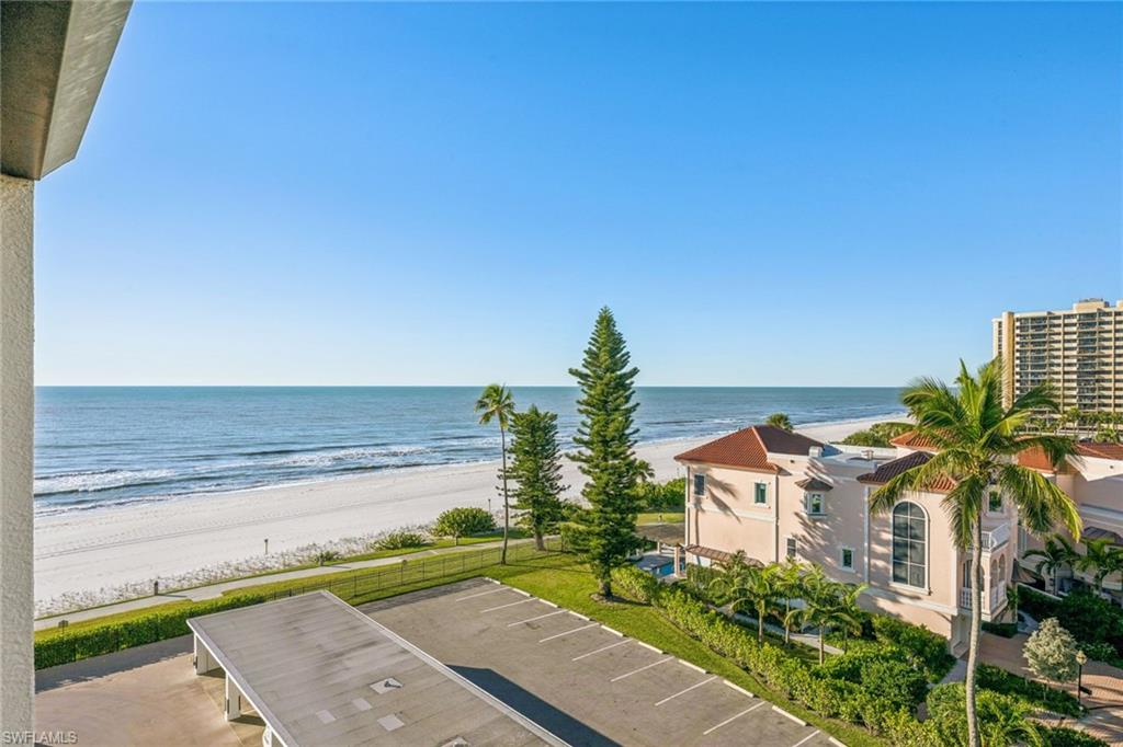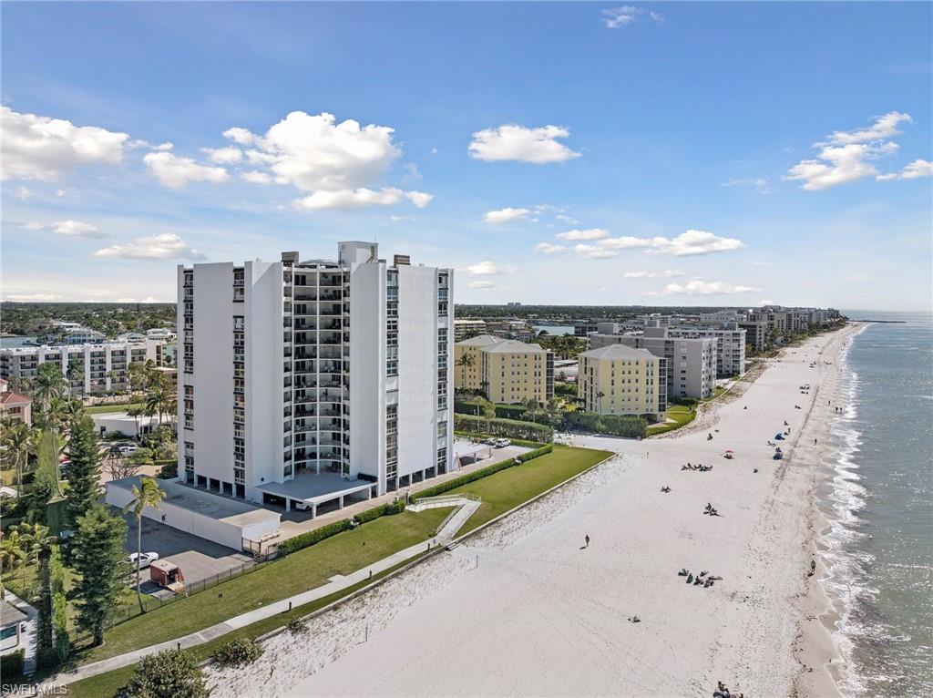 For those who desire the ultimate coastal beach lifestyle this condominium is for you! This spacious two-bedroom/two-bathroom condo in the desirable Park Shore neighborhood is light, bright and airy with high ceilings and stone flooring. It has been freshly painted, and you will have peace of mind with the new HVAC. A spacious 30-foot lanai is the place to be with a cup of coffee for the sunrise or a good place to gather family and friends for evening cocktails. A breakfast bar and coffee bar with plenty of storage makes for a dream kitchen. Enjoy the sounds of waves and Gulf water views from your spacious primary suite and bath. Directly on the sand, the architecturally unique Horizon House offers a great stretch of beach just steps from your unit. The 1.3-mile private promenade for walks, the white sandy beach for your toes, the beautiful sunsets and a place to spot a dolphin or two makes for enjoyable days. The newly designed and remodeled club room, exercise and game room along with a private pool and grill area, are all added amenities. All this is ideally located, a short walk to the Venetian Village for boutique shopping and dining or a quick cruise to downtown Naples.
