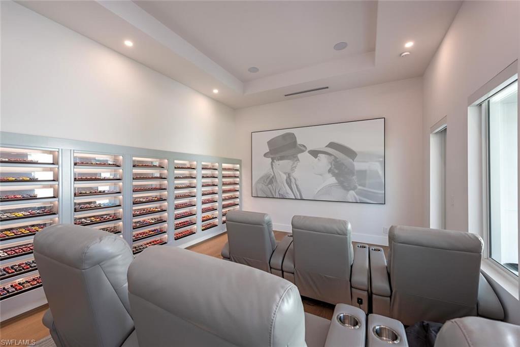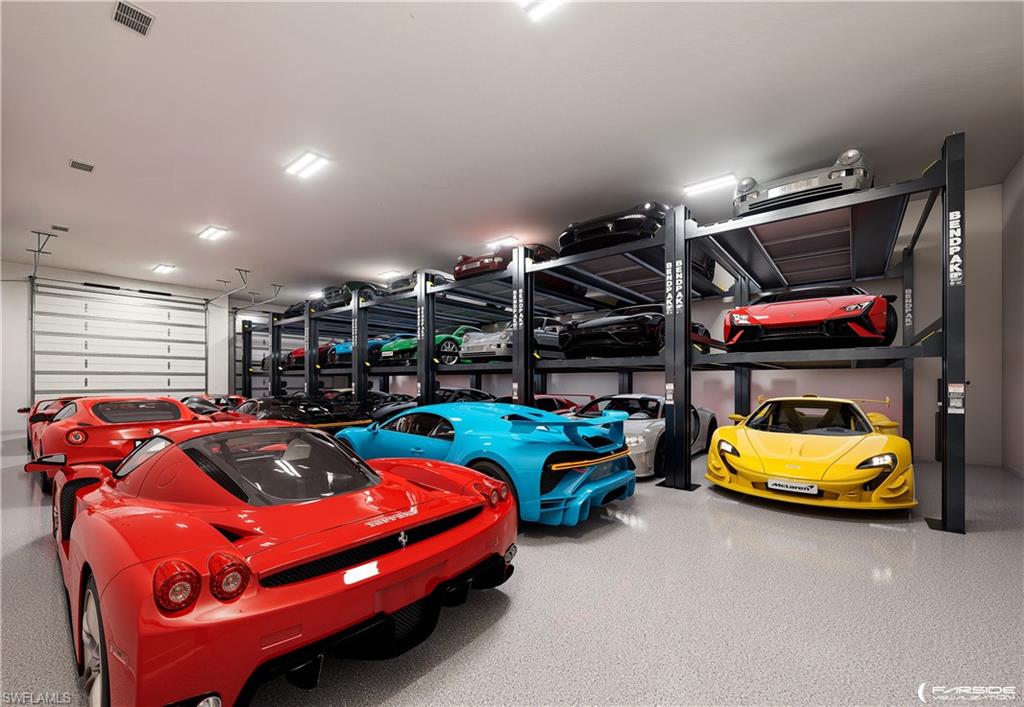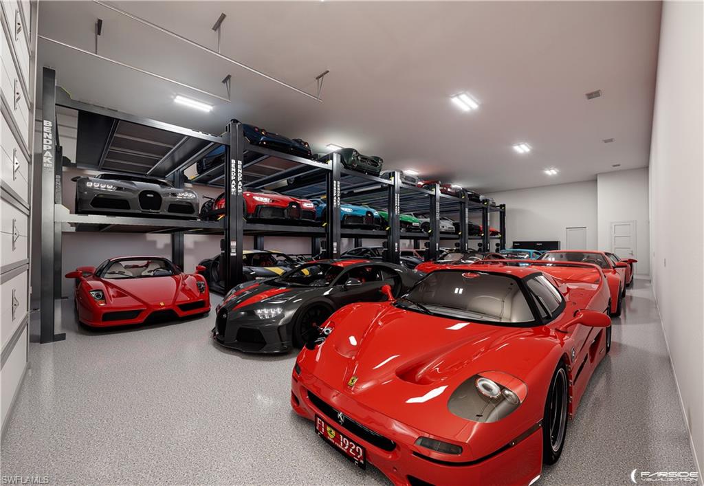 Never be bored at 6824 Sable Ridge Lane, a custom-built Toy Vault estate home where scale, craftsmanship, and resort-style amenities define everyday living. Offering 4,759 sq ft of refined interior space, this residence is set on 2.73 fully landscaped and irrigated acres with coveted southern exposure, delivering privacy, flexibility, and an exceptional entertaining environment. Attached you will be amazed at the nearly 3,000 sq ft toy (Cars, Boats, RV's) fully permitted climate control garage space with two insulated 14x14 foot doors and 16 foot ceilings that can occupancy approximately 27+ cars with lifts. This is all joined by a separate 1,571 square foot side-load garage. Dual automated gates allow easy access for boats or recreational vehicles or large gatherings. The living area is centered around a fireplace and expansive pocketing sliding glass doors that open effortlessly to the outdoors. The kitchen pairs striking design with function, featuring ten-foot cabinetry, bespoke millwork, and seamless connection to the dining space, highlighted by a 128 bottle glass wine display. 4 en suite bedrooms with fully built walk-in closets 5 1/2 bathrooms and also a discreetly enclosed private outdoor shower are complemented by a dedicated movie theater with seating for 9. Outdoor living rivals a private resort, anchored by a pool with integrated infinity-edge spa, sunken fire pit, and additional fire features that create evening ambiance. The covered lanai offers a fireplace, television, hibachi dining table, and generous entertaining space, all protected by custom white hurricane shades. Another seating area off the theater overseas the putting green and bocce court which extends the lifestyle beyond the lanai. Enhanced with Lutron lighting and shades throughout, integrated audio, camera security, a whole-home generator, and extensive water and power infrastructure, this estate delivers refined Naples living without compromise. A gravel driveway to the back open 1 acre can be a clean slate for future expansion--a guest house, tennis/pickleball court, horse stable etc or just be left for your tranquility. Livingston Woods offers ample acreage that allows for horses and is in one of Naples best private and public school districts in Collier County.