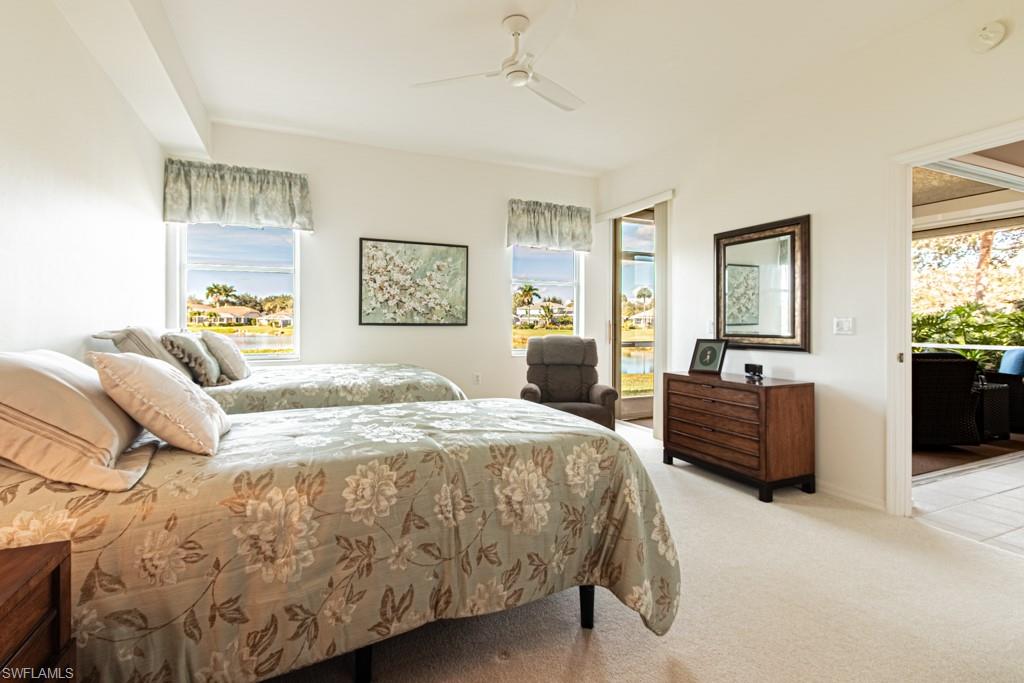 Instant appeal is what you will see the minute you walk into this fabulous first floor condo with breathtaking views of the lake, golf course and magnificent sunsets. Condo is open and bright with plenty of room for guests. Large grass space in between buildings for extra privacy. This beautifully maintained 3-bedroom, 2-bath home with a 1-car garage offers an inviting open layout. The kitchen features stainless steel appliances, perfect for everyday living and entertaining. Enjoy pay-as-you-play golf with no mandatory golf fees. Low association fees include basic cable and internet, lawn care, and land maintenance—making for truly carefree living. Ideally located close to Founders Square, shopping, dining, the airport, and Naples’ world-class beaches.