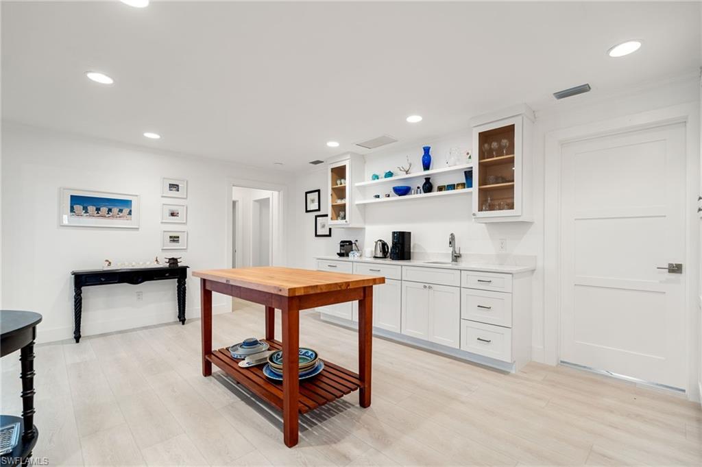 Framed by long, southwest-facing water views, this Coquina Sands waterfront residence enjoys a tranquil setting along the quiet enclave of Hurricane Harbor Lane. Boasting approximately 150 feet of water frontage and sunsets year-round, the property is set on just under half an acre and offers an exceptional sense of space and privacy, with expansive water vistas as a stunning daily backdrop. Thoughtfully oriented to maximize its setting, the home features a light and bright interior, with main living areas opening toward the water to create a seamless indoor-outdoor connection. Outdoors, a spacious pool area is ideal for relaxing or entertaining, while a private dock & seawall built in 2020 invites boating and paddle boarding adventures. Enhanced by a metal roof, newly refreshed interior and a highly desirable lot shape and size, the property also presents endless future development opportunities. Ideally located just moments from the beach, as well as Naples’ premier dining and shopping, this is a rare opportunity to enjoy peaceful waterfront living in one of the Naples more desirable coastal neighborhoods.