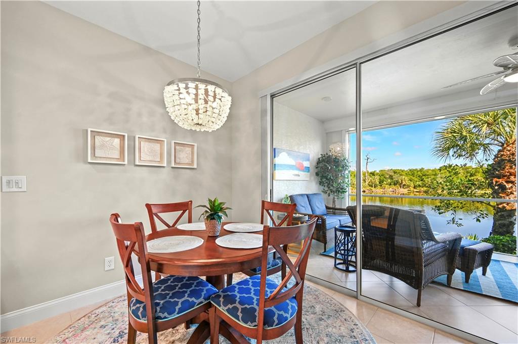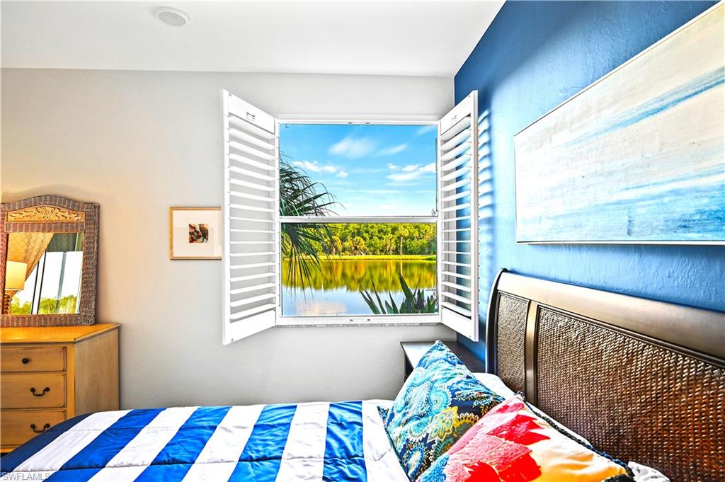 A SPECIAL UNIT WITH STUNNING LAKE VIEWS and NO FLOOD DAMAGE from Ian, Helene or Milton. This FIRST FLOOR UNIT, WITH EXPANSIVE LAKE / PRESERVE VIEWS, IS….. GORGEOUS. At this price point, you’ll be hard pressed to find such a view with a relaxing and peaceful lanai. This unit has the longest lake view in Harbor Lakes and is truly unique. Rest easy, knowing this unit is sold TURNKEY, has a new AC system (2024), Upgraded StormSmart Hurricane shutters, new dishwasher (2024), updated stainless steel appliances, upgraded baseboard molding and lighting fixtures. The kitchen has modern white shaker cabinets complete with stylish hardware, stylish arabesque backslash, quartz countertops, and the floor tile is spotless throughout. YOU WILL LOVE THE LAKE VIEWS FROM THE KITCHEN AND LIVINGROOM. SO MUCH DEPTH and alligators, ospreys, herons, and bald eagles frequent the lake, and because the lanai faces east, it stays cool all day long. Step into the master bedroom and the views continue. It’s spacious and energizing, complete with two large closets and custom shelving. The master and guest bathrooms both have updated vanities with quartz countertops and the tiles are in pristine condition. The second bedroom is perfect for family or friends and is complete with two beds and a good size closet. Additional sleeping area in the living room with queen size Murphy Bed, perfect for overnight guests or grandchildren. This unit truly embodies Bonita Bays mission statement, “Residents living in harmony, with nature.” Harbor Lakes is a special community with lush landscaping, beautiful lakes, ATTACHED GARAGES, a modern pool/club house, while maintaining a home like feel. With only 80 units, you will feel the difference when you drive, walk, or bike the street. If you’re looking for a TURNKEY UNIT that is tastefully updated, peaceful, complete with AMAZING VIEWS, 27061 Lake Harbor CT #102 is for you. Just bring your personal items to call this home. Residents of Bonita Bay enjoy 12 miles of walking/ biking trails, bocce, outdoor gym, pickleball, tennis, canoe/kayaking, boat launch, and three on site parks, as well as a BRAND NEW private beach park with in-season shuttle all included in the HOA. OPTIONAL membership to Bonita Bay Club, one of Southwest Florida's premier golf communities, offering an active country club lifestyle, five of championship golf courses and state-of-the-art amenities