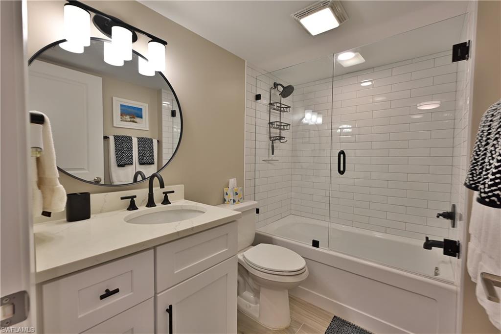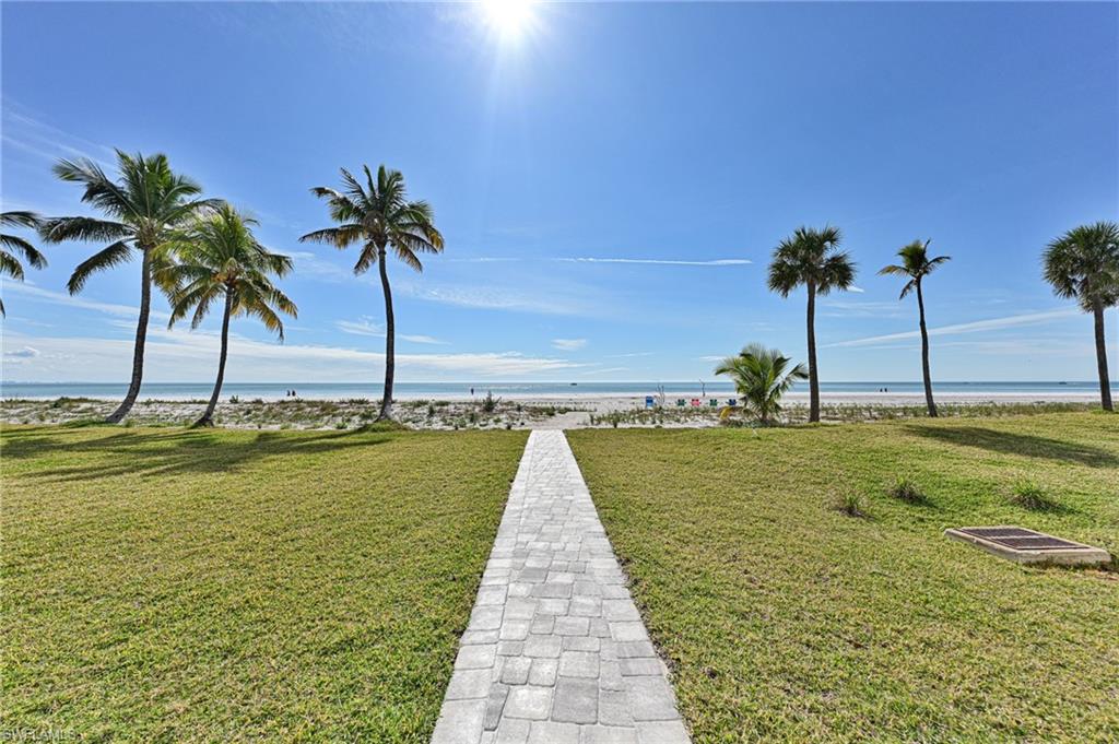 Newly completed direct beach front property on the desirable Southern end of Ft Myers Beach. This 2 bed 2 bath condo just completed a total renovation with tasteful coastal selections, new impact glass and electric lanai shutter, as well as all new appliances and systems. This home is additionally offered turnkey furnished with all new decorator furnishings. Upon entering you are greeted with sweeping beach front views and an open floorplan. The kitchen includes large sink and sit up bar, stainless appliances, quartz tops, expanded working surfaces including bar with secondary refrigeration. Coastal plank tile flooring runs throughout. The guest suite is spacious and the bath offers flexibility with the combo glass shower tub. The living area offers grand HDTV tall 8 foot sliding glass. The lanai is both screened and shuttered. The master bed offers large picture window on the beach front with high end plantation shutter treatments. Master bath is bright and tastefully appointed. The Sun Caper has been extensively upgraded and offers a unique sprawling setting with ample parking, large beach lawn and landscaped grounds. The pool area is also totally renovated and offers a marble sun deck. The pool is convenient to this unit (but not directly in front of it!) and offers grill area and community room. The beach is stunning with a direct pavered path to the sugar sand. This community offers a setting in that it is very bright and expansive uniquely neighboring residential property on all sides, not large commercial buildings. This unit would be great for both end users and someone looking for a profitable vacation rental (monthly). The Sun Caper is also pet friendly and offers some of the most reasonable HOA dues found for any beach front community. Location is key as this quiet southern end offers easy access to Naples/Bonita Springs, available boat slips, Lovers Key park, and is a stroll down the beach to Big Carlos Pass area to watch the boats come in and out. This unit shows as new and is ready to move in, no furniture/furnishings project!
