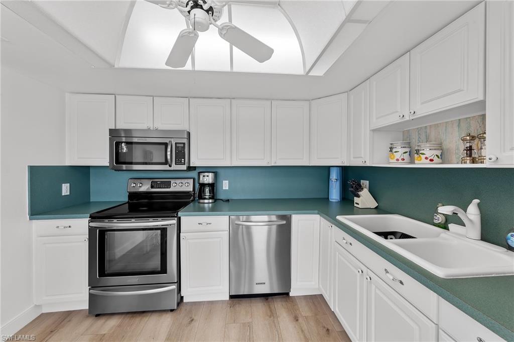 This beautifully maintained 2-bedroom, 2-bath condo offers a truly unforgettable view of the 11th Island green, surrounded by shimmering water, a tranquil water feature, and abundant tropical birdlife—part of what has earned Glades Golf & Country Club its Audubon Society designation. The interior features updated wood flooring, a newly renovated primary bathroom, and plantation shutters throughout. A screened lanai provides the perfect vantage point to relax and enjoy the peaceful setting and natural beauty. Residents enjoy bundled golf on two championship courses, 12 pickleball courts, tennis, bocce, shuffleboard, nine swimming pools, an active clubhouse, and the popular 19th Hole Restaurant. Ideally located just minutes from Naples’ pristine beaches, as well as downtown restaurants, boutique shops, and cultural attractions, this condo delivers the best of Florida golf-course living.