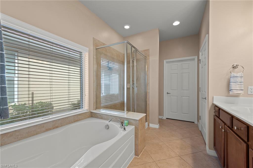 This highly sought-after Tifton pool home is now available on a quiet street just two blocks from the Town Center amenity area. The home is fully storm protected, featuring power shutters on the lanai and accordion shutters on all remaining windows for peace of mind. The versatile floor plan offers 2 bedrooms plus a den and a flex room, perfect for an office, providing plenty of space to suit your lifestyle. The open kitchen is ideal for both casual and formal dining, with seating at the island as well as a spacious dining area. Thoughtful features include a microwave, range, island end cabinets for small appliances, and a walk-in pantry, making this kitchen a true chef’s delight. A split-bedroom layout places guest or family bedrooms toward the front of the home with a shared bath, while the owner’s suite offers privacy and stunning views through three large triple windows overlooking the pool and lake. The laundry room is generously sized and includes a utility sink with space to accommodate an ironing board and drying rack. Step outside to the covered lanai, which provides ample room for both an outdoor seating area and dining table—perfect for entertaining or relaxing by the saltwater pool. Recent updates include pool solar panels replaced in 2024, pool pump replaced in 2024, and a water heater replaced in 2022. VillageWalk is a vibrant community of mostly lakefront homes, connected by scenic Riverwalks leading to the Town Center. Amenities include a bagel shop, VillageWalk Bar & Grill, post office, hair salon, spa, ice cream shoppe, as well as bocce, basketball, playground, pickleball, tennis, two pools, and a full-time activities director. Conveniently located near Coconut Point, Gulf Coast Town Center, Logan Landings, Tarpon Bay Plaza, and the upcoming Midtown Bonita, this home is just 25 minutes from RSW Airport and minutes from the charm of historic Downtown Bonita Springs and it's new dining and entertainment venues