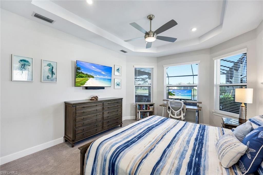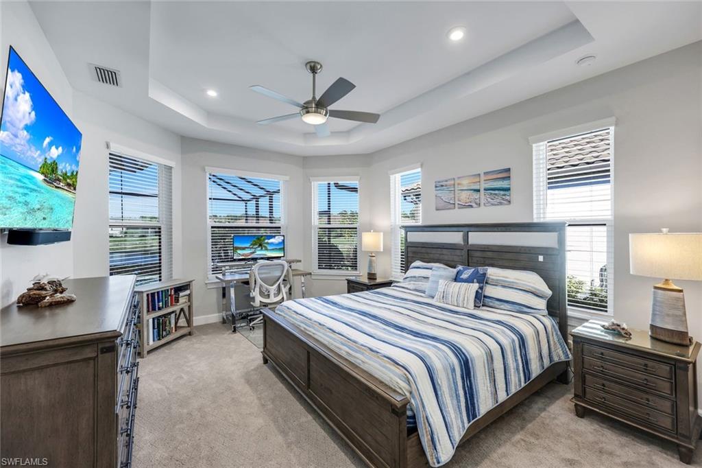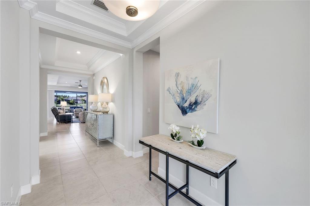 Experience effortless Florida living in this beautifully upgraded home set on a peaceful lake in the sought after Esplanade at Hacienda Lakes. Designed for comfort and entertaining, the open great room flows seamlessly to an expansive screened lanai through wide stacking sliders, creating an ideal indoor-outdoor lifestyle. The outdoor space is a true highlight, featuring a resort-style pool and spa, covered living area, and a fully equipped outdoor kitchen - perfect for relaxing or hosting family and friends. Inside, the kitchen is thoughtfully designed with quality finishes, ample storage, and a welcoming layout that connects naturally to the main living areas. The primary suite offers a quiet retreat with tranquil views and a spacious walk-in shower and walk-in closet. Additional flexible space allows for a home office or guest accommodations. Impact windows and doors, smart-home features, and numerous upgrades throughout reflect pride of ownership. Residents enjoy a gated community with exceptional amenities, including a clubhouse, fitness center, pools, tennis, pickleball, and scenic walking paths—all conveniently located near shopping, dining, and Naples’ beaches.