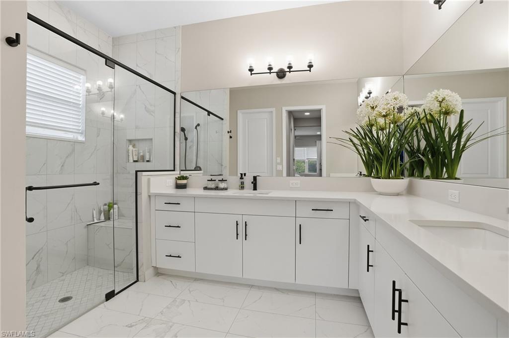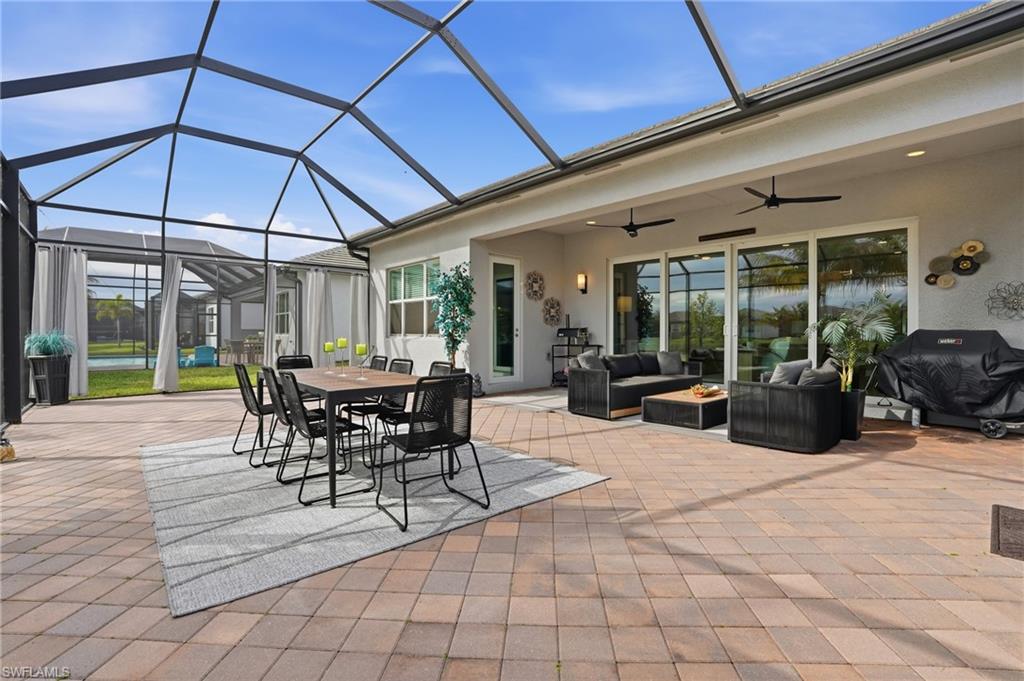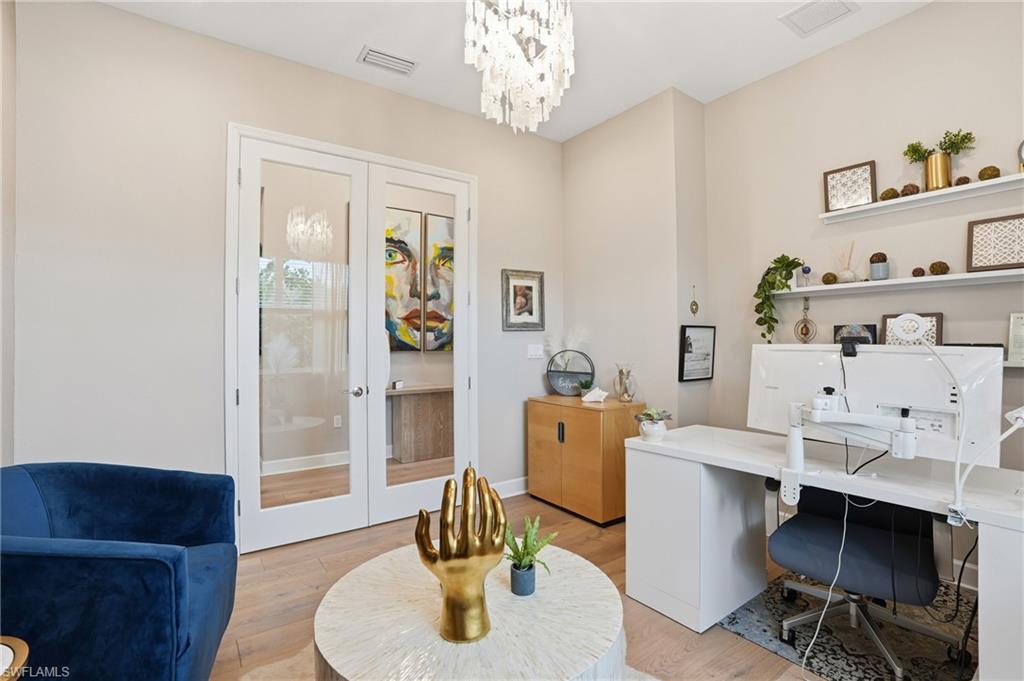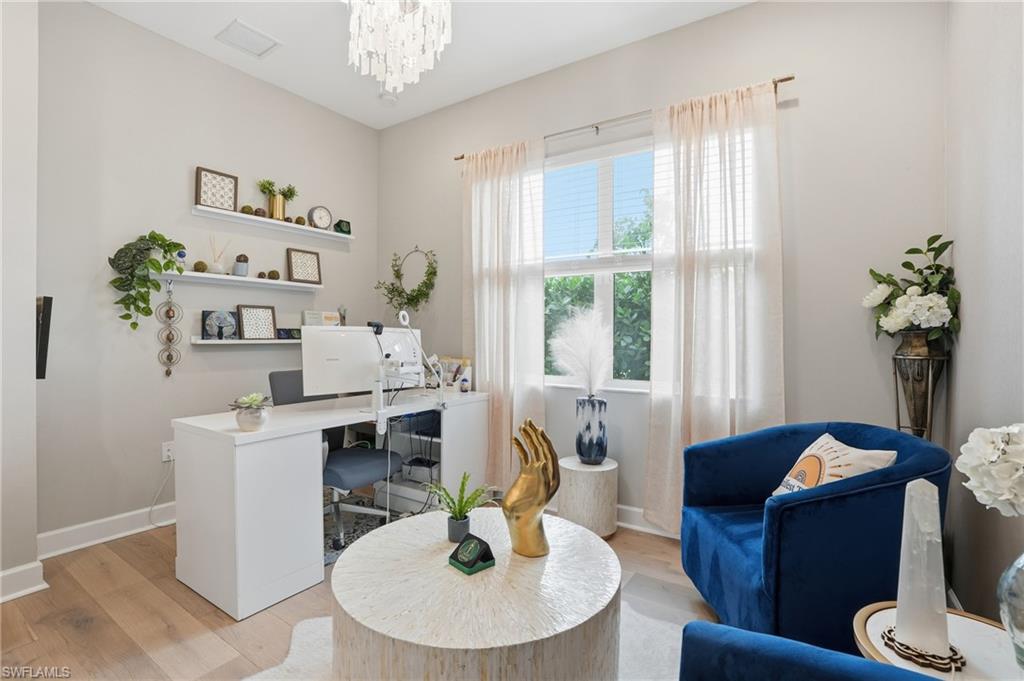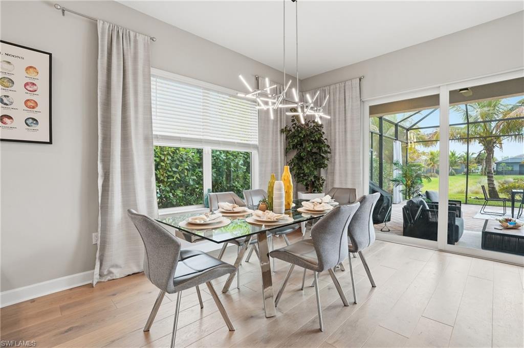 The moment you walk in, you notice how beautifully done and light-filled this home is bright, welcoming, and easy to live in. Nothing feels tight or overdone; it just flows. The kind of home where you can picture living here full-time or spending time seasonally, surrounded by the people you love. Built just two years ago and thoughtfully upgraded with over $100,000 in premium enhancements, this residence stands apart from standard builder offerings and features hurricane-impact glass throughout for added peace of mind. The living space opens right out to the extended lanai and lake, which is really where this home shines. This is where mornings start with coffee outside, dinners stretch a little longer because no one’s in a rush to leave, and friends, family, and guests feel instantly at home. The lake gives you space and privacy, and being on a corner lot means you’re not looking into someone else’s windows. Inside, the layout just makes sense. You’ve got three bedrooms plus a den, so everyone has their own space. The den works perfectly as a home office, hobby room, or extra sleeping space when visitors come down from up north. With three full bathrooms, hosting is easy, even when the house is full. The kitchen has already been upgraded, including natural gas cooking, so you’re not walking in thinking about projects. Wide-plank white oak wood flooring, custom finishes, and thoughtful details throughout reflect a home where the work has already been done and done well. The primary suite feels like a true retreat, complete with custom closet systems that make daily living simpler, not more complicated. The split floor plan adds another layer of privacy, with the primary suite set apart from guest spaces. Even the garage has been elevated, featuring air-conditioning and epoxy flooring, ideal for storage, fitness gear, bikes, golf equipment, or simply keeping everything clean and organized. What really sets this home apart is how low-maintenance life feels here. Valencia Trails is a newer 55+ community designed for people who want to stay active, social, and engaged without feeling obligated to do it all. There’s a large dog park, miles of walking trails, multiple pools, and a beautiful clubhouse that includes a cooking studio, spa, billiards room, indoor and outdoor bars, and a banquet hall with shows and events. Add pickleball, tennis, and a wide variety of clubs and activities, and it’s easy to fill your days exactly how you want or keep them as full or relaxed as you choose. And soon, a back gate directly out to Vanderbilt Beach Road will make getting in and out effortless whether you’re heading to dinner, the beach, or meeting friends and family. This isn’t just a place to live it’s a home that supports how you want to spend your time now. Whether it’s just the two of you or a house full of visitors escaping winter, everything has its place, everyone has space, and life here simply feels… easy.