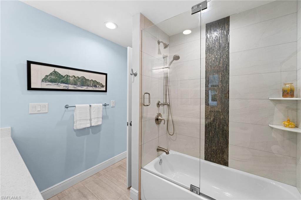 Completely renovated, this 3-bedroom, 3-bath home offers the rare combination of "new-build" peace of mind on one of the most desirable golf course lots in Imperial Golf Estates, overlooking a serene lake and the 3rd hole of the East Course. Thanks to mature landscaping and the oversized picture-screen lanai, you enjoy a wide-angle, panoramic view that feels remarkably private and is ideal for unforgettable sunsets.?The home feels fresh, open, and thoughtfully designed for today’s lifestyle with Jasper USA hickory hardwoods throughout—no carpet—and a custom built chef’s kitchen, featuring a Viking gas cooktop, a large quartz island, extensive cabinetry, and a pot filler.??The layout is uniquely functional, with large rooms, lots of storage, and upscale decor throughout. The floor plan features two full ensuite bedrooms (dual primaries), offering maximum flexibility for multi-generational living or guests. Each bath is finished with solid wood cabinetry and quartz counters. For total peace of mind and efficiency, the home features PGT impact windows and sliders, an impact front door, a hurricane-rated garage door, all-new electrical and plumbing, a newer roof with gutters, and two independently controlled A/C systems.?The outdoor living space is equally impressive, boasting a 30’ x 15’ saltwater gunite pool with brand-new 2025 Hayward equipment. A 120-gallon propane tank is already plumbed for a future outdoor kitchen, generator, or pool heater. Conveniently located near Naples' pristine beaches, top-rated schools, and world-class dining and shopping, this home perfectly blends modern efficiency with long-term peace of mind and relaxation. Truly move-in ready.