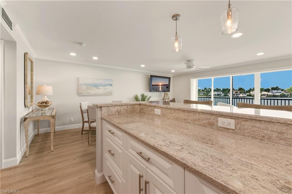 Fantastic long Southern Views of Moorings Bay and Doctors Pass. Absolutely one of the Best views in Naples. Only a short walk to the Beach. Also 5minutes to Venetian Village for world class shopping and Dining. This Unit has just recently been totally tenovated. The unit is very open with multiple upgrades in every room. There is a Deeded Boat Slip that comes with the unit. The unit is being sold Turnkey and is Move-In ready. The building and Carport roofs are 1 year old and the A/C is brand new.