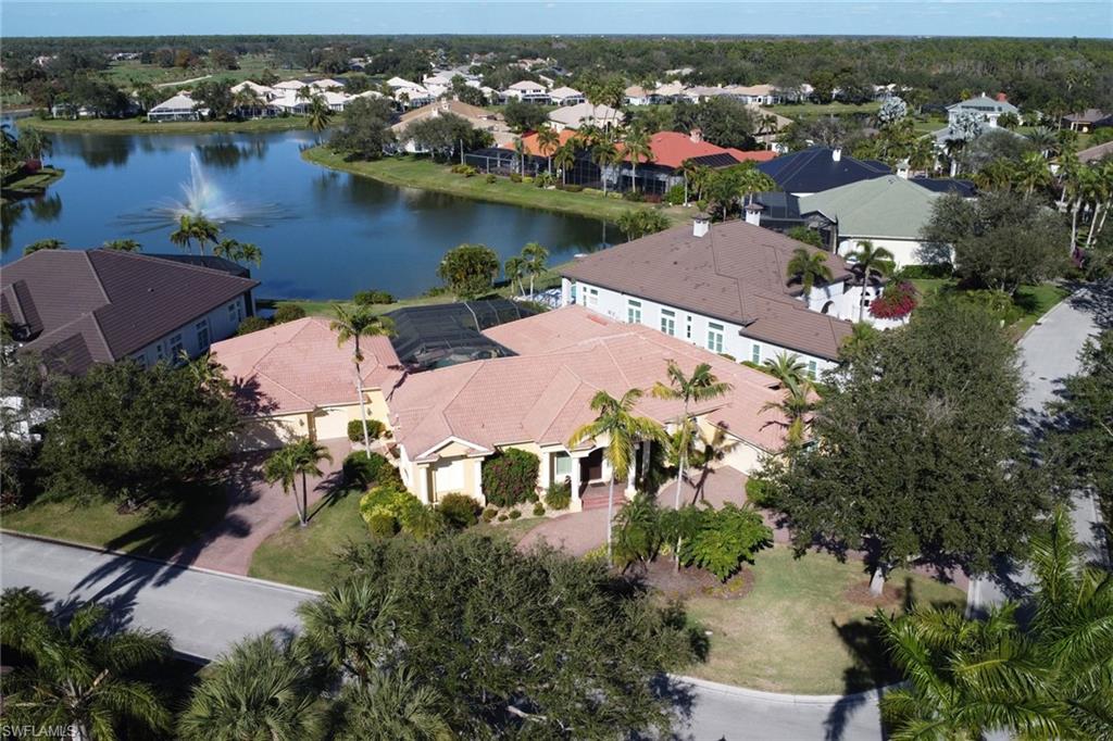 Experience exceptional luxury living in one of Naples premier country club communities. This estate home offers 5,402 total square feet of interior and exterior living. The Wellington Courtyard Model has soaring tray ceiling that are lined with beautiful wood, 4 bedrooms, 4 1/2 bathrooms, bar with wine cooler and 5 car garage. The primary bedroom has 2 walk in closets, 2 primary bathrooms, 2 hot water heaters and 2 AC units. All have been meticulously maintained. Entertain your guests in the expansive lanai with long lake and fountain views. Multiple seating areas, swimming pool and hot tub with fountain views offer a serene lifestyle. A separate "in law" quarters provides privacy for guests and family. The Vineyards has 2 award winning 18 hole championship golf courses, wellness center with fitness and spa, fine dining in the newly renovated clubhouse, 2 swimming pools, tennis and pickleball courts and a beautiful Acqua bar. Convenient access to the Crossroads Shopping Center which includes Publix, Walgrens, restaurants, mail facility, banks and vet services.. Physician's Regional Hospital and doctor offices are also nearby. Don't miss your opportunity to live in paradise.