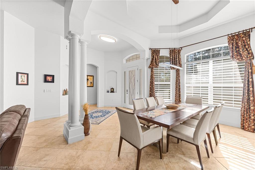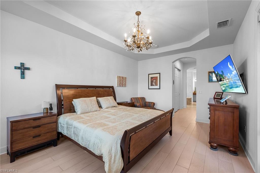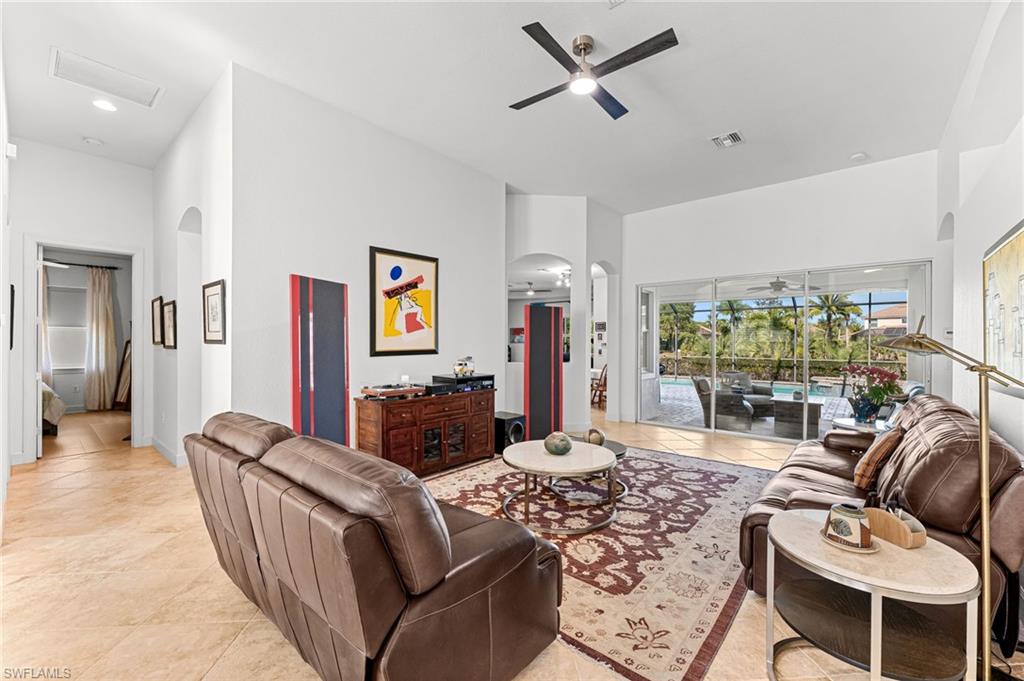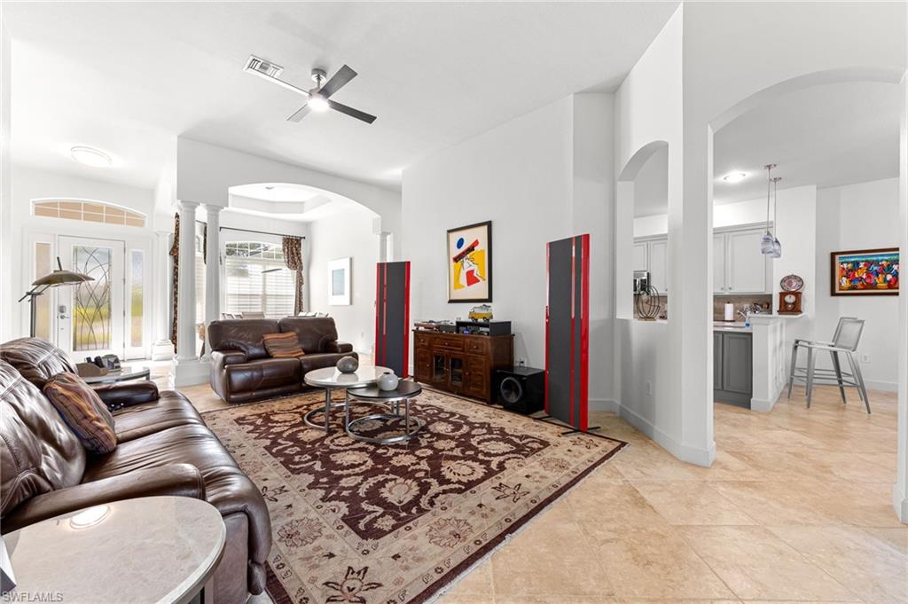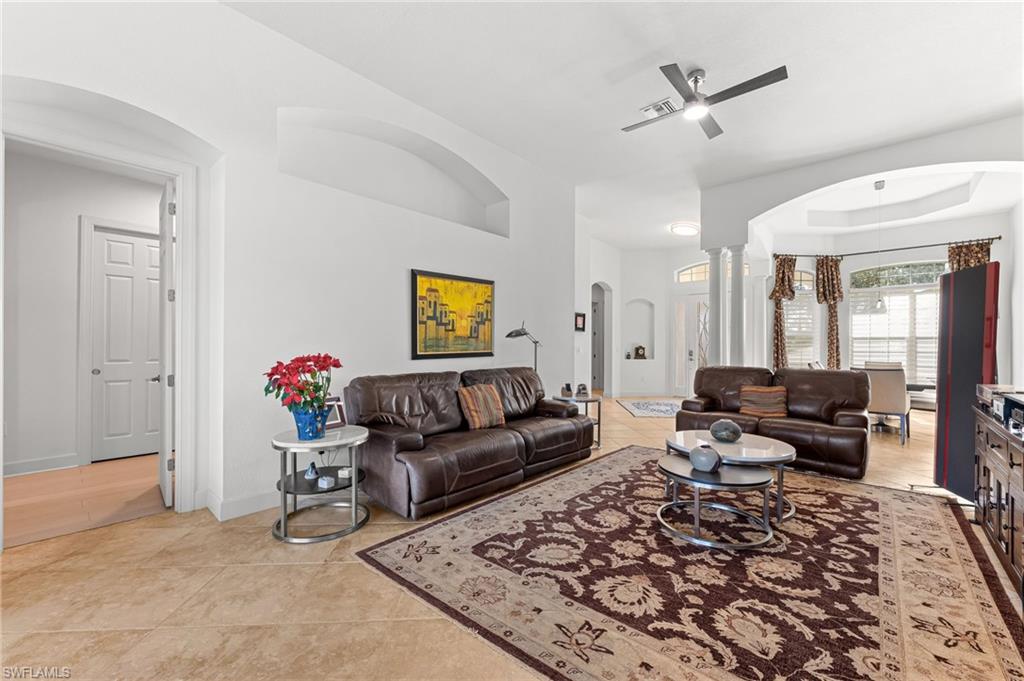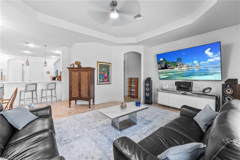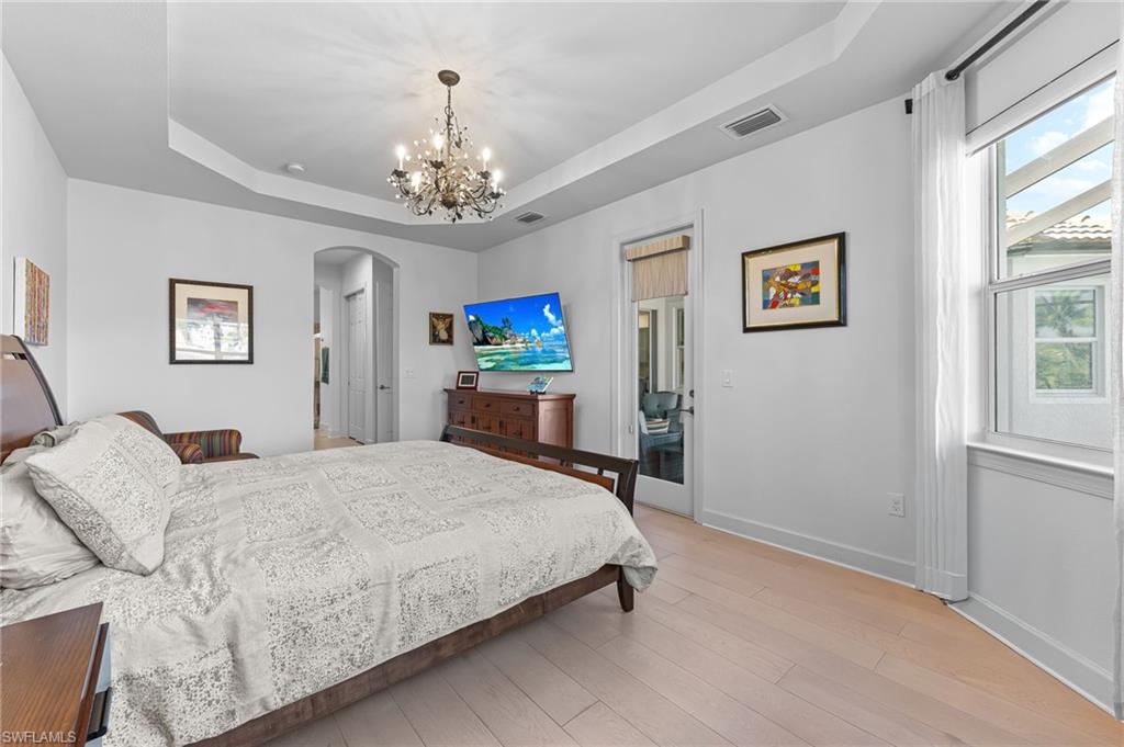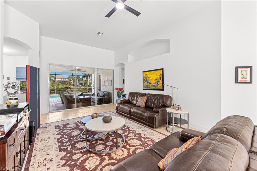 Beautifully maintained Franklin floor plan with tranquil lake views, and exceptional privacy on a spacious corner lot. bright southern exposure residence in the desirable Madison Park community. This home offers a split-bedroom layout, a versatile den and a newer HVAC system for added peace of mind. Seamless connection to expansive outdoor living spaces overlooking the sparkling pool, spa and serene water views. A French door entry with a transom window introduces the inviting interior, where diagonal tile flooring, volume and tray ceilings, crown molding, recessed lighting, arched walkways, and thoughtfully placed ceiling fans enhance the home’s warm and open feel. The kitchen features wood cabinetry, granite countertops, a mosaic tile backsplash above the range, black appliances, including a range, microwave, refrigerator with ice maker, and a new dishwasher, along with an adjacent dining area framed by large windows overlooking the pool/spa. The living room offers pocket sliders that expand the space onto the lanai, ideal for everyday relaxation or entertaining. The owner’s suite is a serene retreat with wood flooring, white plantation shutters, lanai access, three walk-in closets with built-ins, and an elegant en-suite bath featuring dual granite vanities with a makeup counter, a full-width mirror, a walk-in shower with a bench, a privacy window for natural light and a separate jetted soaking tub. Two additional guest spaces offer versatility: one guest bedroom with wood flooring, plantation shutters, and an adjacent bath with a tub-shower combo, and a second guest bedroom with double-door entry and plantation shutters. The den, also with double-door entry, wood flooring and an arched transom window, provides the ideal flex space for an office or hobby room. Outdoor living is a highlight, with a spacious covered lanai featuring dual ceiling fans, along with a separate screened enclosure that includes a Heliocol Solar heated pool with a new heater, a spa and a waterfall feature. Lake views and electric storm shutters add convenience and peace of mind. Madison Park’s prime location offers quick access to shopping, dining, downtown 5th Avenue, Marco Island and world-renowned beaches of Naples. The community features six lakes, abundant natural preserves, and opportunities for fishing and birdwatching. Low HOA fees include lawn and landscape maintenance, making this an ideal choice for those seeking convenience and an active Naples lifestyle in a beautifully maintained, welcoming community. Pay only $25.16 monthly energy cost total with 48 Solar Panel system with a 30kw Backup Battery. Newly installed Hurricane Impact Windows with 2 Electric Shutters and Electric water Heater.