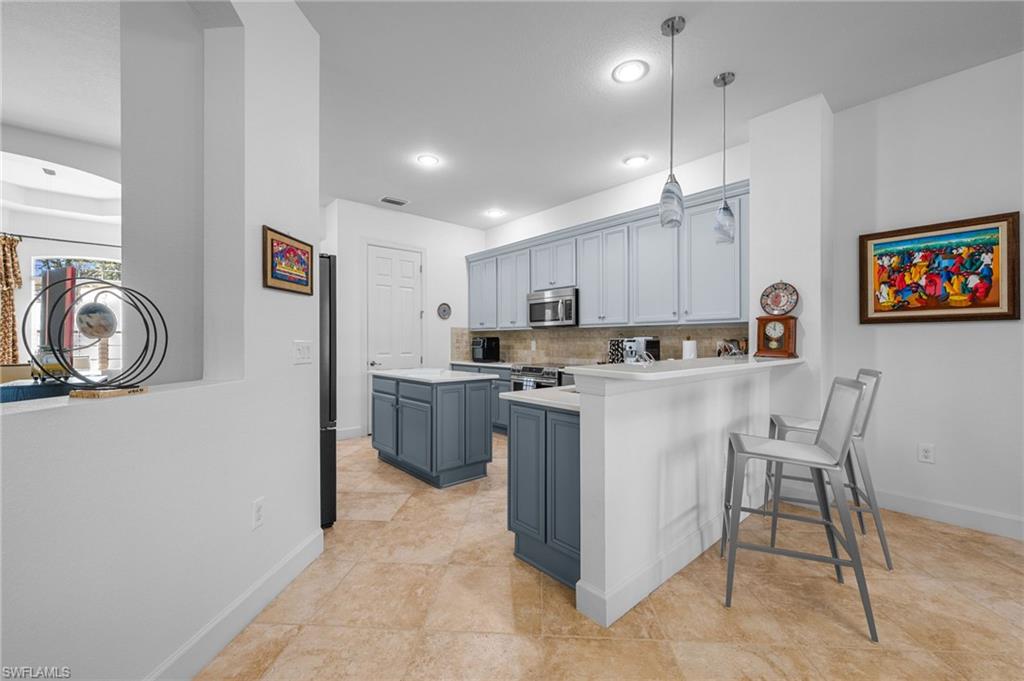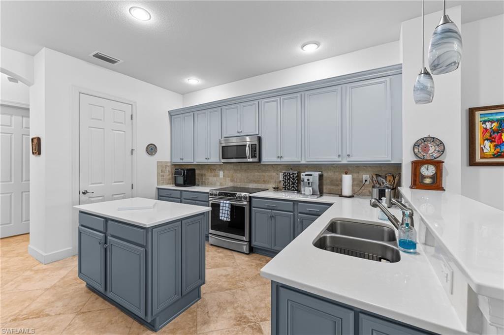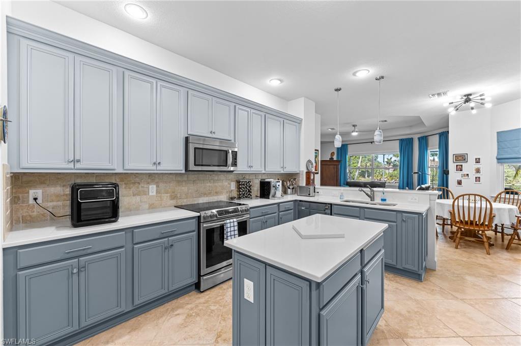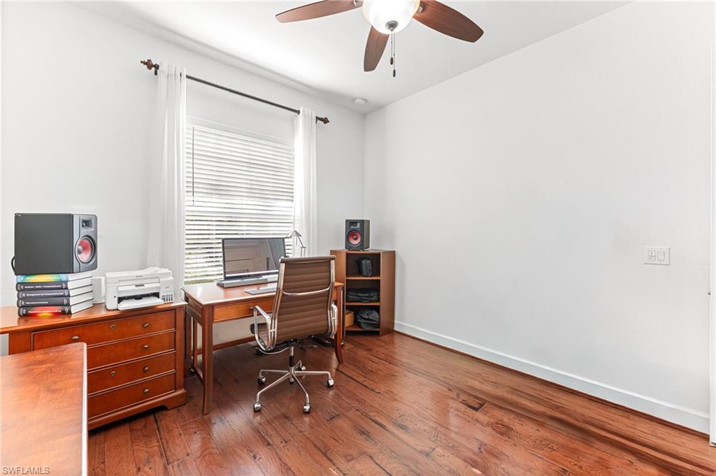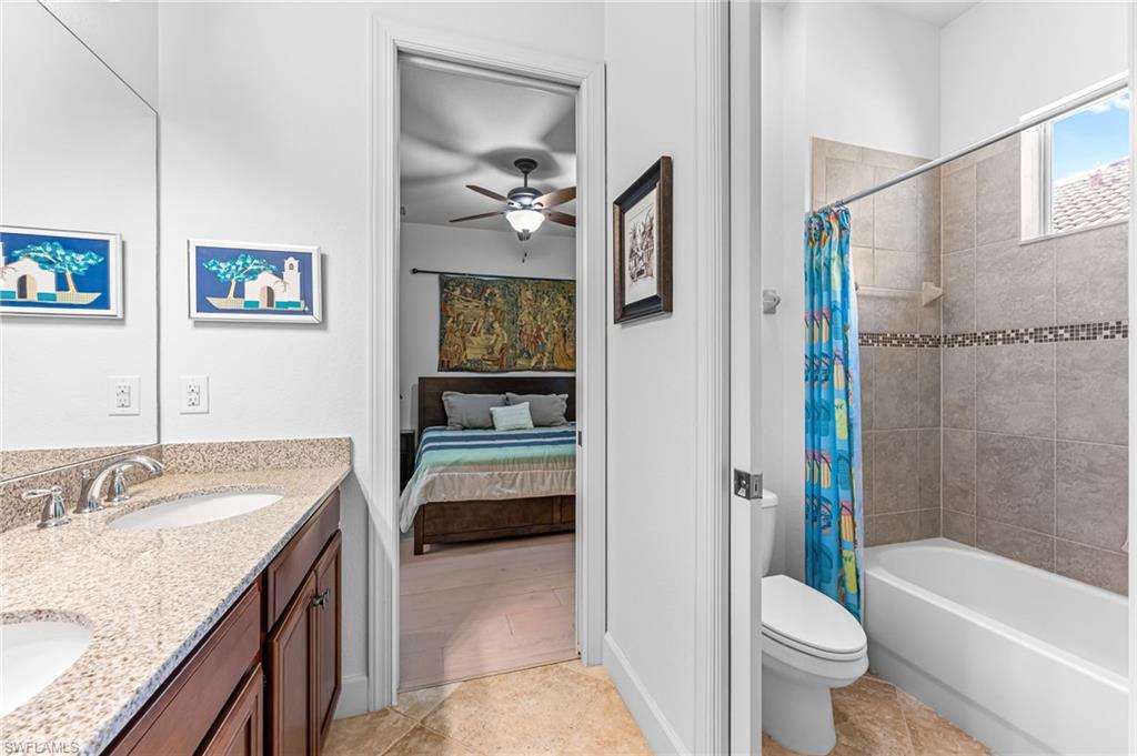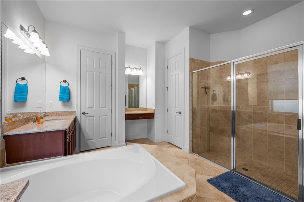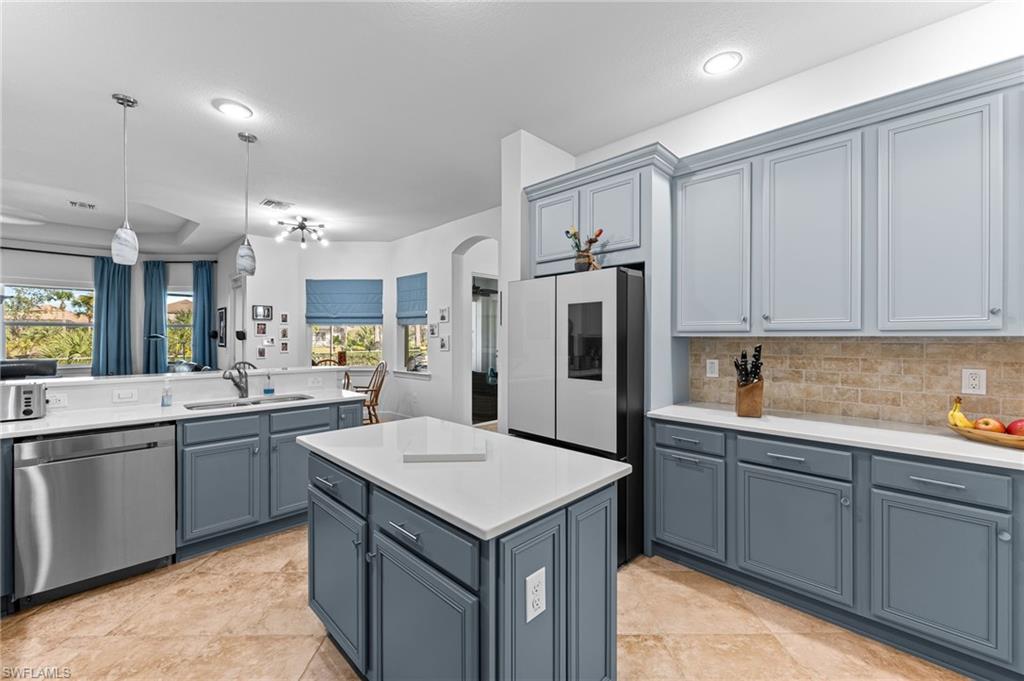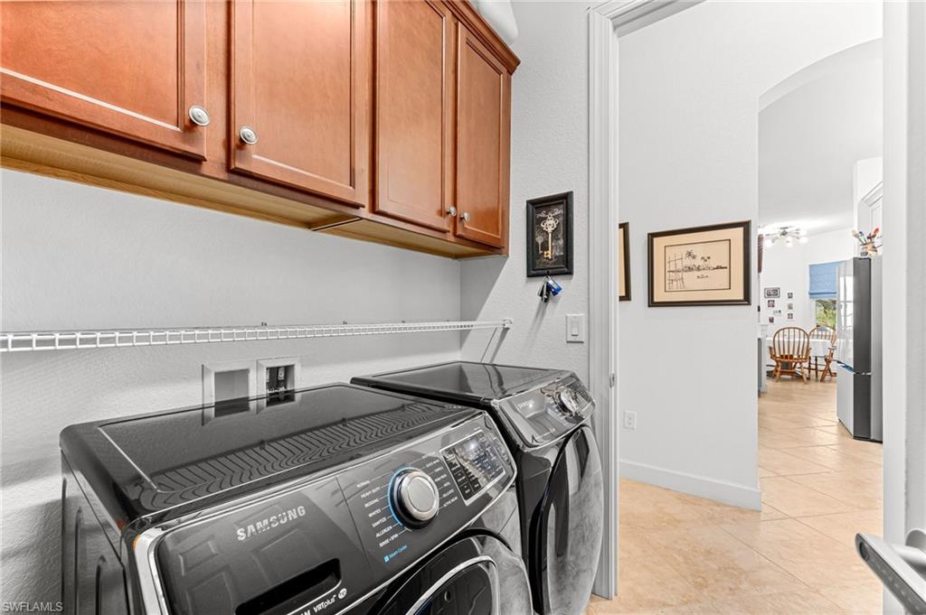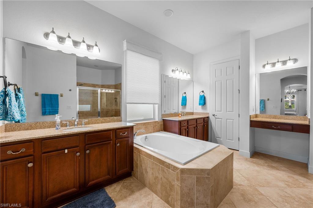 Beautifully maintained Franklin floor plan with tranquil lake views, and exceptional privacy on a spacious corner lot. bright southern exposure residence in the desirable Madison Park community. This home offers a split-bedroom layout, a versatile den and a newer HVAC system for added peace of mind. Seamless connection to expansive outdoor living spaces overlooking the sparkling pool, spa and serene water views. A French door entry with a transom window introduces the inviting interior, where diagonal tile flooring, volume and tray ceilings, crown molding, recessed lighting, arched walkways, and thoughtfully placed ceiling fans enhance the home’s warm and open feel. The kitchen features wood cabinetry, granite countertops, a mosaic tile backsplash above the range, black appliances, including a range, microwave, refrigerator with ice maker, and a new dishwasher, along with an adjacent dining area framed by large windows overlooking the pool/spa. The living room offers pocket sliders that expand the space onto the lanai, ideal for everyday relaxation or entertaining. The owner’s suite is a serene retreat with wood flooring, white plantation shutters, lanai access, three walk-in closets with built-ins, and an elegant en-suite bath featuring dual granite vanities with a makeup counter, a full-width mirror, a walk-in shower with a bench, a privacy window for natural light and a separate jetted soaking tub. Two additional guest spaces offer versatility: one guest bedroom with wood flooring, plantation shutters, and an adjacent bath with a tub-shower combo, and a second guest bedroom with double-door entry and plantation shutters. The den, also with double-door entry, wood flooring and an arched transom window, provides the ideal flex space for an office or hobby room. Outdoor living is a highlight, with a spacious covered lanai featuring dual ceiling fans, along with a separate screened enclosure that includes a Heliocol Solar heated pool with a new heater, a spa and a waterfall feature. Lake views and electric storm shutters add convenience and peace of mind. Madison Park’s prime location offers quick access to shopping, dining, downtown 5th Avenue, Marco Island and world-renowned beaches of Naples. The community features six lakes, abundant natural preserves, and opportunities for fishing and birdwatching. Low HOA fees include lawn and landscape maintenance, making this an ideal choice for those seeking convenience and an active Naples lifestyle in a beautifully maintained, welcoming community. Pay only $25.16 monthly energy cost total with 48 Solar Panel system with a 30kw Backup Battery. Newly installed Hurricane Impact Windows with 2 Electric Shutters and Electric water Heater.