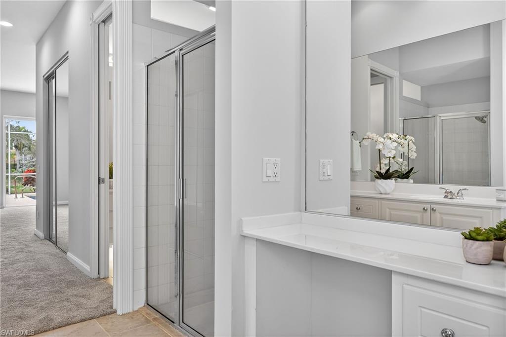 Here’s your opportunity to own this Divosta “built solid” poured concrete “Carlyle” floor plan in sunny Southwest Florida! Whether you’re searching for a perfect winter getaway or a comfortable year-round residence, this open and spacious great room floor plan has 4-bedrooms, 3-baths, along with extra living and dining areas and a 2-car garage offering everything you need to start enjoying the SWFL lifestyle. The home feels welcoming the moment you enter, with soaring volume ceilings, 8 ft doors, neutral color pallet and an abundant of windows that flood the home with natural light. The eat-in kitchen, equipped with Maytag stainless steel appliances and a spacious island-style countertop, serves as the heart of the home—perfect for entertaining family and friends. The owner's suite is distinguished by generous closet space, a sliding door offering convenient access to the pool, and separate his-and-her bathrooms. The finished laundry room features built-in storage cabinets and a handy utility sink. Throughout the home there is porcelain tile, new carpet in the bedrooms, fresh interior paint and closets equipped with modular organizers. This floor plan is versatile, any of the secondary bedrooms could be used as a den, media room or home office. The screened lanai with private pool invites you to relax and unwind, with ample room for outdoor dining and entertaining while enjoying the scenic views of the lake. Newer HVAC 2023 and home includes hurricane shutters. Moray Drive is just a short walk, bike or golf cart ride to the amenity rich town center that offers something for everyone: resort style & lap pools, 24/7 fitness center, lighted Har-Tru tennis courts, pickleball center and bocce all with active leagues. In addition, there is a lighted basketball court, tot lot, full-service restaurant w/indoor and outdoor dining, beauty salon, bagel shop, spa, ice cream shop, and lots of planned activities by the full-time activities director. VillageWalk of Bonita is unique with it’s pretty butterfly gardens, miles of lakes, sidewalks, walkways over connecting bridges and impressive wildlife. Guard gated, golf cart and pet friendly. It’s a great location to our beautiful sandy beaches, SW Florida International Airport, shopping, entertainment destinations and coming soon the highly anticipated Midtown Bonita a new shopping and restaurant experience. Schedule your visit today and start experiencing everything Southwest Florida has to offer!