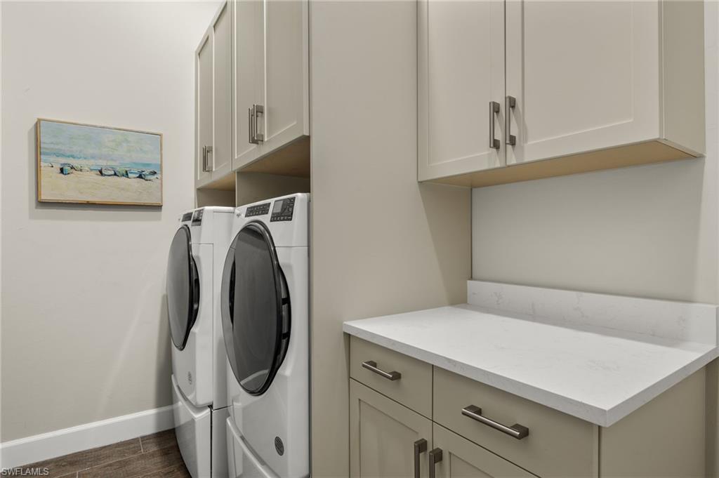 Highly sought after 3 Bedroom plus Den ‘Fresia’ villa in The Isles of Collier Preserve lives like a single family home! Desirable southern rear exposure for all day natural light and captivating sunset views! Stunning preserve with water views beyond! Welcome home to coastal comfort, style, and serenity in this spacious villa sanctuary where luxury meets nature in perfect harmony! Nestled on the edge of a pristine nature preserve, this stunning property offers the perfect blend of privacy, serenity, and luxury. As you step inside this spectacular home, you’ll immediately notice the thoughtful design and beautiful upgrades. Any chef would be content in this kitchen which features dramatic extended height soft close cabinetry, quartz countertops, cabinet underlighting, and gorgeous tile backsplash. The kitchen opens to a bright spacious adjoining dining area and family room which flow seamlessly outdoors to the lanai featuring a pool and generous covered seating area offering you your own private oasis for entertaining guests or simply unwinding. The master suite features a spa-like ensuite bath and custom closets. Two additional bedrooms provide a welcome retreat, perfect for family members or guests. The den serves as a home office or in a pinch can double as a fourth bedroom when additional guests are in town. Additional upgrades include porcelain plank tile flooring throughout, upgraded lighting and crown molding, plantation shutters throughout, designer fans and light fixtures, and electric shade on lanai. The Isles of Collier Preserve is a private gated community located less than 5 miles from Old Naples' prestigious restaurants, shops & beaches. Low HOA fees. Amenities include a state-of-the-art fitness center, lap pool, resort style pool, tennis & pickleball courts, dog park, and onsite Overlook Bar & Grill, over 8 miles of scenic recreational trails and winding waterways where residents enjoy hiking, biking, bird watching, kayaking, paddle boarding and more. Just a few minutes from the Naples Botanical Gardens, Hamilton Harbor Yacht Club, East Naples Park and Bayshore Arts District!