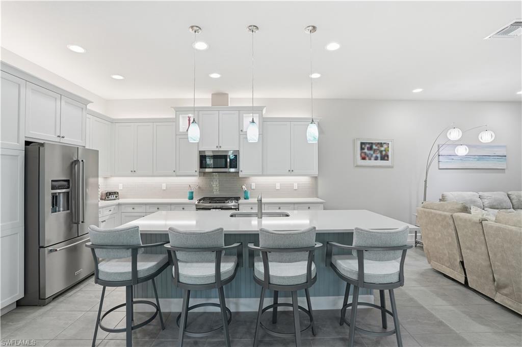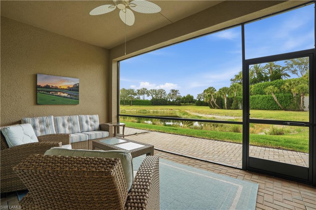 Rarely available and exceptionally private, this elegant 2-bedroom + den residence is perfectly positioned at the end of a quiet street in the prestigious 55+ community of Valencia Bonita. One of the most desirable homesites in the community, it offers unmatched privacy with no neighboring homes on the side or rear, set within a serene, park-like setting with tranquil water views. The thoughtfully designed interior features tasteful, neutral décor and refined finishes throughout, creating a sophisticated yet inviting ambiance. Truly move-in ready and offered fully furnished for immediate enjoyment. The versatile den provides ideal flex space for a home office, media room, or guest retreat. Residents enjoy Valencia Bonita’s award-winning, resort-style amenities including a grand clubhouse, pools, fitness center, tennis, pickleball, and a vibrant social calendar. Ideally located near upscale shopping, fine dining, and the newly developing Midtown Bonita, with a straight drive to Gulf beaches—this is a unique opportunity to own a premier homesite offering privacy, luxury, and lifestyle.