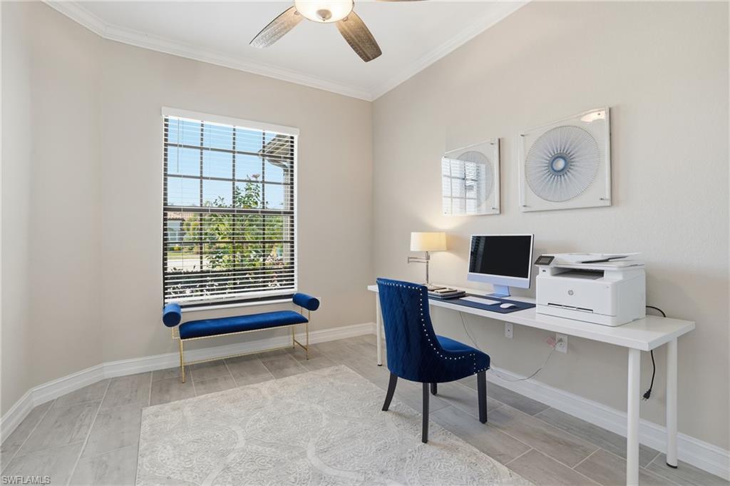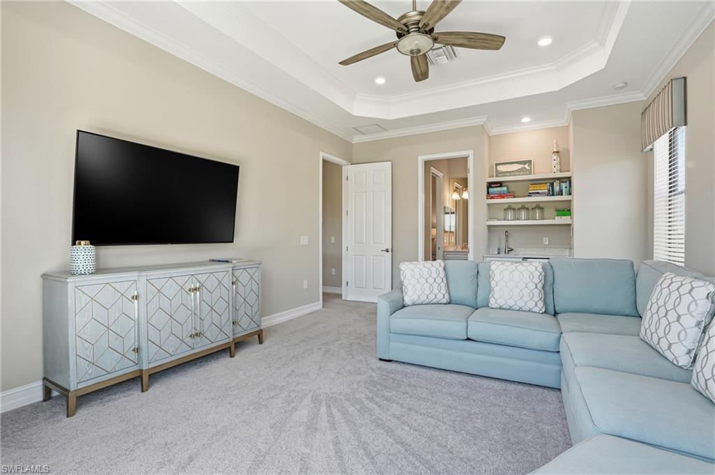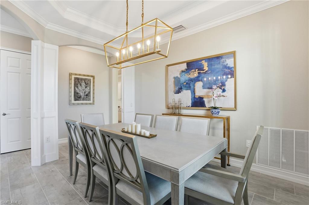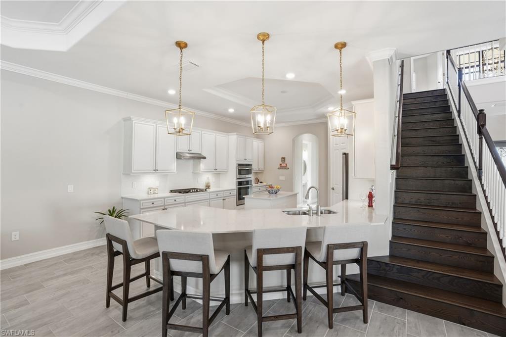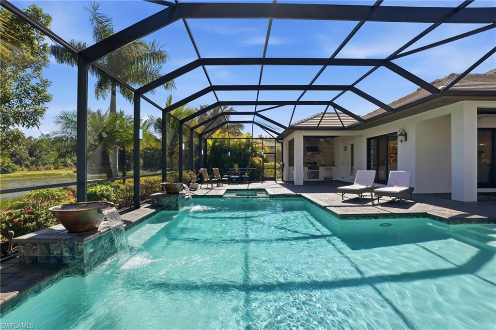 Welcome to 2235 Somerset Place! This breathtaking and impeccably maintained 2- story estate home is nestled within the private, gated community of LAMORADA - one of North Naples' hidden enclaves with just 343 residences. The "Lantana" offers 3,542 square feet of thoughtfully designed living space that blends sophistication with everyday comfort. Situated on a premium homesite with lake and preserve views, this two-story masterpiece is one of the most coveted floor plans in the community and rarely comes to market. Inside, you’ll find 4 generously sized bedrooms, den, bonus room and 5 bathrooms (3 full, 2 half, including a convenient pool bath), perfectly accommodating your every need. The primary suite, located on the first floor, is a private retreat with a spa-inspired bathroom featuring dual vanities and spacious walk-in closets. Upstairs, you'll find 3 bedrooms w attached bathrooms and a large bonus room with its own private balcony, wet bar, and attached bath providing a versatile space for fun or relaxation. From the moment you step through the double door entry and gaze up at the 25' ceilings, the home exudes elegance with full plank tile flooring throughout the lower level, gorgeous engineered hardwood adorning the staircase, custom fixtures, and spectacular views from every angle. The gourmet kitchen with island, quartz countertops, and natural gas cooking is a chef’s dream - complete with a cozy breakfast nook to savor your morning coffee while admiring the pool, lake and preserve views. Entertain in style in the formal living and dining room under dazzling chandeliers, or unwind in the inviting open great room off the kitchen designed for easy living. In SWFL, the weather is fine so step outside to your private resort-like oasis as the Eastern exposure fills your mornings with golden sunlight, setting the stage for serene outdoor living. Take a dip in the large, sparkling custom pool, relax in the spa, or fire up the custom outdoor gas kitchen for al fresco dining. Whether hosting friends or enjoying quiet family time, this outdoor space is sure to deliver the ultimate Florida lifestyle. Practical features elevate this home even further with hurricane impact glass throughout, dual-zone central AC, a 3-car side-load garage with epoxy finish, a gas generator, and storage under the stairs. Every detail has been meticulously curated for comfort, convenience, and peace of mind. As part of the vibrant LaMorada community, you’ll enjoy an array of amenities, including a resort style pool with lap lanes, hot tub, fully equipped gym, tennis and pickleball courts, a yoga studio, card room, dog park, and a clubhouse with a culinary arts kitchen and movie screening room. After your swim, enjoy lunch or drinks at the poolside bar and restaurant. This exceptional home offers the ultimate Naples lifestyle—a harmonious blend of luxury, tranquility, and recreation.
