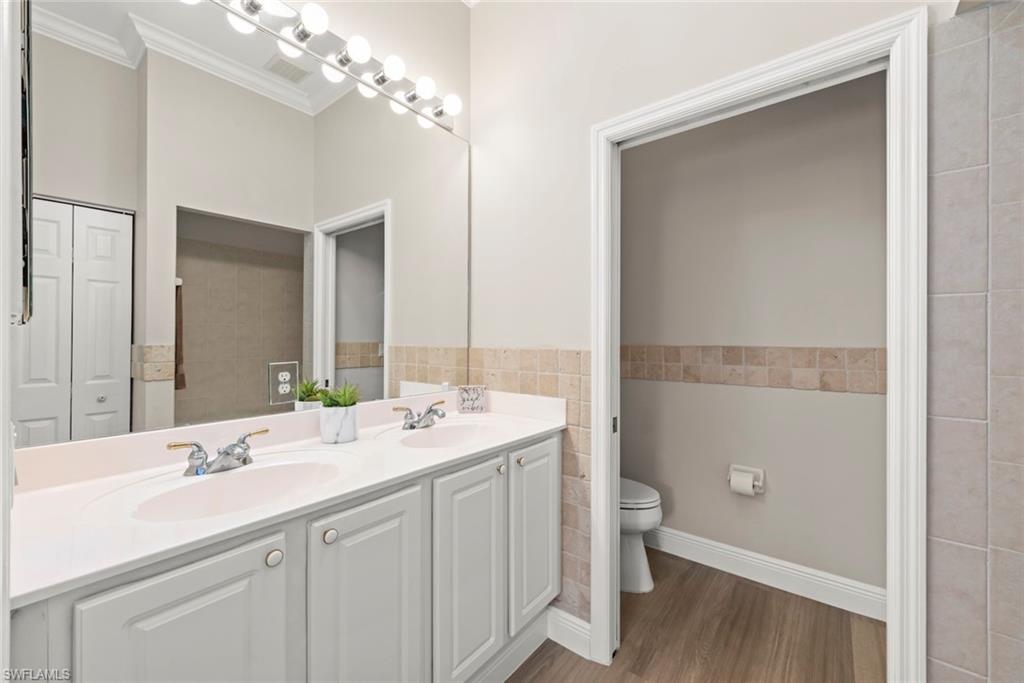 IMMEDIATE GOLF. NO WAITLIST. Rarely available attached villa with a private pool in a gated golf community, offering the ultimate Southwest Florida lifestyle. This light-filled 3-bedroom, 2-bath residence with a two-car garage is ideally positioned overlooking the 17th green of the newly renovated championship golf course, where spectacular sunset views create a stunning backdrop for everyday living. The home is further enhanced by plantation shutters, crown molding, and fresh interior paint, adding a polished, move-in-ready feel throughout the living spaces. The thoughtfully designed interior features new luxury vinyl flooring throughout and an open, inviting layout. The kitchen is well-appointed with stainless steel appliances, granite countertops, and a pantry, offering both style and functionality while opening comfortably to the main living and dining areas—ideal for entertaining or casual everyday living. Indoor and outdoor living blend seamlessly, with a screened lanai and private pool creating a perfect setting to relax after a round of golf or enjoy Naples’ warm evenings. The primary suite offers direct access to the lanai, enhancing the indoor-outdoor lifestyle, while the primary bathroom features dual sinks and a standalone shower, designed for comfort and ease. One of the most sought-after benefits of this community is immediate golf membership with no waitlist, along with the option to own your own golf cart, providing the convenience of heading to the course for a round of golf or cruising up to the clubhouse to enjoy the amenities. Residents enjoy a true resort-style lifestyle, including an 18-hole golf course, resort pool with outdoor tiki bar, pickleball, tennis, bocce, and an active social calendar. A convenient residents-only entrance to Beck Blvd offers easy access to shopping, dining, and I-75, combining privacy with everyday convenience. Opportunities like this—a pool villa with immediate golf access in a gated golf community—are rare. This residence delivers comfort, lifestyle, and location in one exceptional offering.