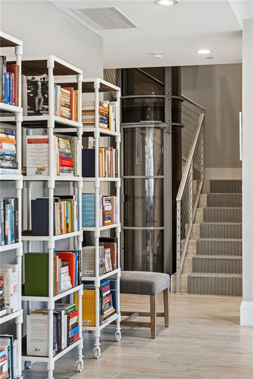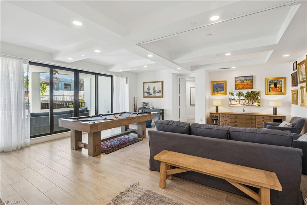 Spacious Naples Square condominium that lives like a single-family home, with its street-front entrance, two parking stalls, including a private enclosed garage within the garage, and over 3,200 square feet of living space in addition to a very large 355 square foot covered lanai. With plenty of room for your extended family to escape the cold, this is the largest plan available in the building. This two-story plan includes a private interior elevator, a large center-island kitchen with seating for four, a dining room that seats at least eight, two generous family rooms, a flex space currently used as a billiards area, three en-suite bedrooms and plenty of privacy. This home includes high-end finishes, custom closets and is in excellent move-in condition. With the highest walkability score in Naples, you are walking and biking distance to everything, including many dozens of restaurants and shops at 5th Avenue, 3rd Street, Bayfront, the Design District, groceries, marinas, the beach and new Gulfshore Playhouse. The building is rich with amenities, including a pool, hot tub, barbecue area, fire pits, social room, fitness center, and loads of bike storage. Fun features of life at NS3 include a large pickleball group, Wednesday night barbecue, book club, poker night and plenty of organized fun for all. Built in 2019, Naples Square 3 features impact-resistant doors and windows and had no meaningful damage during recent storms.