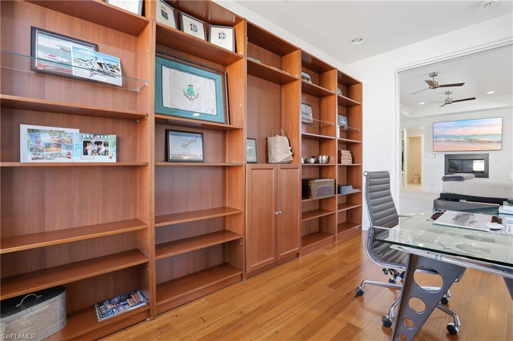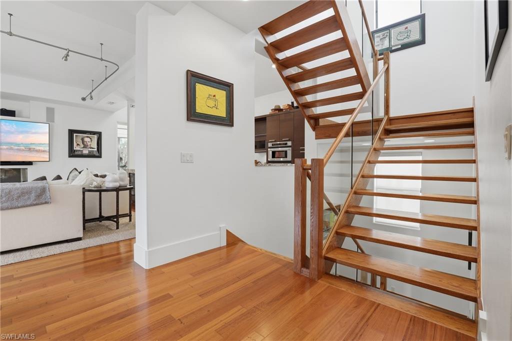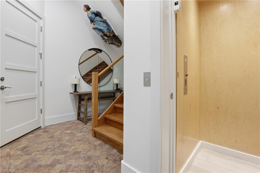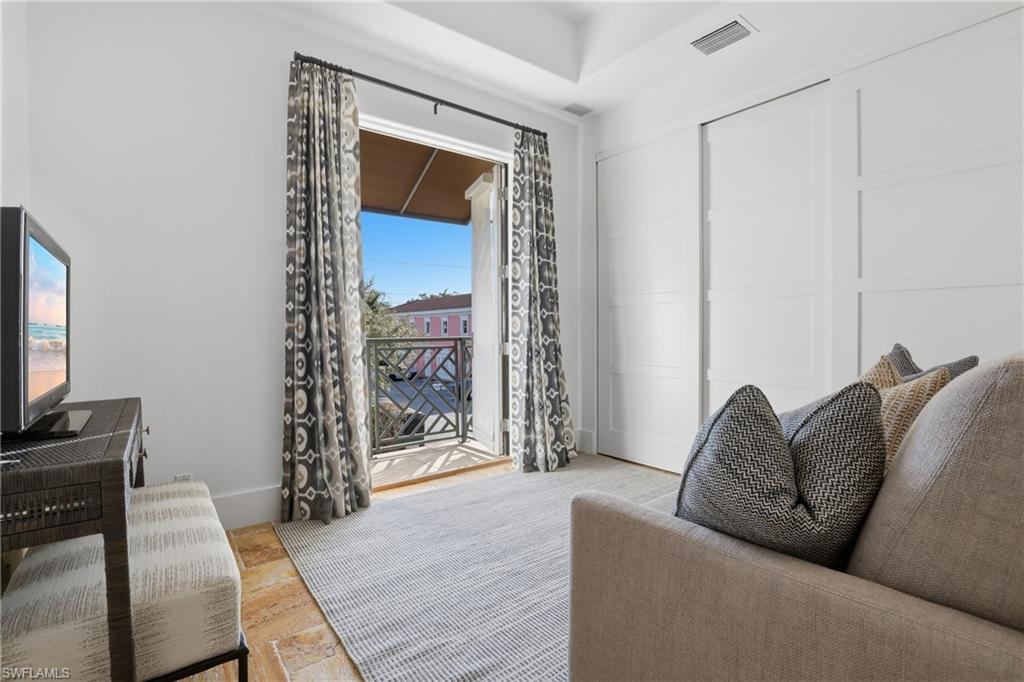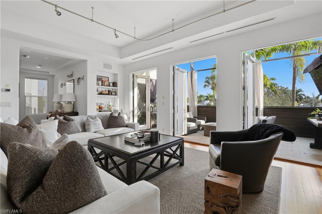 This elegant and expansive detached villa offers a rare lifestyle opportunity in the heart of Naples, just steps from the shops and restaurants of Third Street South. Built by Hemmer Construction, the residence features 3 bedrooms, 3 full baths, and two gas fireplaces. The open-plan living area is ideal for entertaining, with French doors opening to a spacious lanai. The gourmet kitchen is equipped with gas cooking, Sub-Zero and Miele appliances, and high-end finishes throughout. Flooring includes a mix of tile, hardwood, and carpet, complemented by impact-resistant doors and windows. The private primary suite occupies the third level and includes a spa-like bath with walk-in rain shower, soaking tub, Caesarstone vanity tops, and a generous walk-in closet. Juliet balconies enhance both the guest suite and main living areas, while the primary bedroom offers access to a lanai and an upper rooftop deck via a spiral staircase. Additional features include an elevator, front-door camera security system with alarm, and a private 3-car air-conditioned garage currently configured as a 2-car space with storage, pre-wired for a vehicle lift. Excellent rental potential.