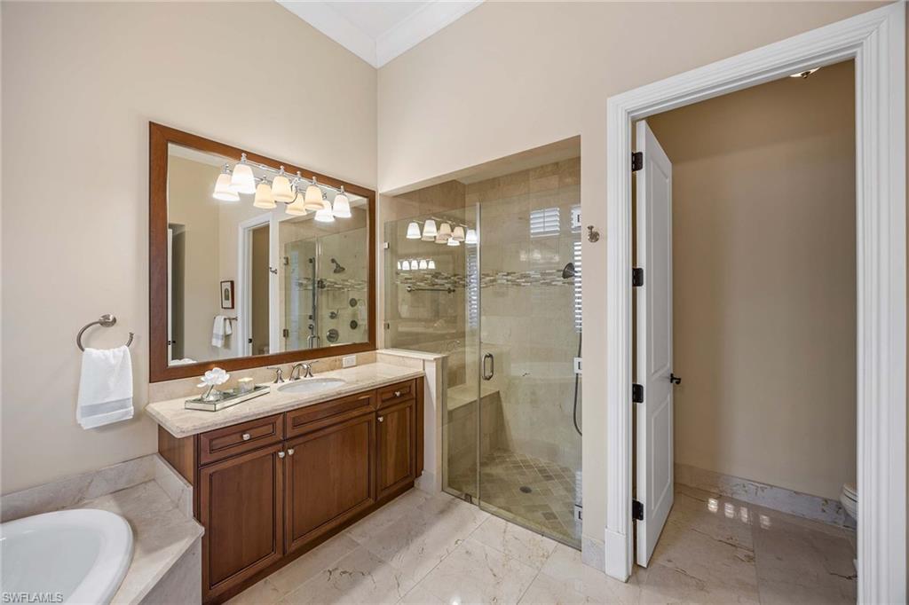 Welcome to the ultimate in Naples resort style living in the Traditions neighborhood of Grey Oaks. This spacious open plan elegant home is timeless in style and comfort. Very neutral color palette throughout with 12 foot ceilings and refined millwork throughout this 3 bedroom/2.5 bathroom 2,700 square foot home. Gorgeous lake views, lush tropical landscaping seamlessly blend the indoor and outdoor living, perfect for relaxing and entertaining. The expansive outdoor living area includes a beautiful pool, spa, outdoor kitchen, multiple seating areas, and a unique extended back lot that could be incorporated to maximize the outdoor living area while taking in the long lake views.Grey Oaks is a coveted community with an amazing location close to to downtown, beaches, and shopping. This exceptional club has world class amenities; three exclusive championship courses, luxurious wellness center and resort style pool, tennis, pickleball, multiple high end dining options. Stop searching and start living, tour this home today.