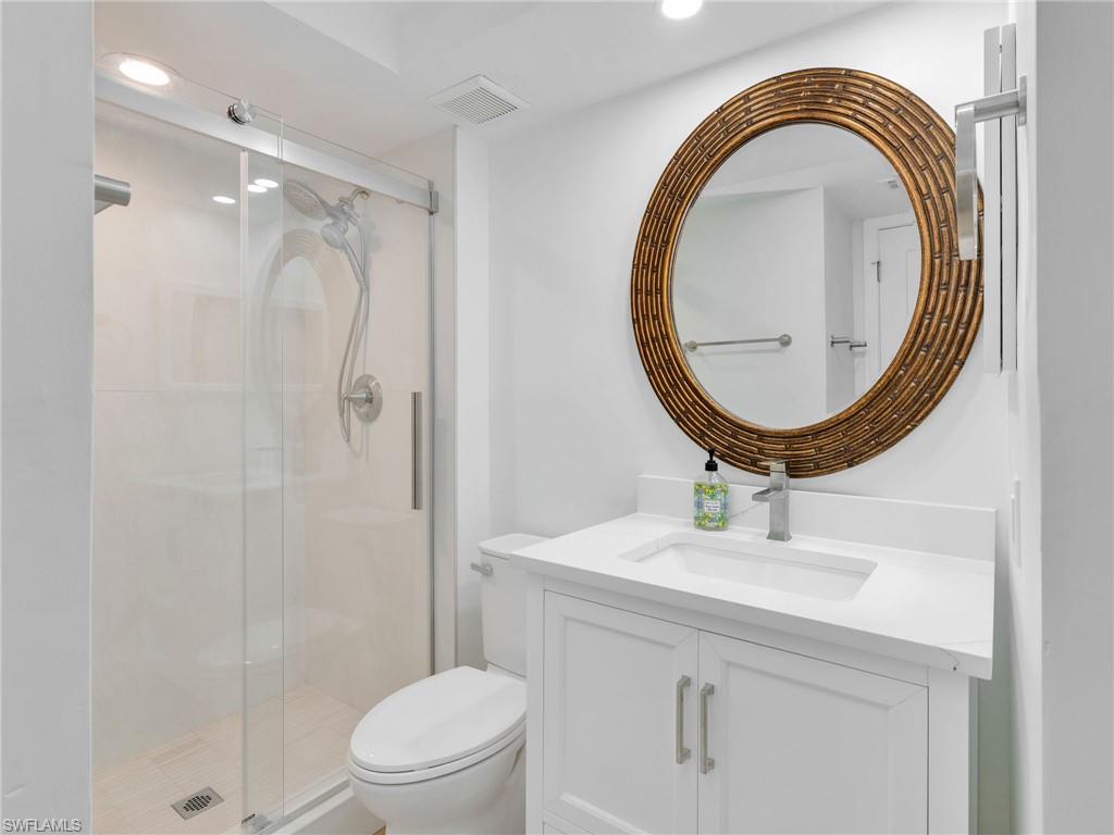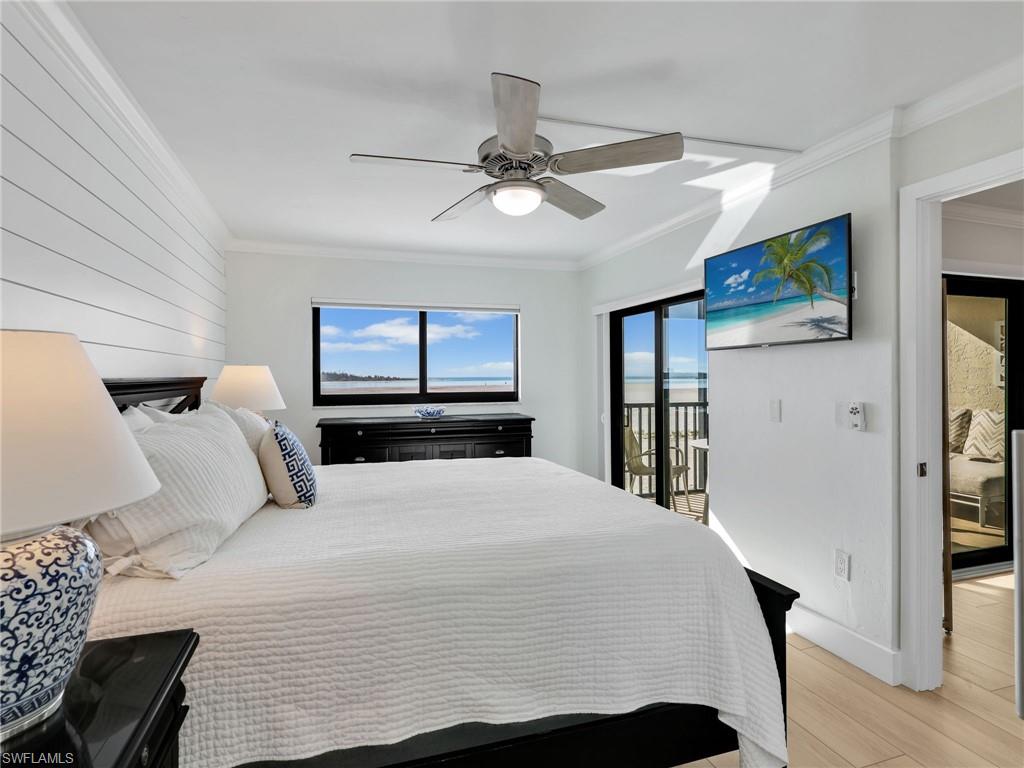 Indulge in the true privilege of Gulf-front living! This rarely available completely reimagined turnkey furnished 2-bedroom, 2-bath condominium at Carlos Pointe offers an unparalleled beachfront experience. From your screened lanai or the resort style pool, savor breathtaking 180-degree views of the Gulf of Mexico, Lovers Key State Park and Big Carlos Pass. This is the perfect setting to watch sunrises and sunsets while strolling the beach, swimming or dining on your patio. Upon entering this home, you are immediately captivated by the spectacular oceanfront view that defines this property. The space was carefully curated to advance luxurious living while maximizing both space and function without compromising beauty. At a generous 1025 sq ft, this home is almost 100 sq ft larger than comparable units in this prestigious building allowing for complete comfort. The expanded kitchen is a masterpiece featuring all-new white cabinetry with expanded storage and finished with an elegant quartz countertops, a suite of new stainless-steel appliances including a slide-in range and a counter-depth refrigerator and an in-home washer / dryer for a carefree living experience. Neutral, high-end LVP flooring flows seamlessly throughout the home while specific walls are accented with timeless shiplap that perfectly embody the beachfront environment. Both bedrooms are light, bright, and styled in neutral tones of whites, blues, and light beige. Both bathrooms have been designed as luxurious spa-like retreats. The all new white cabinetry, stainless hardware and high end quartz highlight the hand picked neutral porcelain tile adorning the walls and floors. The high end furniture is all new boasting a chic modern yet comfortable feel—nothing was overlooked in this lovely property. Hurricane Impact windows and doors complete this wonderful property allowing for total piece of mind. Community enhancements including new storage facilities & exercise room (coming end of 2026), an all-new paver driveway leading into the community, refreshed exterior paint, updated exterior landscaping and new pavers on the pool patio deck. The community room is already complete and ready for your enjoyment. Premier Beachfront Investment at Carlos Pointe Capitalize on a rare investment opportunity at Carlos Pointe. As one of the select Fort Myers Beach associations permitting highly desirable weekly rentals, this would allow a new owner to unlock substantial income potential with many properties grossing between $35,000 and $45,000 per year in additional income to an owner. Owners can potentially offset carrying costs while reserving time for personal enjoyment. Imagine owning this rare jewel of a property, stepping outside your front door to enjoy a classic beachfront lifestyle, including shelling, jet skiing, and sailing or enjoying the many shopping, dining and entertainment venues Ft. Myers beach has to offer. Welcome to unparalleled beachfront living!