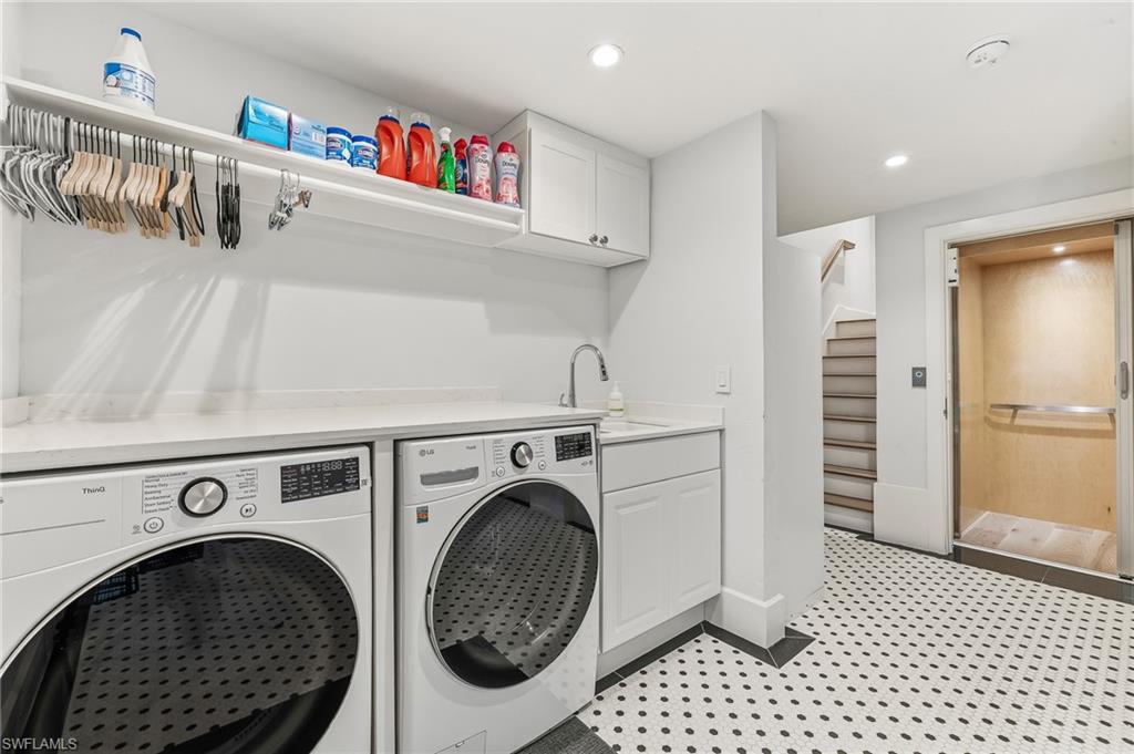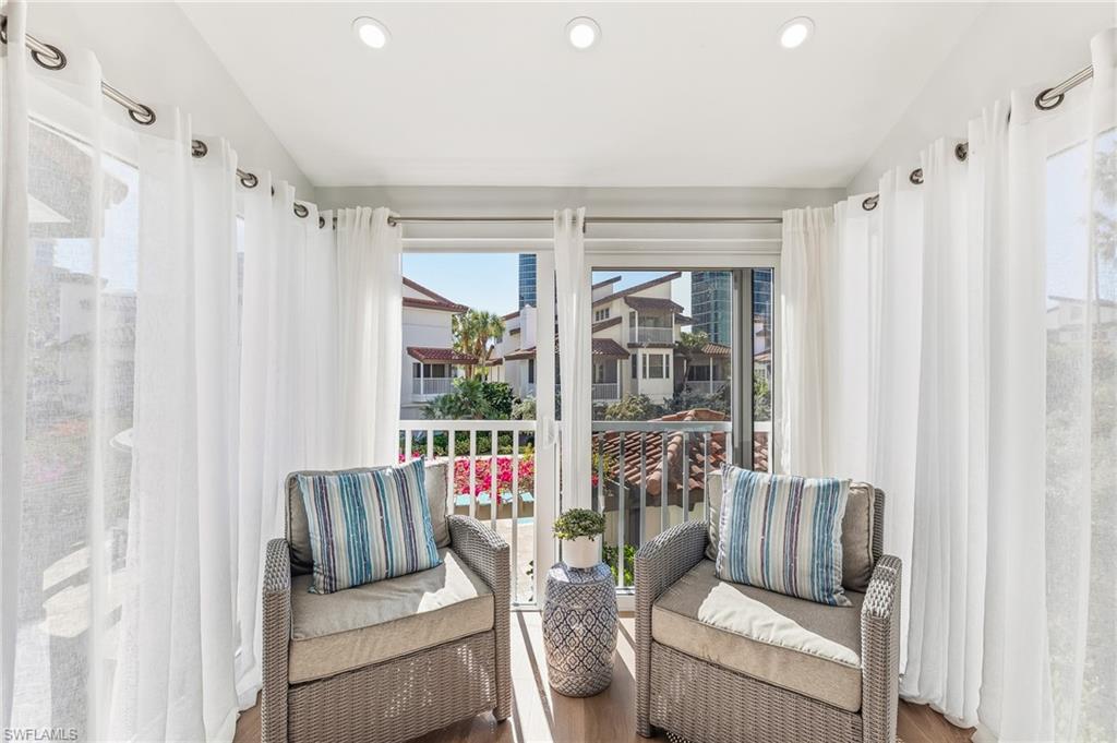 LUXURY VILLA JUST STEPS FROM THE BEACH.....This beautifully renovated, contemporary beachfront home encompasses the privacy and luxuries of a single family home w/ maintenance-free living of a condominium. This unique property, with European hard wood floors throughout, has an open floor plan for entertaining multiple guests while featuring 2 primary suites, one located on the main floor + 2 additional guest rooms for a total of 4 bedrooms and 3.5 baths. Recent significant upgrades include extended living bump outs on main level ($102k); hurricane impact glass windows ($115k); and flood protection barriers ($30k). The contemporary designed chef's kitchen features a large island w/ bar seating; beautiful modern design cabinetry; Thermador Appliances; double oven; wine & beverage cooler; tile backsplash and quartz countertops. There are 5 balconies plus a lower level spacious bonus room adjacent to the pool club and a generously-sized 2 car garage w/ storage closet. All levels are accessible by the recently installed (2024) private elevator. Just steps away to the Gulf Beach, Restaurants and Shopping at Venetian Village.....makes Villa Mare a final destination you'll love coming home to.