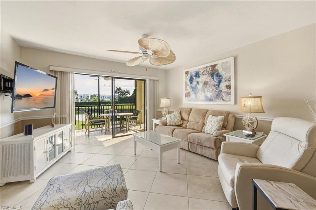 Beautiful second floor unit with great water and golf course views. Kitchen and both bathrooms have been updated with new cabinets, and appliances. Lovely tile throughout condo and lanai area. Includes bundled golf membership along with all the amenities that have recently completed renovation for resort style living. Enjoy the refurbished indoor and outdoor dining as well as pool and fitness complex.