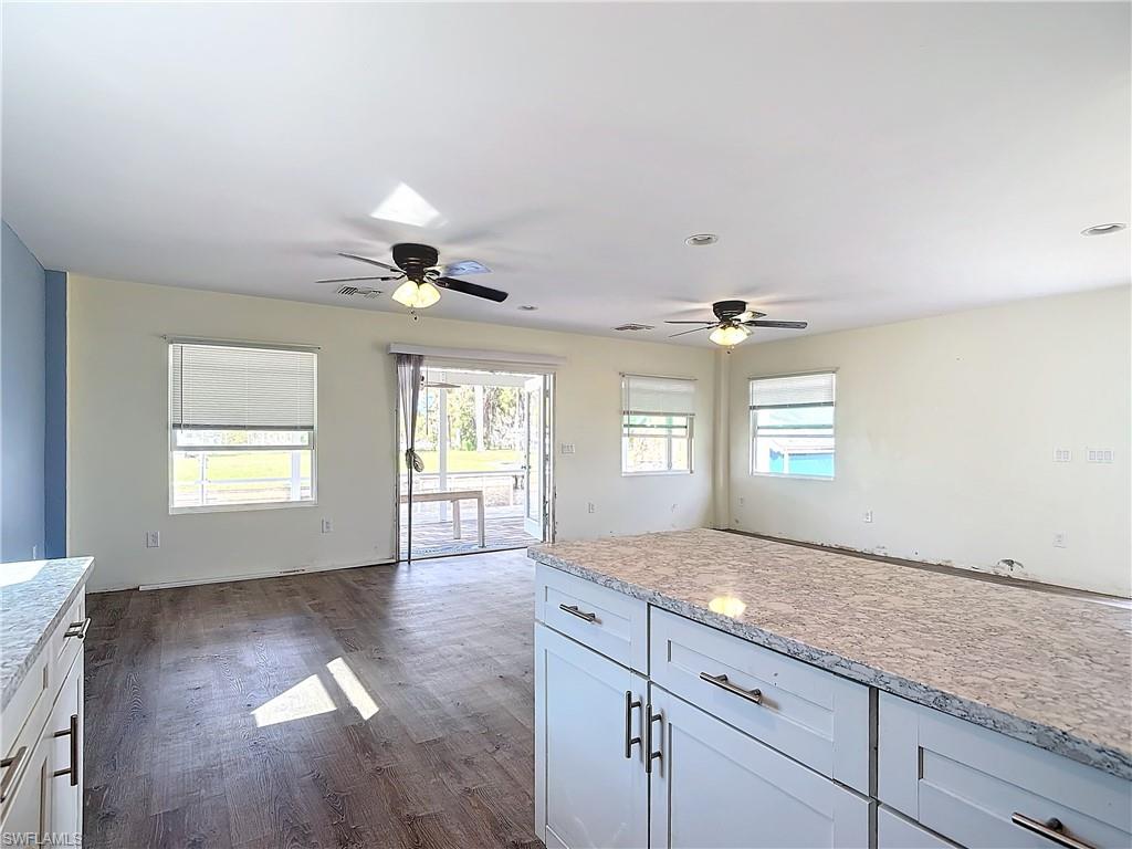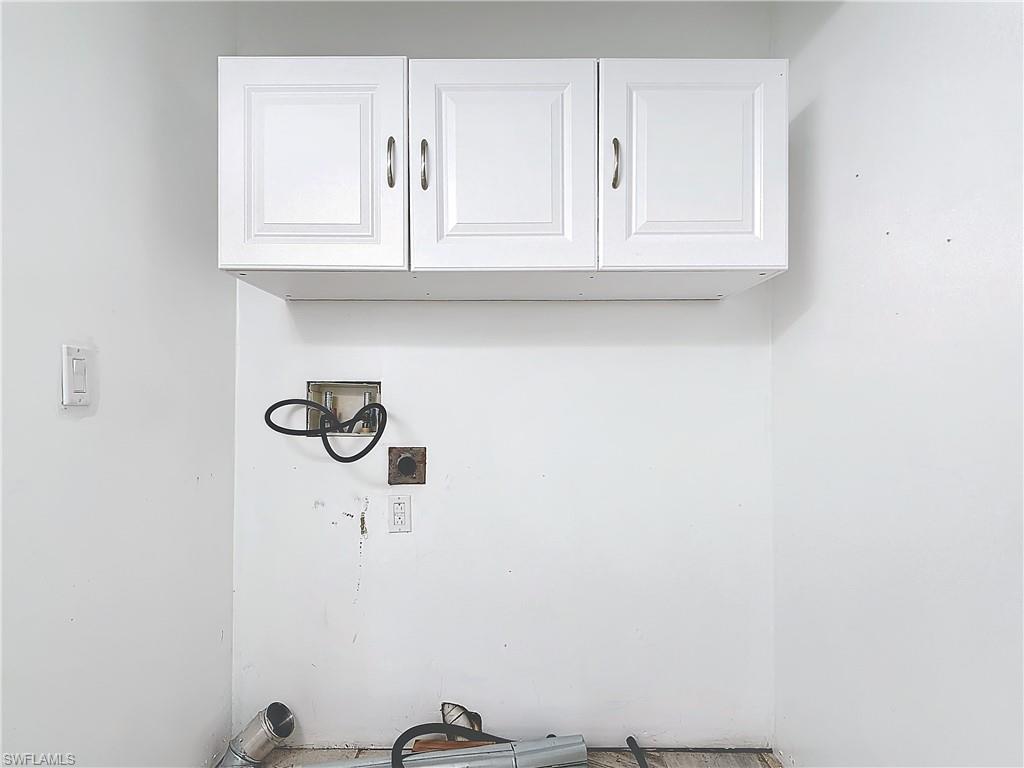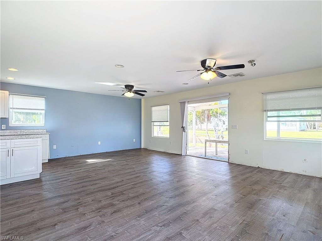 This charming 2 bedroom/1 bathroom waterfront home offers direct access to the Gulf of Mexico via the Imperial River, perfect for boating and water enthusiasts! The bedrooms each included large closets with mirrored sliding doors. The bathroom is equipped with a walk in shower featuring a convenient seat, and a spacious quartz countertop complimented by a tile floor. A dedicated washer and dryer area provides additional convenience, including three built in cabinets for storage. Both the kitchen and living room feature Lifeproof flooring installed over three quarter inch PVC cellular trim, creating a stylish and resilient finish throughout these spaces. The kitchen also includes durable quartz countertops and a large island, providing ample space for meal prep and entertaining. A screened in lanai with pavers and doors on both sides creates an ideal space for outdoor relaxation. The property also includes a new boat lift with pavers in the surrounding area, equipped with water, electric and lighting. The boat lift can be controlled manually and remotely. The shed offers an additional storage option. The home includes wind migrations straps in the attic, along with a lifted A/C system that was installed in 2023, but does not work at this time. Due to "Hurricane Milton", the lower kitchen/bathroom cabinets, lower walls and carpeting in bedrooms, plus all appliances will need to be replaced. This presents an opportunity for the next owner to customize these areas to their taste or start from scratch with a tear down.
