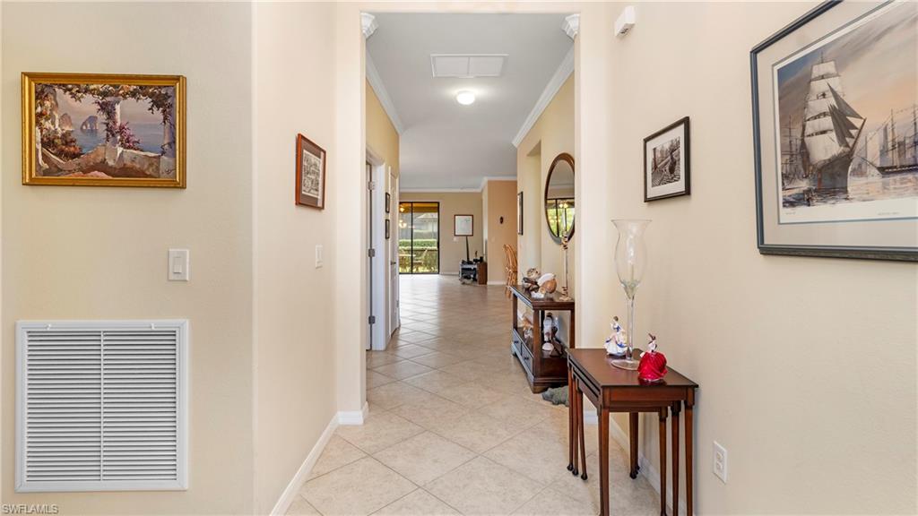 This is a true must-see home that perfectly blends comfort, privacy, and Southwest Florida style in the desirable Copper Cove Preserve Community. This popular Trevi model by Lennar features a highly desirable split-bedroom floor plan offering 3 bedrooms and 3 full bathrooms, including two primary suites, each with its own private ensuite—ideal for multigenerational living, hosting guests, or creating the ultimate seasonal retreat. Step inside and you’ll immediately appreciate the bright, open layout enhanced by beautiful upgrades throughout, including crown molding and tile flooring in all main living areas for a clean, cohesive look and easy Florida living. The inviting main living space flows seamlessly into the kitchen and dining area, creating the perfect setting for everyday comfort and entertaining. The kitchen is thoughtfully finished with granite countertops, a full granite backsplash, and ample cabinetry—perfect for cooking, gathering, and staying connected with family and friends. The bathrooms continue the upscale feel with granite countertops, giving the home a polished, move-in-ready presentation. The primary suite is a standout retreat featuring a spacious ensuite and two walk-in closets, offering exceptional storage and privacy. A second bedroom with its own ensuite bathroom provides a perfect guest suite, while the third bedroom and additional full bath add flexibility for an office, hobby room, or additional visitors. Enjoy smart functionality in the 2-car garage, complete with a pull-down screen and overhead rack storage, ideal for extra organization and convenience. Major system updates provide peace of mind, including: New Roof (2022), New Water Heater (2019), New High-Efficiency Lennox A/C (December 2024), And for ultimate storm readiness and convenience, this home is equipped with: Electric hurricane shutters on the lanai and front door and Accordion shutters on all windows. Step outside to enjoy the Florida lifestyle—whether it’s morning coffee, evening cocktails, or entertaining guests in your own private outdoor space. Conveniently located near Naples’ best attractions including beaches, dining, shopping, and golf, this home offers the perfect balance of tranquility and accessibility. Upgraded, impeccably maintained, and designed for comfort and privacy—This home is the one you’ve been waiting for.