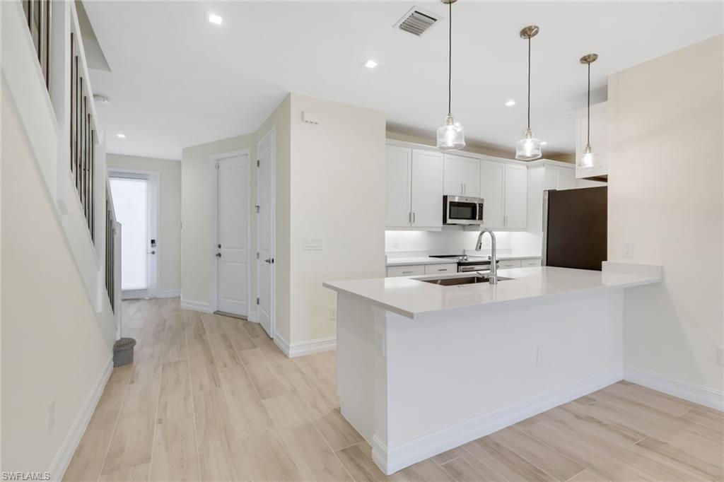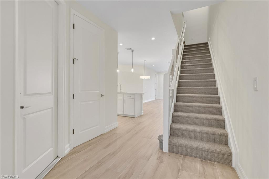 Discover the ultimate in North Naples luxury living at Vanderbilt Reserve — a prestigious, gated enclave of modern townhomes tucked west of 951, where tranquility meets convenience in one of Collier County's most sought-after spots. Picture yourself in The Newport, an absolutely stunning and incredibly versatile 4-bedroom townhome boasting breathtaking water views. This isn't just a home; it's a lifestyle upgrade designed for effortless elegance and everyday wow-factor. Downstairs, your private first-floor master suite offers serene retreat vibes, while upstairs you'll find three spacious secondary bedrooms — two with their own en-suite bathrooms for ultimate privacy and comfort. Need a flexible bonus space? The generous loft transforms into the perfect hangout zone, home office, game room, or creative studio — whatever your family dreams up. The heart of the home shines with an open-concept living, dining, and kitchen masterpiece: a built-in desk for quick tasks, massive pantry storage, clever organizers, and chef-inspired details that make cooking (and entertaining) a joy. Laundry? Pure convenience with side-by-side washer/dryer hookups, a dedicated sink, and an adjacent spacious linen closet — because smart storage matters. Every room feels expansive thanks to oversized windows flooding the space with natural light — no more squeezing in that dream sectional or sacrificing daylight. Thoughtful storage abounds throughout, ensuring everyone has room for their stuff without clutter. All this luxury is wrapped in Vanderbilt Reserve's resort-style perks: a stunning clubhouse, sparkling pool and spa, fitness center, lush tropical landscaping around glimmering lakes, and low-maintenance living so you can focus on the good life. Best of all? You're just 15 minutes from pristine Gulf beaches, upscale shopping, dining hotspots, and easy I-75 access — paradise without the long commute.