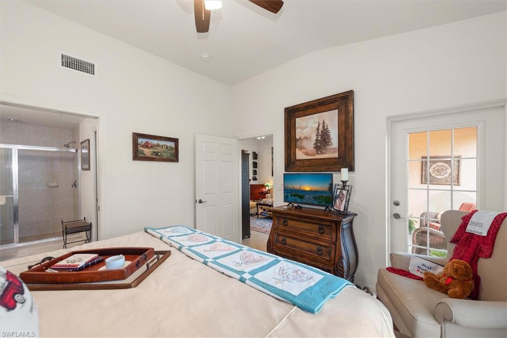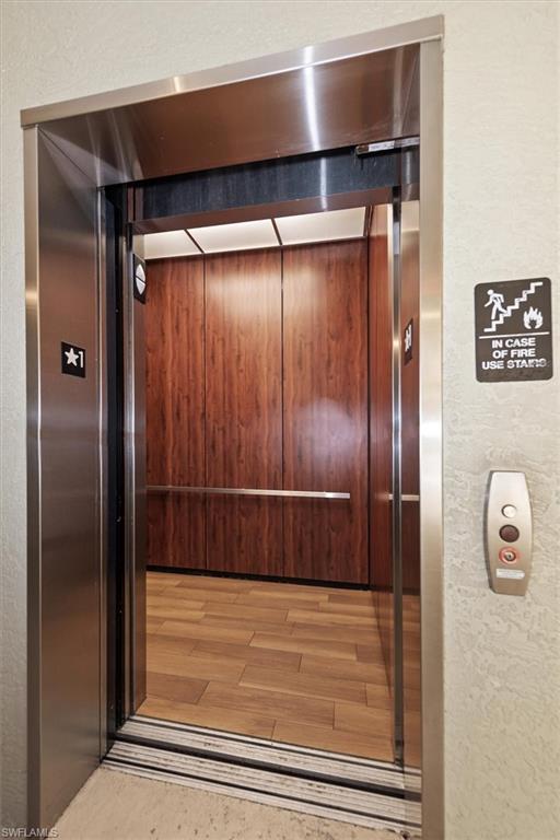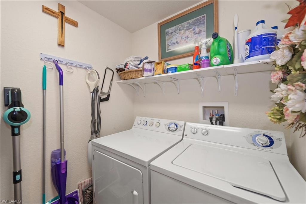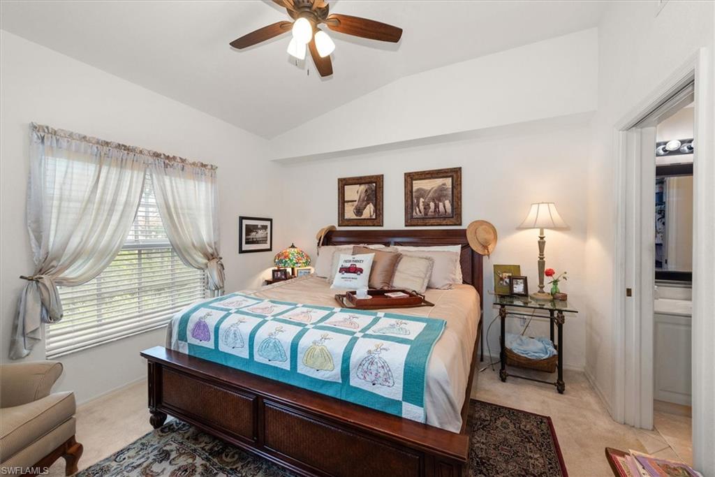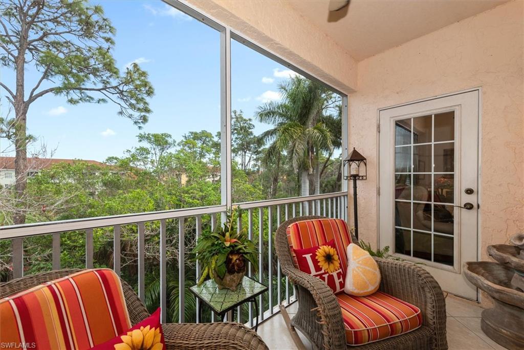 This beautifully maintained top-floor, 3 bedroom, 2 bath residence offers privacy, comfort, and a relaxed Naples lifestyle in a well-appointed gated community with resort style amenities. Located on the 4th floor with elevator access, the home features lofted ceilings and no neighbors above, creating a quiet, airy living environment. Preserved, tree-lined views surround the residence, filling the space with natural light and peaceful outdoor ambiance. The primary bedroom enjoys a scenic outlook where seasonal fireworks displays can be enjoyed from the window or lanai. The well designed functional layout flows comfortably, with diagonal tile flooring accenting the main living areas. The bright kitchen is finished with white appliances and Corian style countertops, offering both practicality and timeless appeal. The residence has been lovingly cared for and reflects pride of ownership throughout. The A/C system, originally replaced in 2014, has been refreshed this year with new coils and refrigerant. A detached one-car corner garage provides convenient parking and additional storage—an increasingly rare and valuable feature in condominium living. Residents enjoy access to an elegant community clubhouse, pool, spa, fitness room, and BBQ. offering a more refined atmosphere than typical condominium communities. The setting is quiet and serene, yet ideally located just minutes from Naples beaches, parks, downtown attractions. Naples Botanical Gardens is a hop, skip, and a jump away. The Bayshore District is nearby, with the US Open Pickleball Championship courts are approximately half a mile away, Sudgen Regional Park at Lake Avalon, along with 5th Avenue South and 3rd Street South for dining, shopping, arts, and entertainment. Top-floor residences with lofted ceilings, elevator access, detached garage parking, and this level of community amenity rarely come available, making this a special opportunity for a primary residence, seasonal retreat, or quality investment in a highly desirable Naples location.