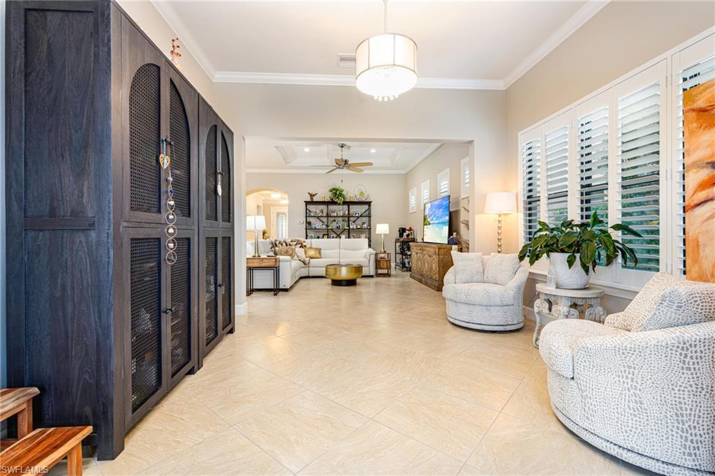 Perfectly positioned to capture unforgettable western exposure and nightly crimson sunsets, this highly upgraded and meticulously maintained pool home offers a front-row seat to Florida’s most beautiful evenings. Thoughtfully designed with two spacious bedrooms, a versatile den, oversized laundry room, tandem three-car garage with overhead storage racks, oversized driveway and a welcoming sunroom, the layout flows effortlessly to the outdoor living area where peaceful preserve views and glowing sunset skies create a truly special setting. Inside, refined finishes include coffered ceilings, crown molding, granite countertops with coordinating backsplash, plantation shutters (excluding the office), and quality carpeting, all complemented by hurricane-impact windows and doors for added peace of mind. Recent owner improvements reflect exceptional care and attention to detail, including exterior paint completed in 2025, a freshly cleaned roof with fasteners checked and secured, whole-home surge protection, a kitchen water filtration system, updated pool equipment with heater, Pentair saltwater system and IntelliFlo controls, new washer and dryer (2023), garbage disposal, automatic storm shades, and a screened entry that enhances both curb appeal and everyday functionality. Every detail has been thoughtfully addressed, allowing you to move in and simply enjoy the view. Life in Corkscrew Shores centers around a spectacular 240-acre spring-fed lake ideal for kayaking, paddleboarding, fishing, and electric boating, complemented by an amenity-rich community offering a stunning Grand Clubhouse, zero-edge resort-style pool with spa, indoor/outdoor restaurant and full-service bar at the Captain’s Club, fire pits for evening gatherings, fitness center with movement studio, on-site massage services, tennis, pickleball, bocce, walking and biking trails, playground, sports lawn, picnic areas, fishing pier, and kayak and canoe launch. Endless social activities foster a vibrant sense of community. With low HOA fees, no CDD, and a prime location close to I-75, RSW International Airport, FGCU, Miromar Outlets, Coconut Point, Gulf Coast Town Center, and the white-sand beaches of Naples, Fort Myers, Sanibel, and Fort Myers Beach, this home delivers an exceptional Southwest Florida lifestyle defined by convenience, recreation, and scenic beauty.